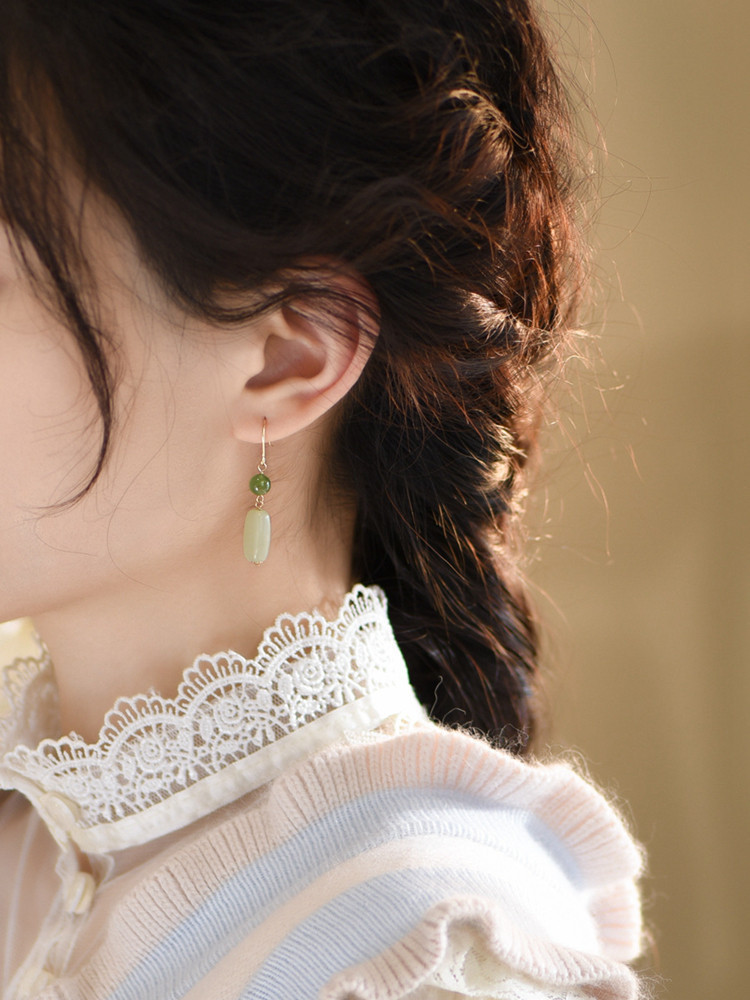【预售3天】和田玉碧玉原创小众设计国潮感轻奢耳环耳钩AL7063