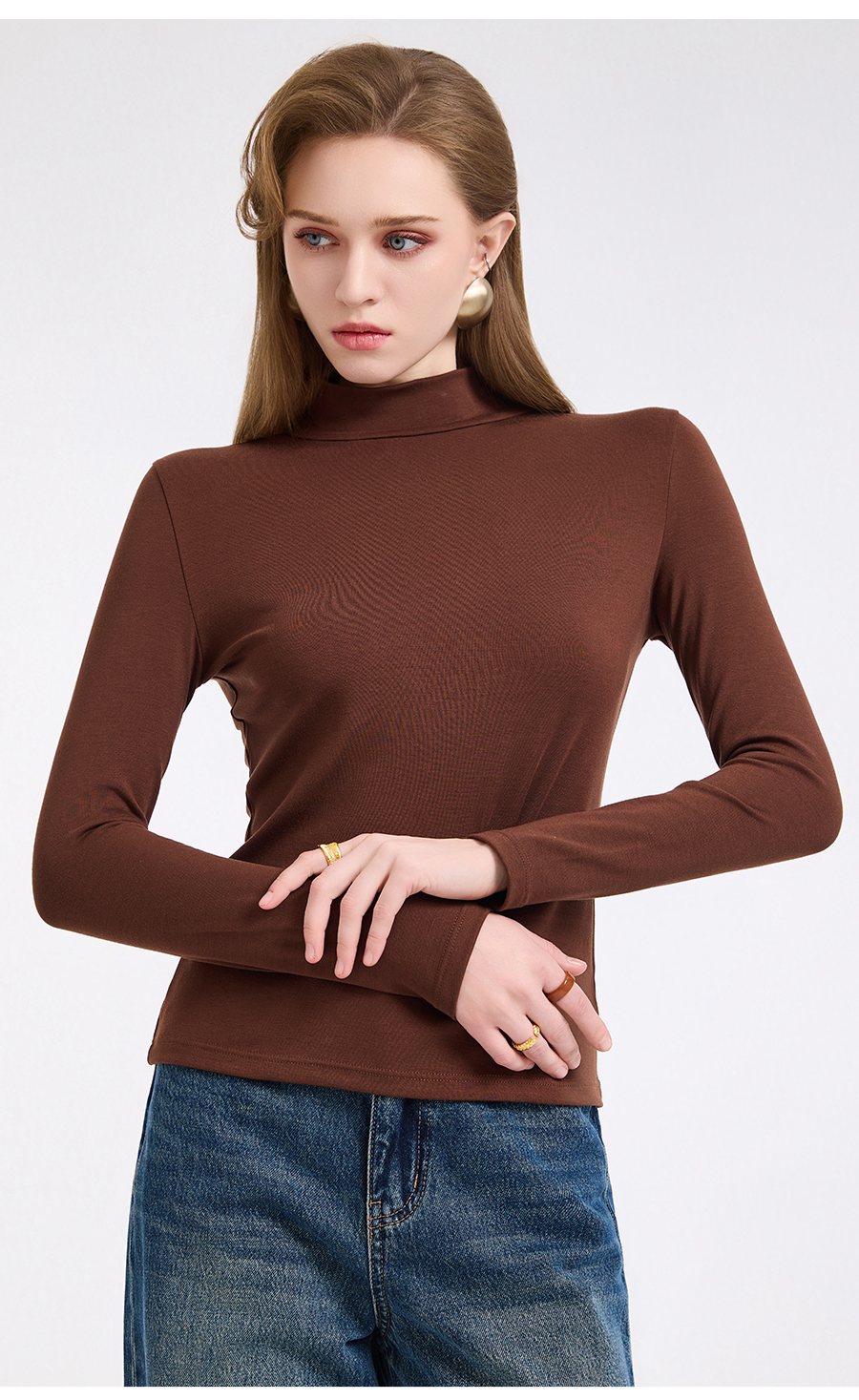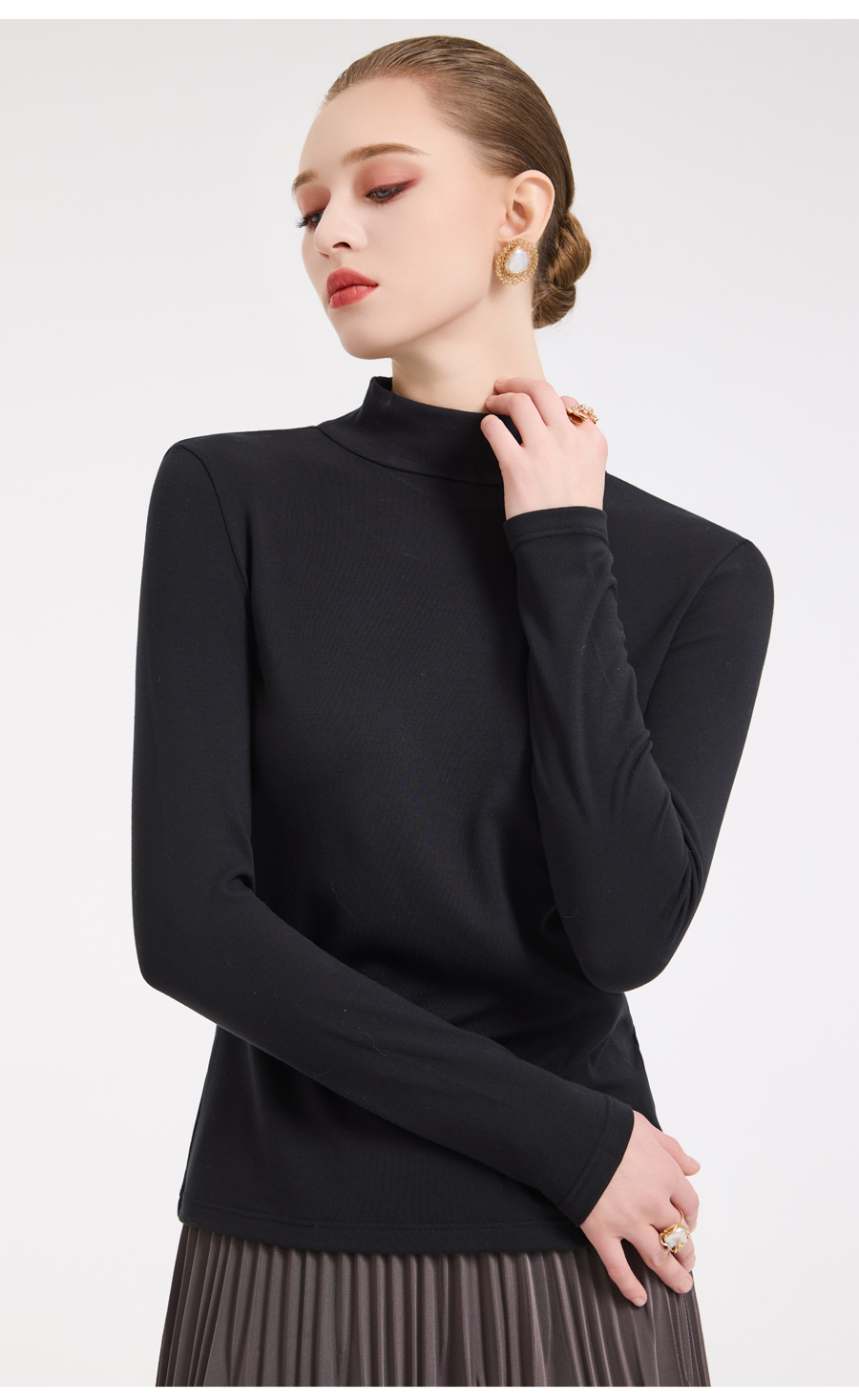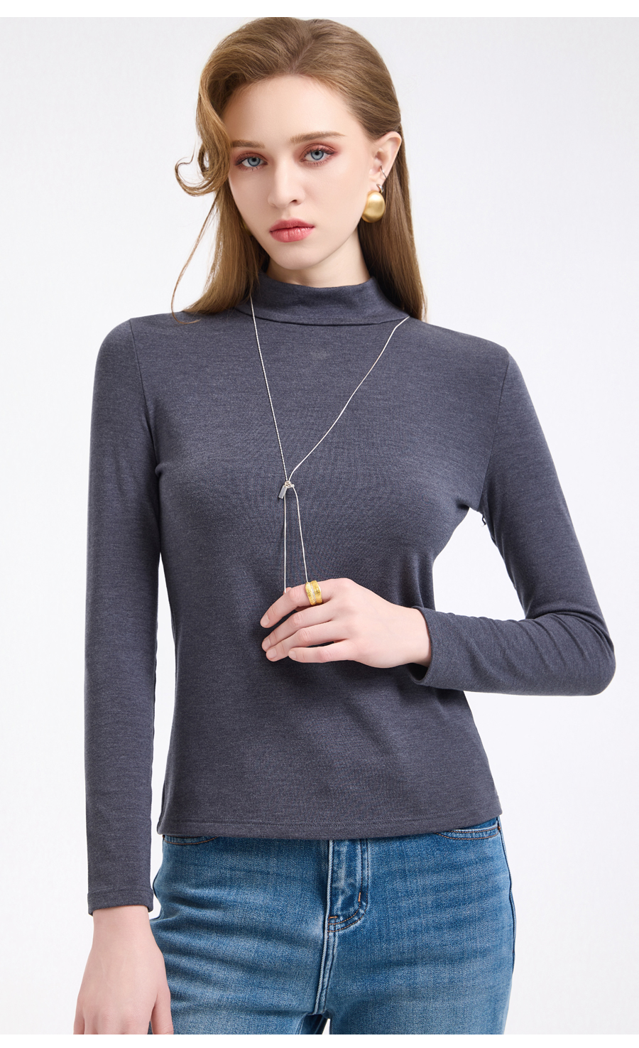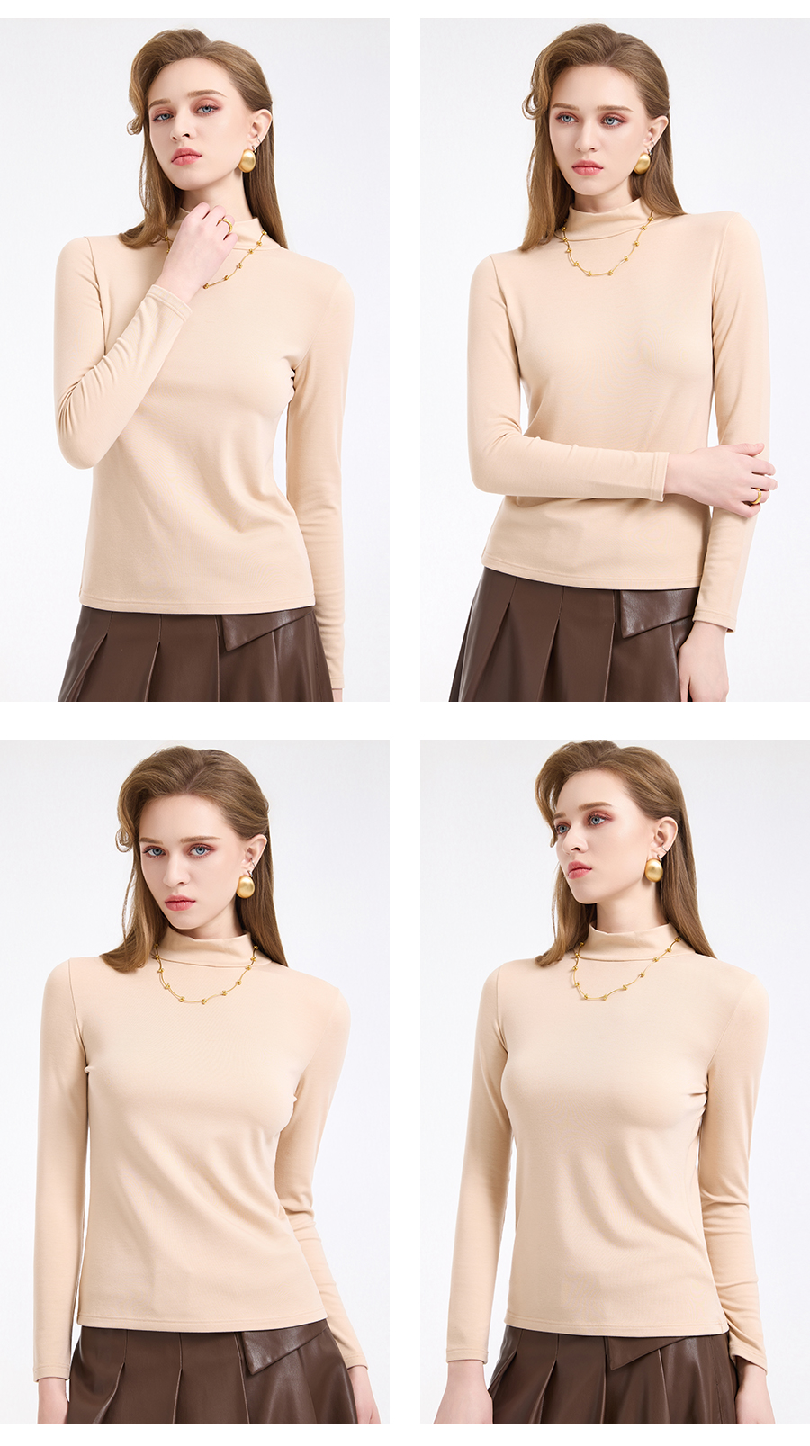 【四色可选】乔万尼轻奢百搭半高领保暖长袖羊毛修身打底衫EZ4C192