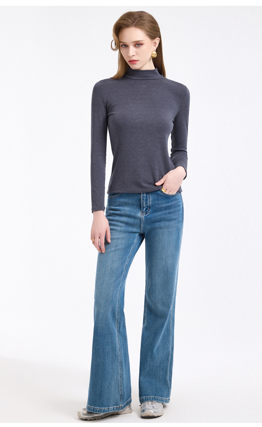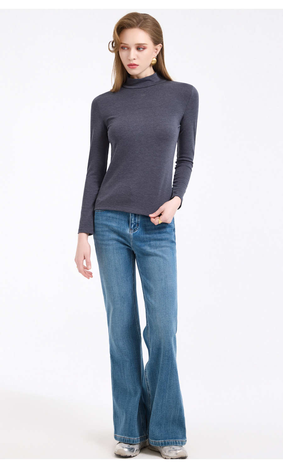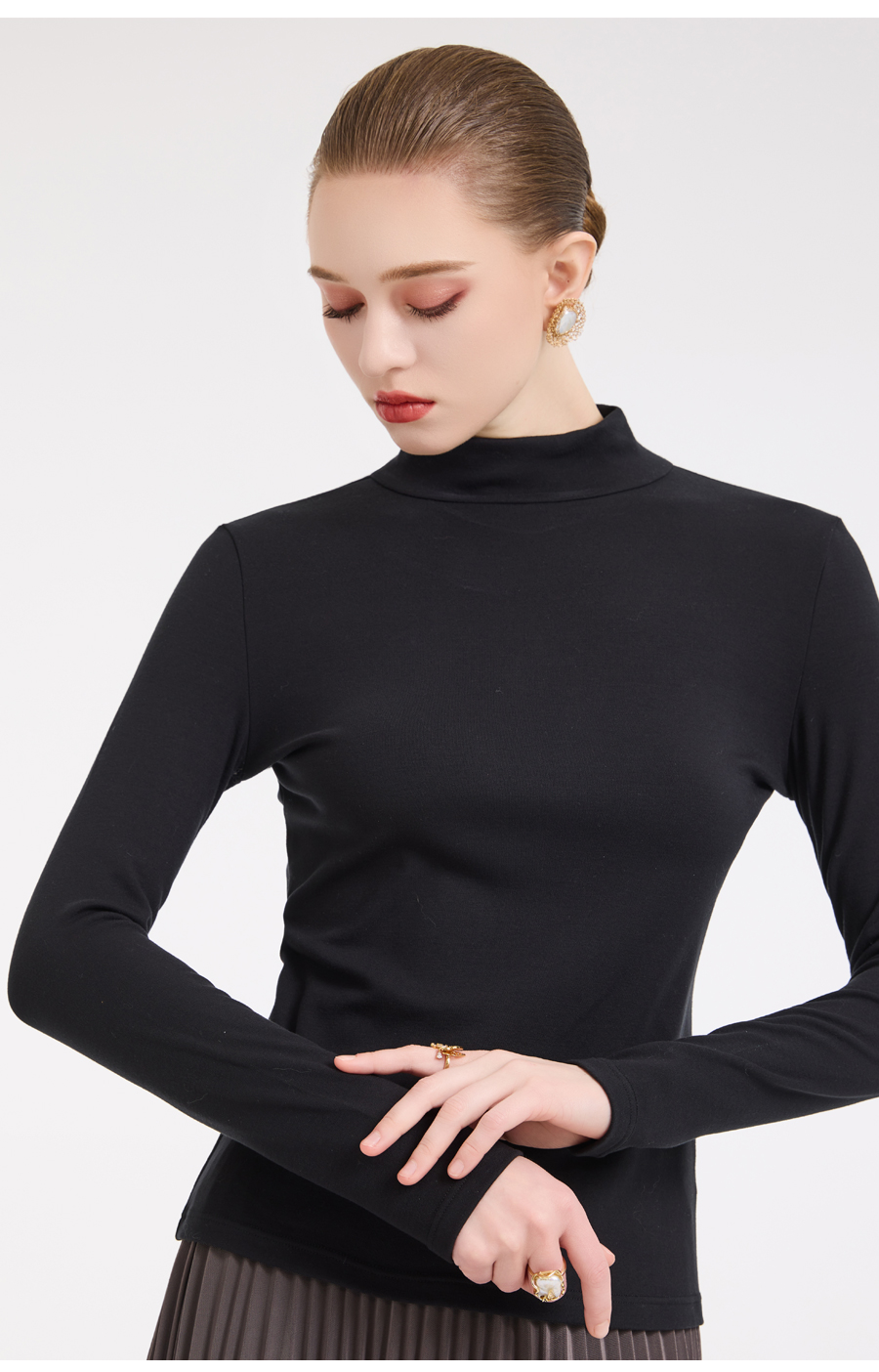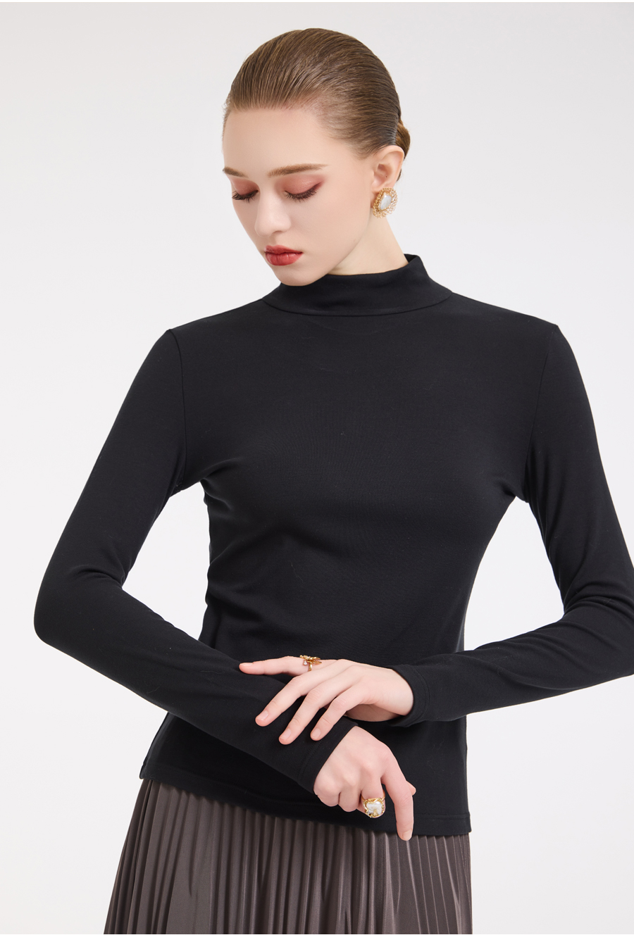 【四色可选】乔万尼轻奢百搭半高领保暖长袖羊毛修身打底衫EZ4C192