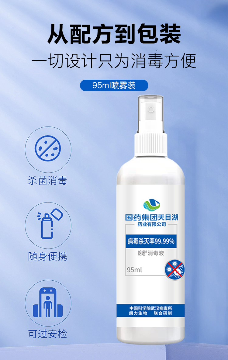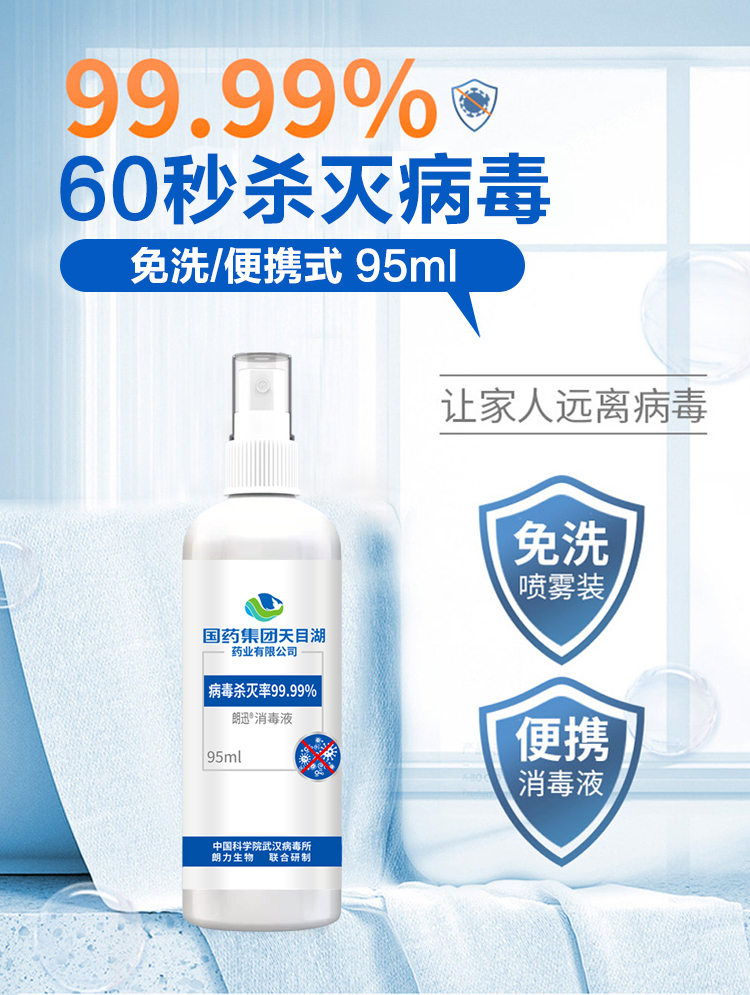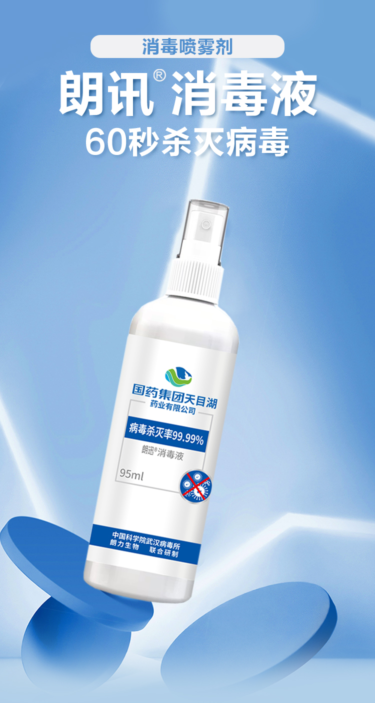 超值3瓶装「防疫消毒常备」国药集团朗迅物表消毒液/消毒喷雾95ml/瓶防疫常备无酒精轻松消毒守护全家健康