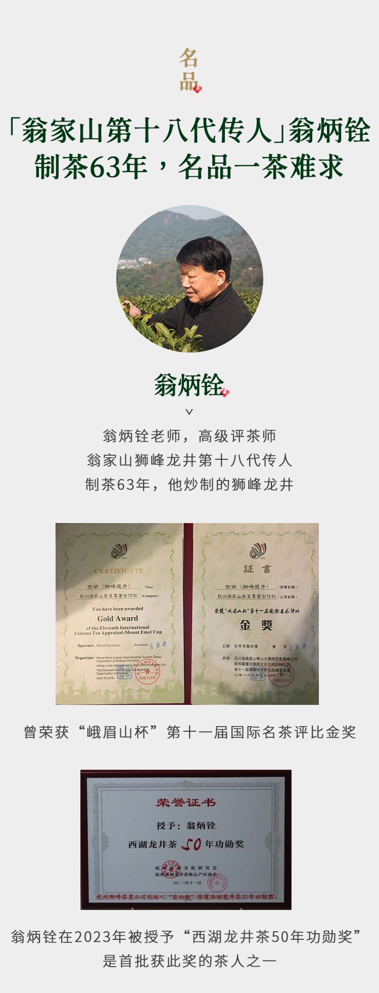 【赠白羊脂玉茶具 一物一码可溯源】预售!2026翁炳铨明前茶 核心产区狮峰西湖龙井茶( 可扫码 验真伪 预售约3.20发)