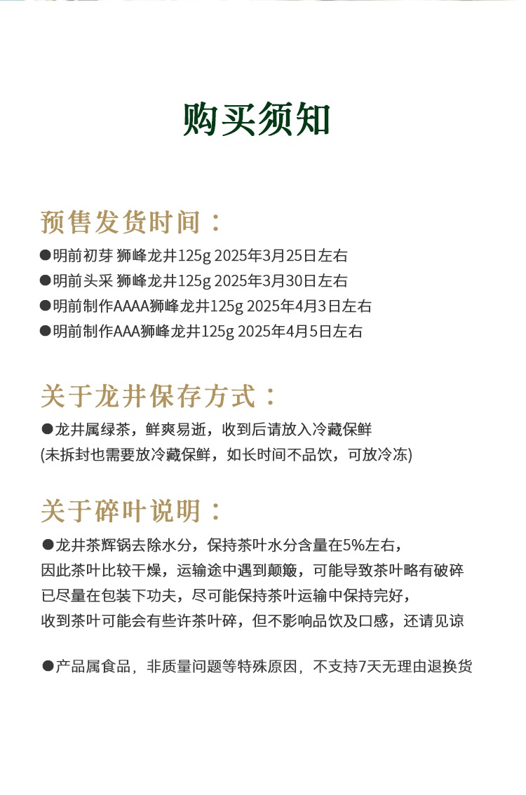 明前AAA125g:约4月5日前后发货,具体时间以实际为准