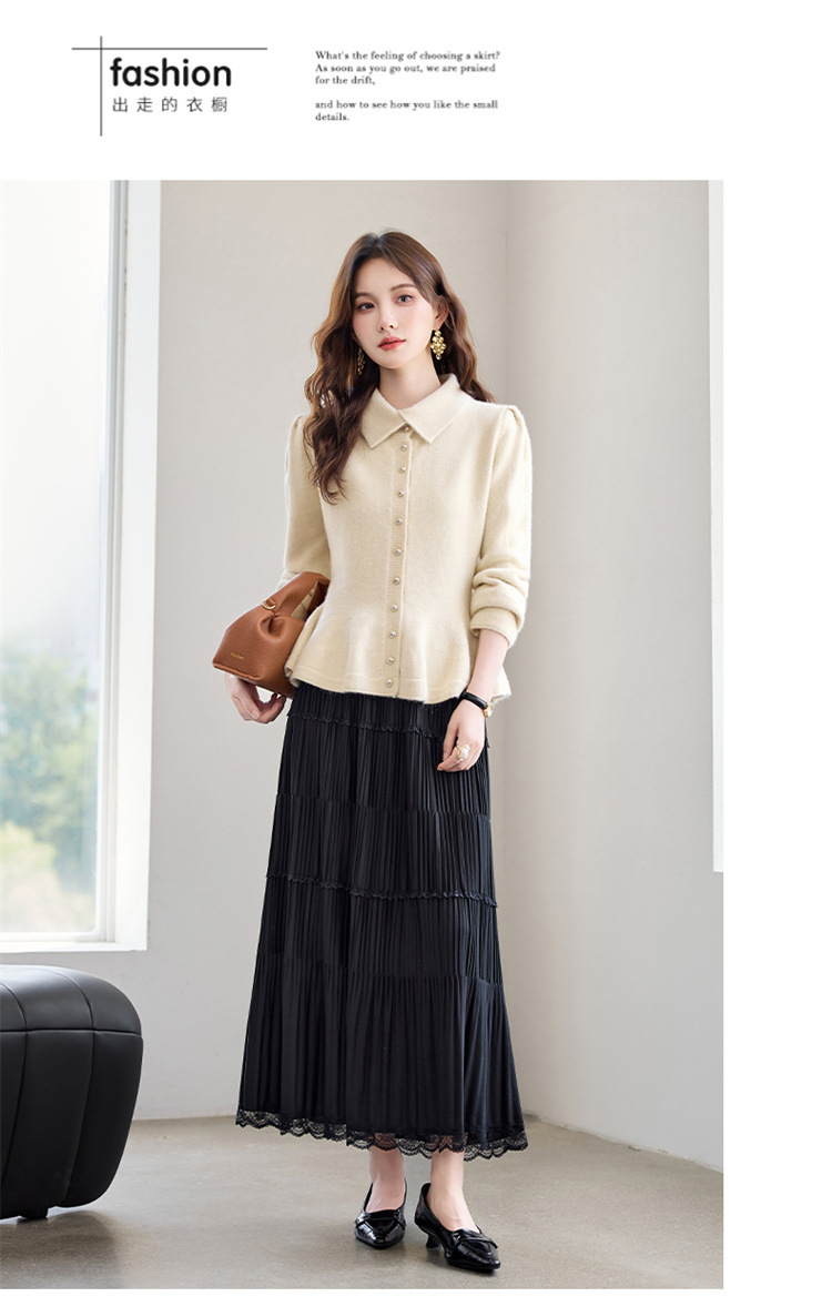 YBER618两件套连衣裙女长袖秋季新法式简约风珍珠圆领收腰气质百搭套装裙
