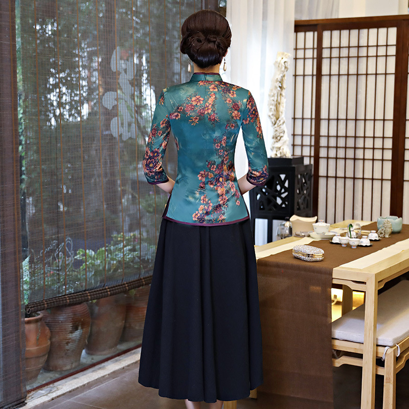 SC8067中国风新中式日常改良旗袍上衣两件套装裙年轻款复古短袖春夏