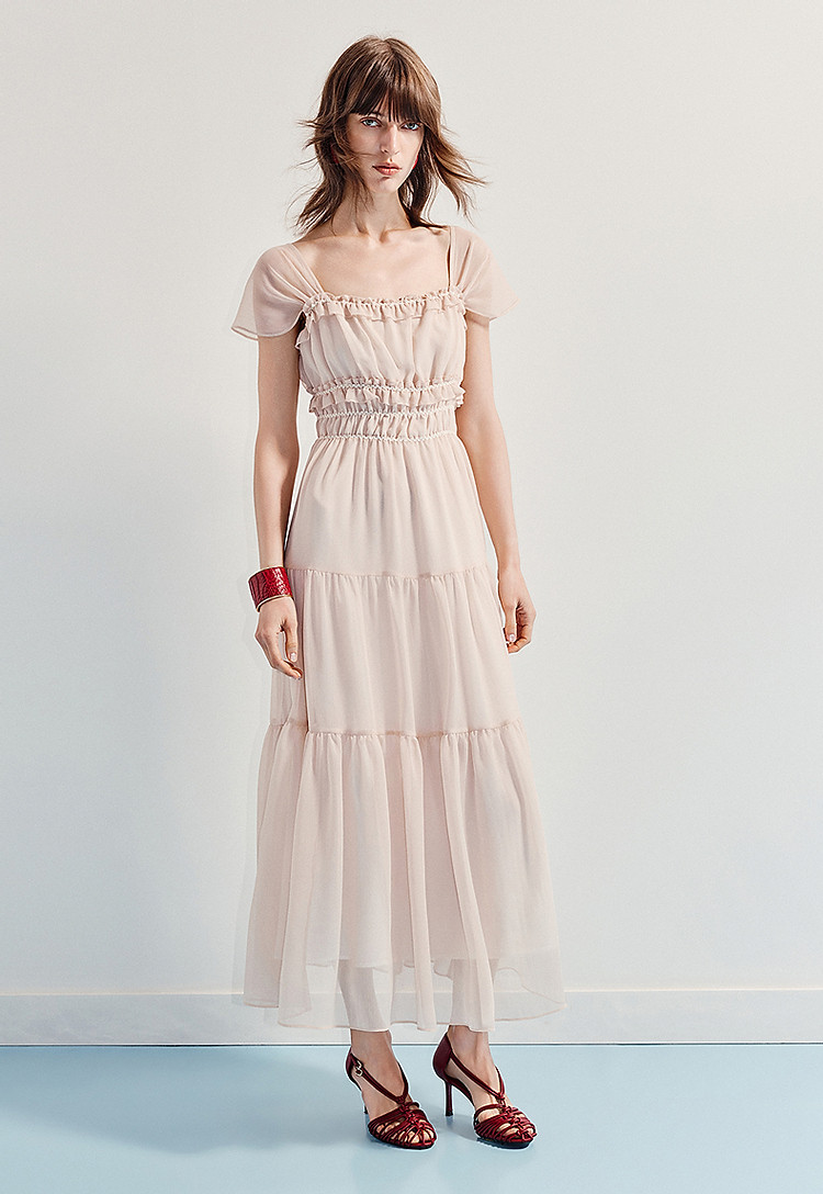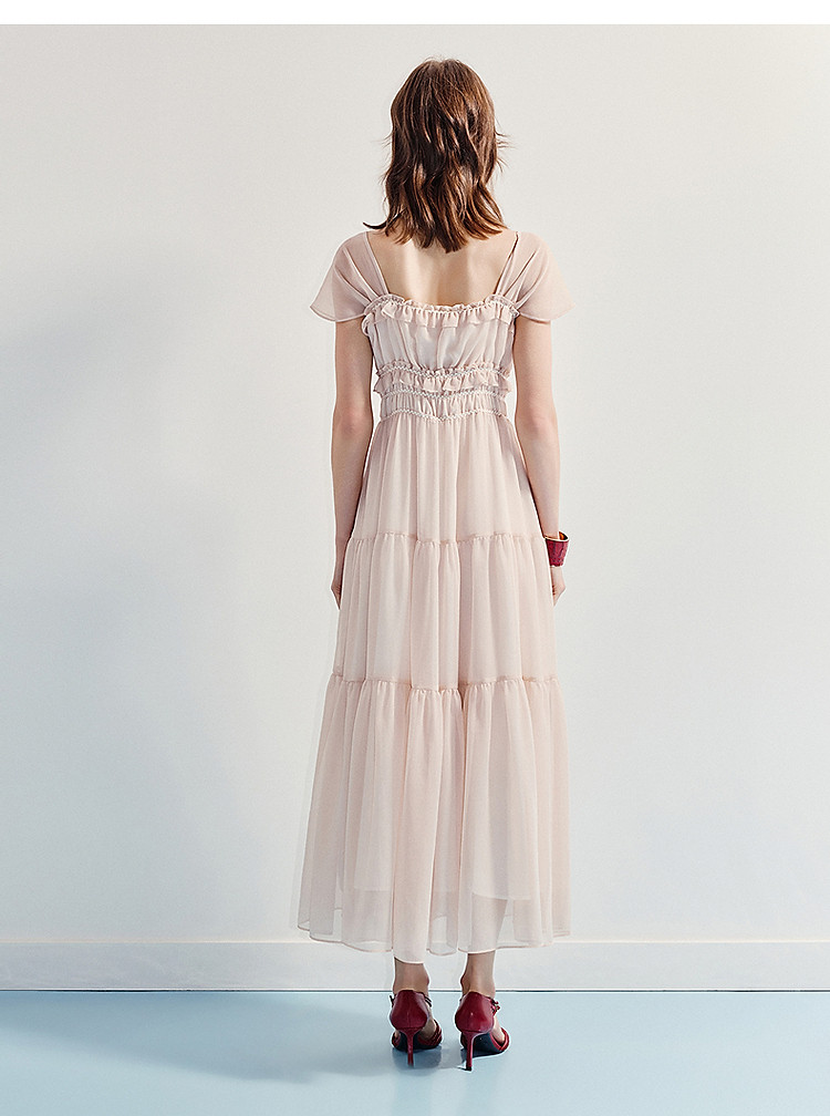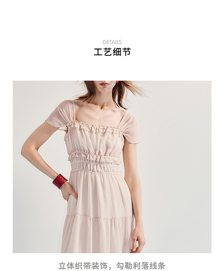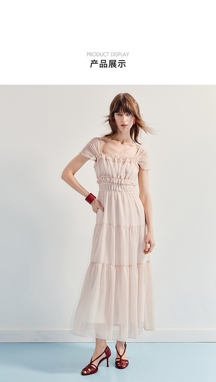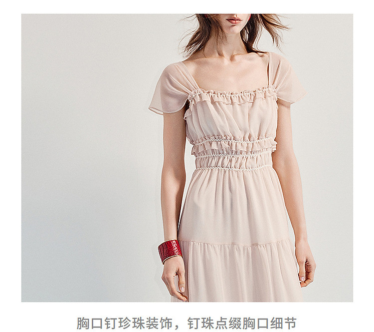 优雅度假风连衣裙25夏法式优雅抽褶长裙气质感(货号:MF86DR254E2002)