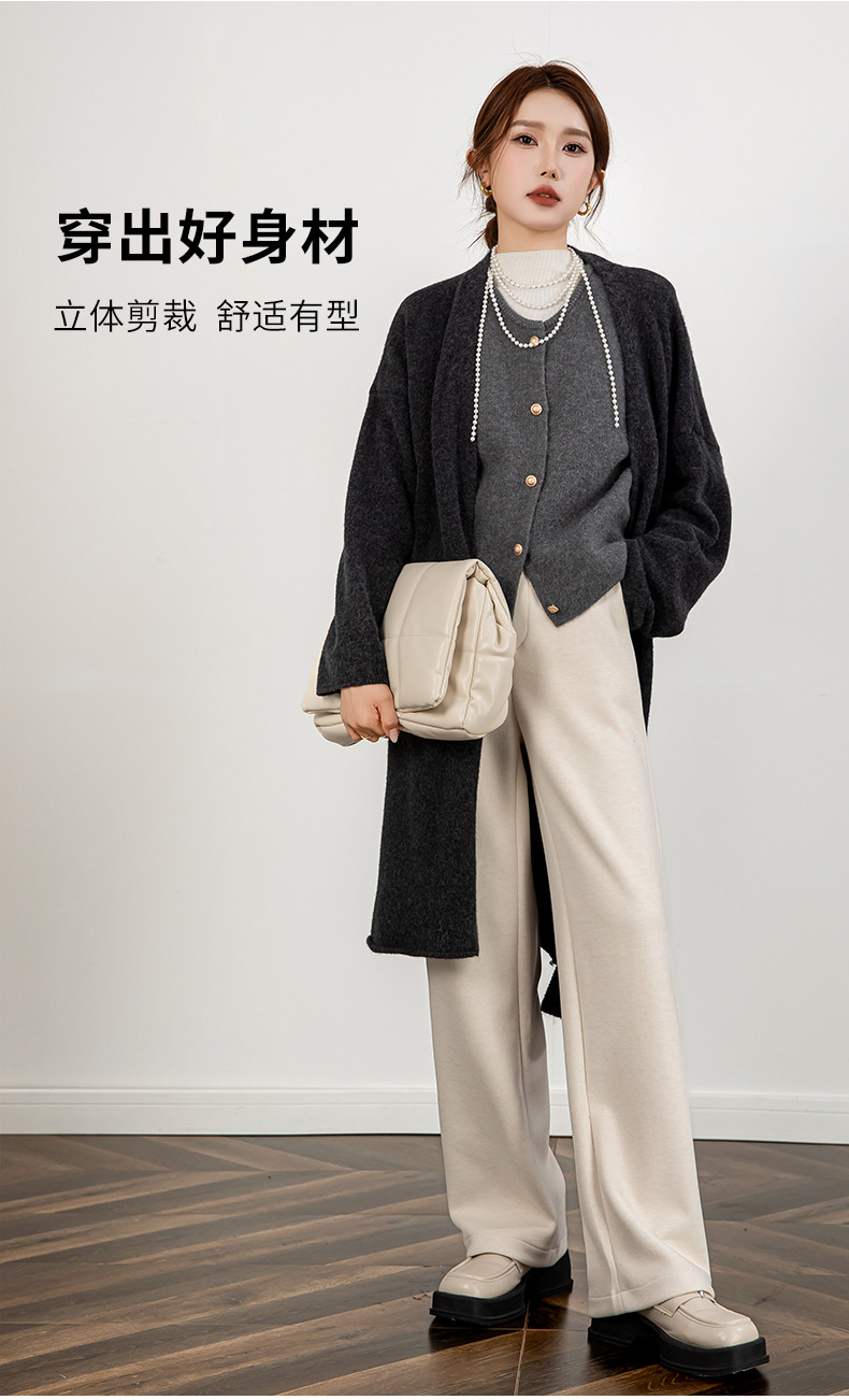 【高货rg】全新升级【铂金会员165/天猫219/差价54】(41249) 洛诗琳绵羊毛阔腿裤2024秋冬新款醋酸垂感显瘦休闲直筒拖地裤