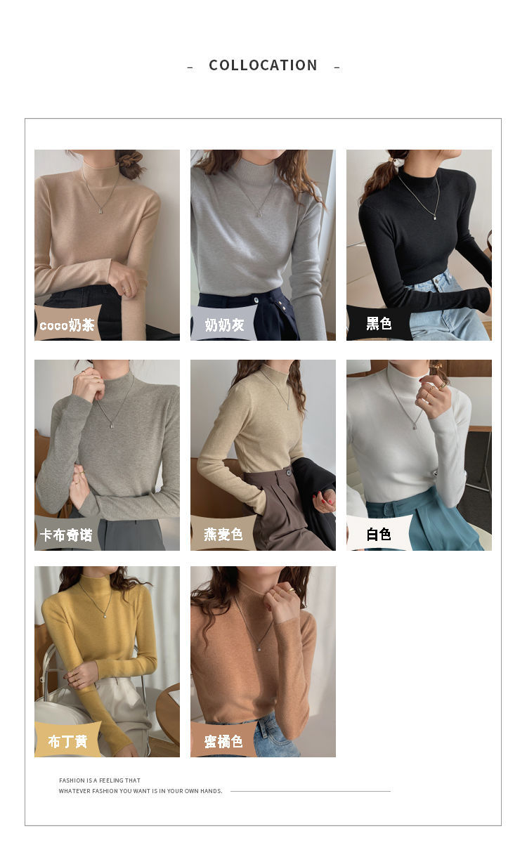 半高领打底衫女春秋内搭洋气2021新款早秋上衣秋冬毛衣长袖针织衫