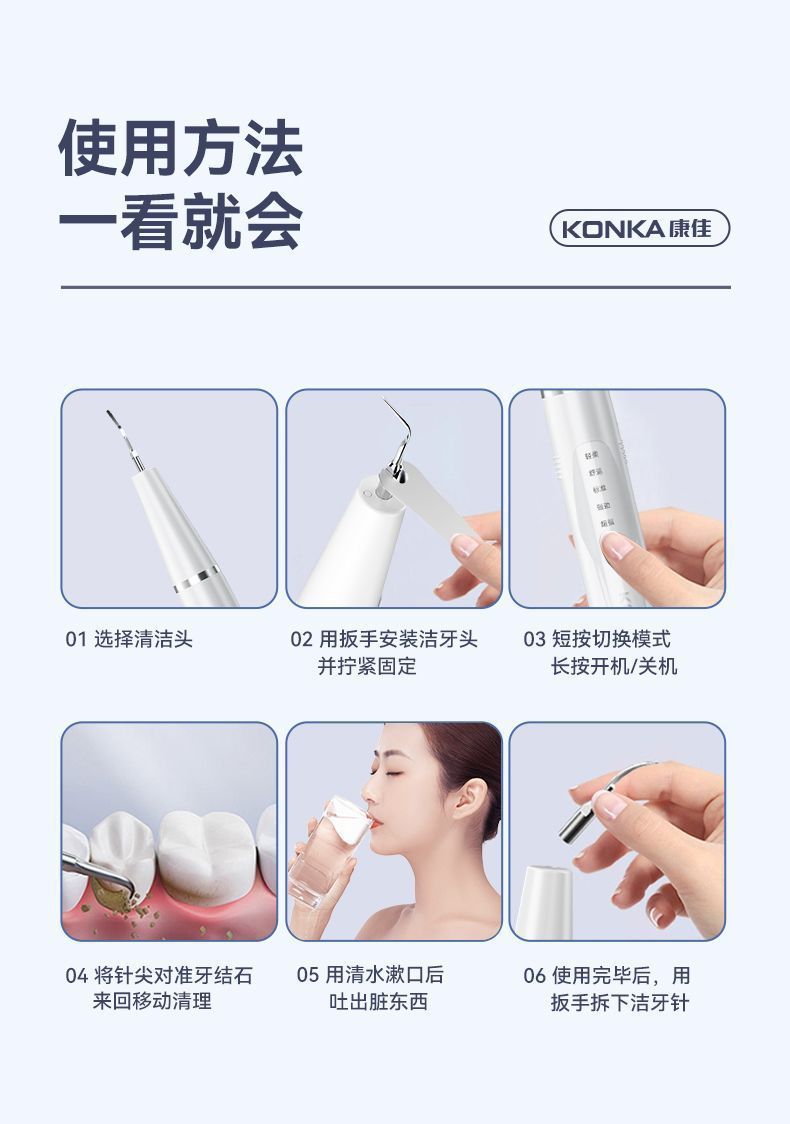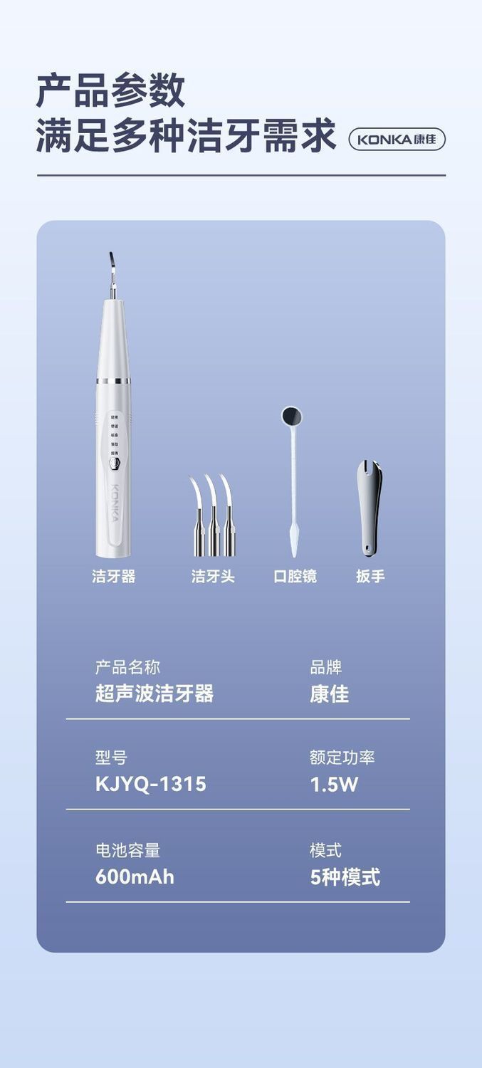 【洁牙护齿】康佳KONKA超声波洁牙器 除牙结石 专业口腔清洁 智能感应识别 不伤牙龈
