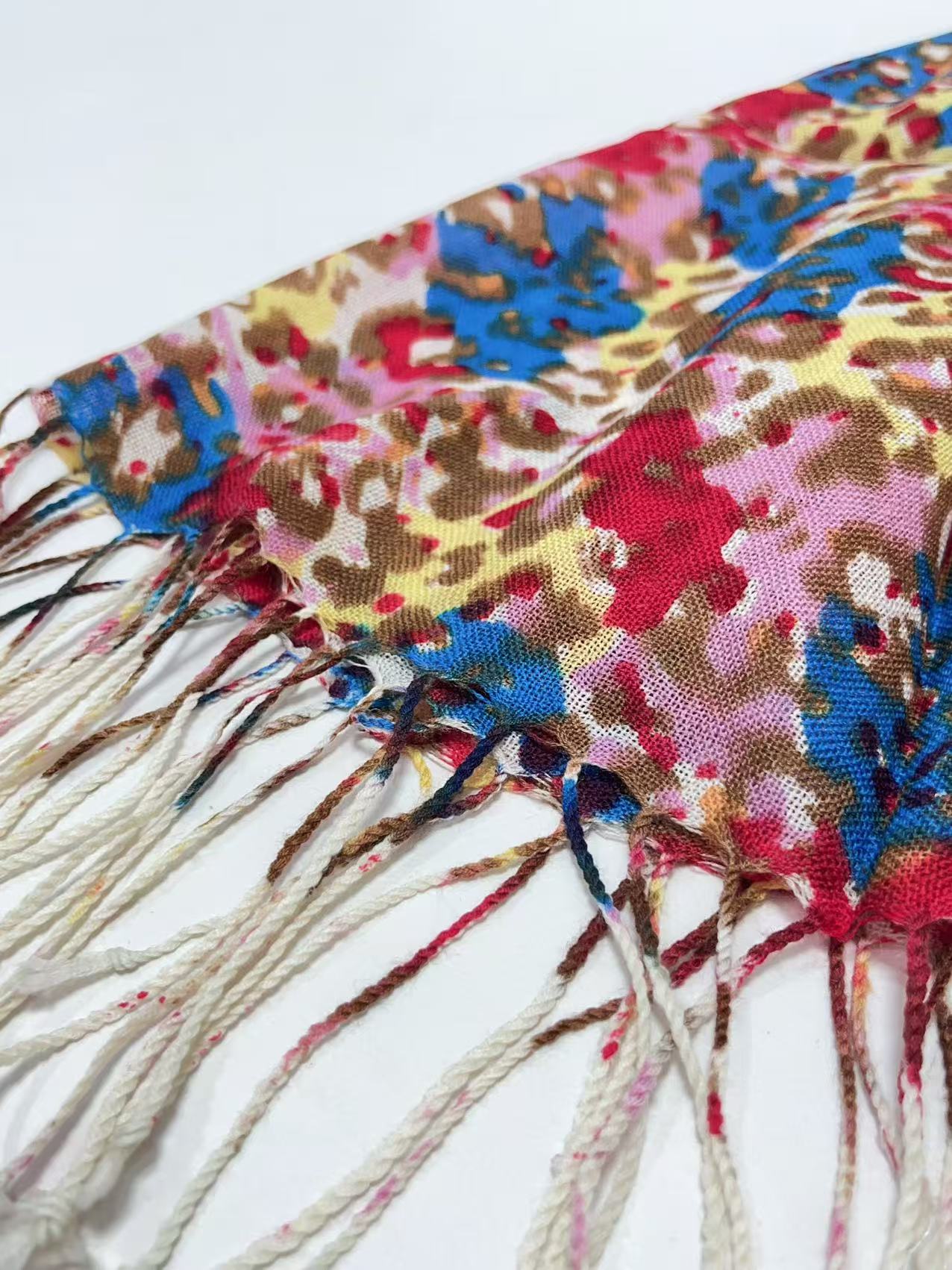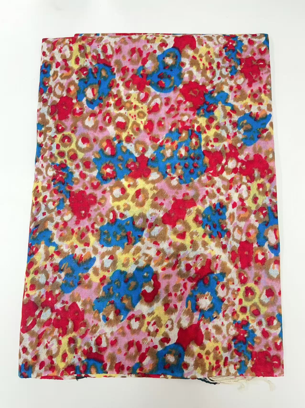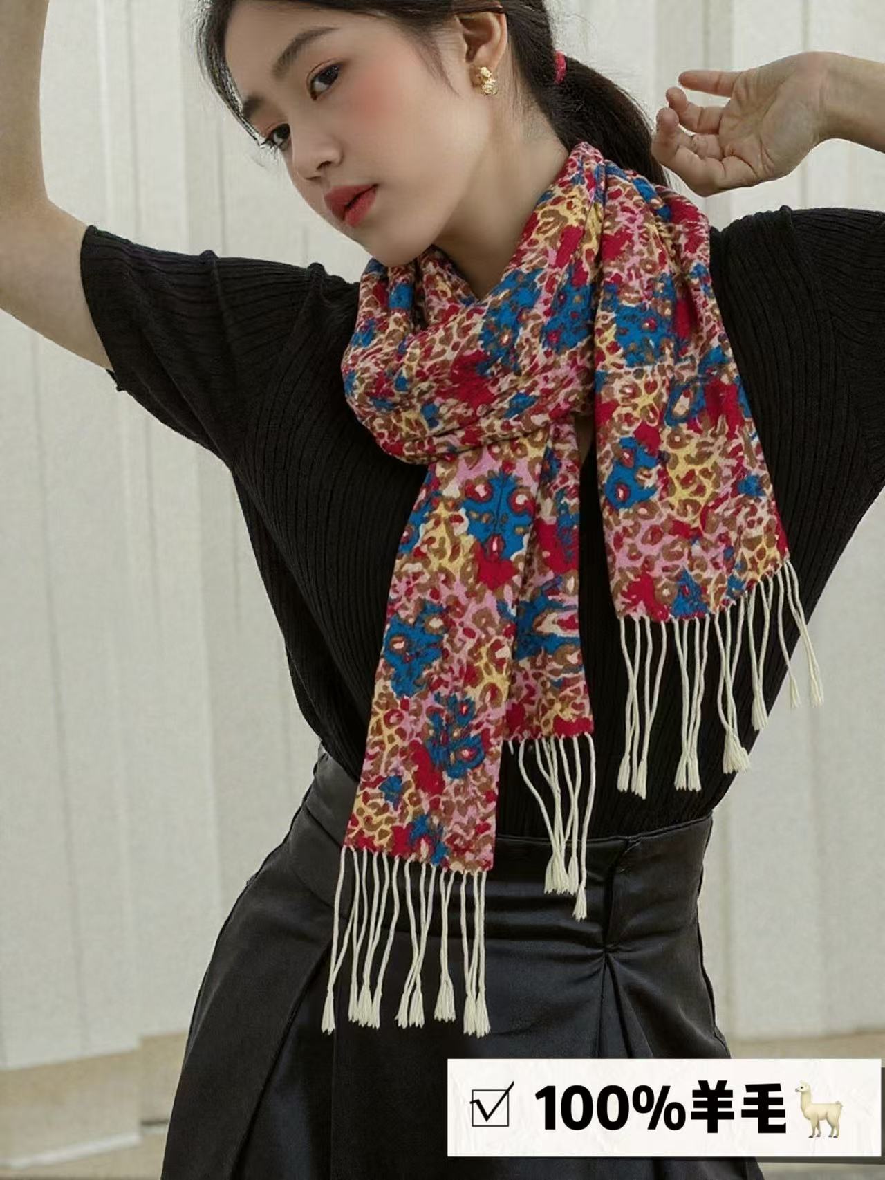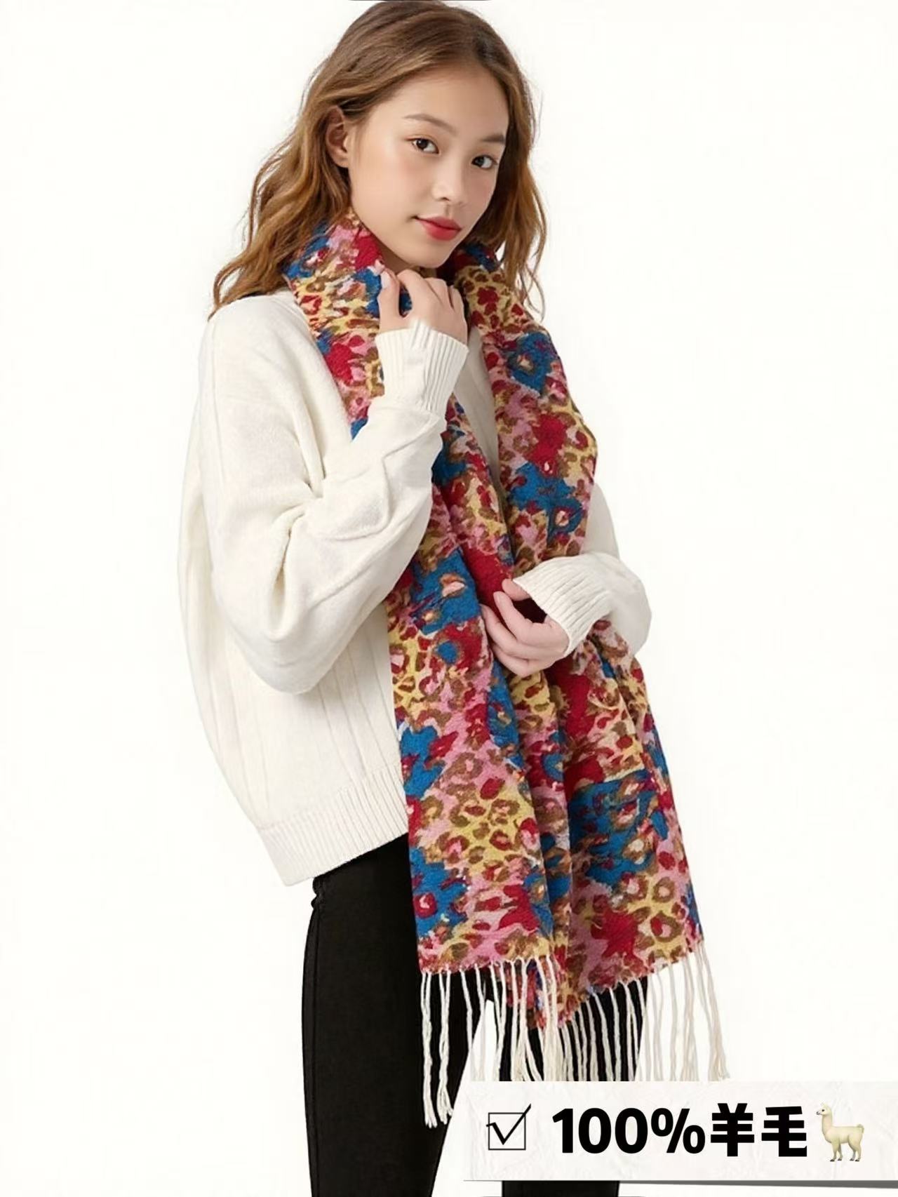 {特卖}100%羊毛围巾花型三彩绘豹纹 ~喜出