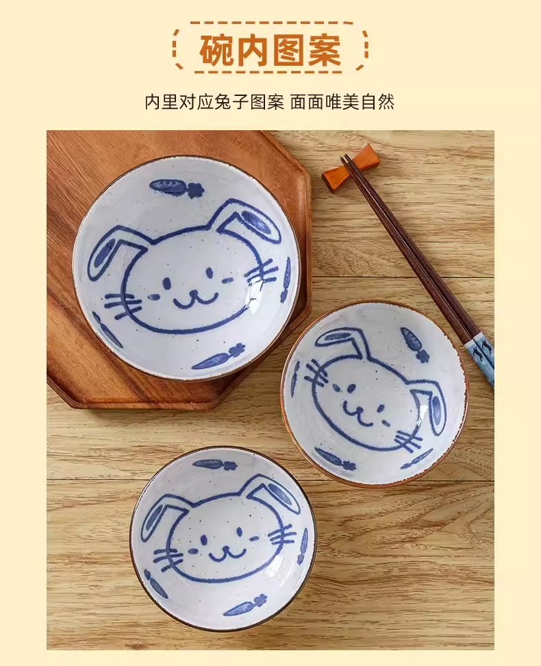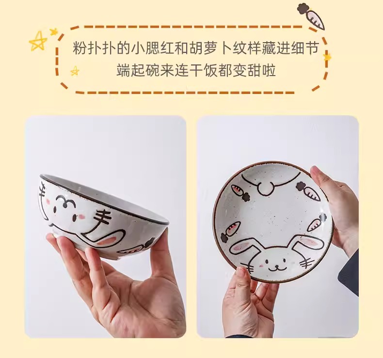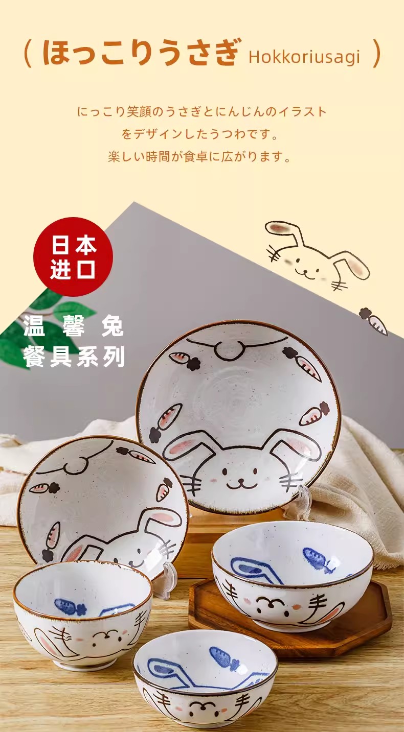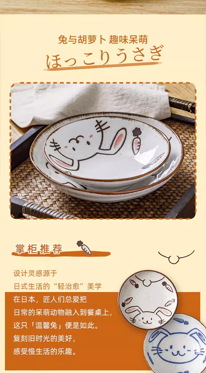 日本进口儿童餐具温馨兔8.3英寸深盘