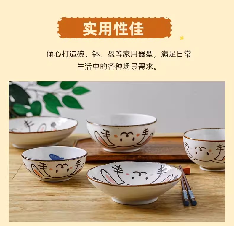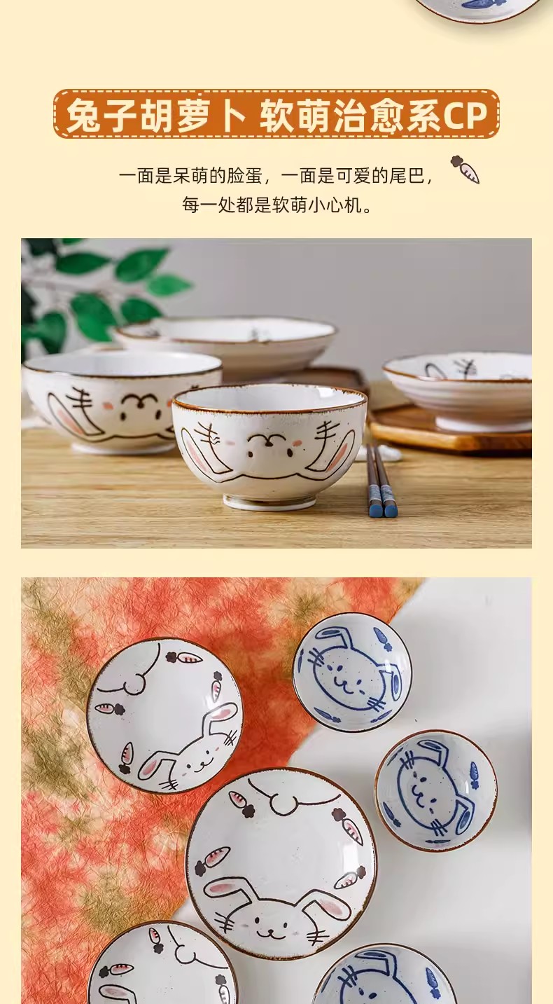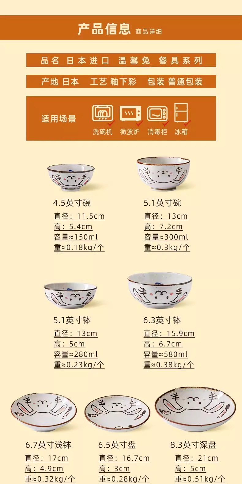 日本进口儿童餐具温馨兔8.3英寸深盘