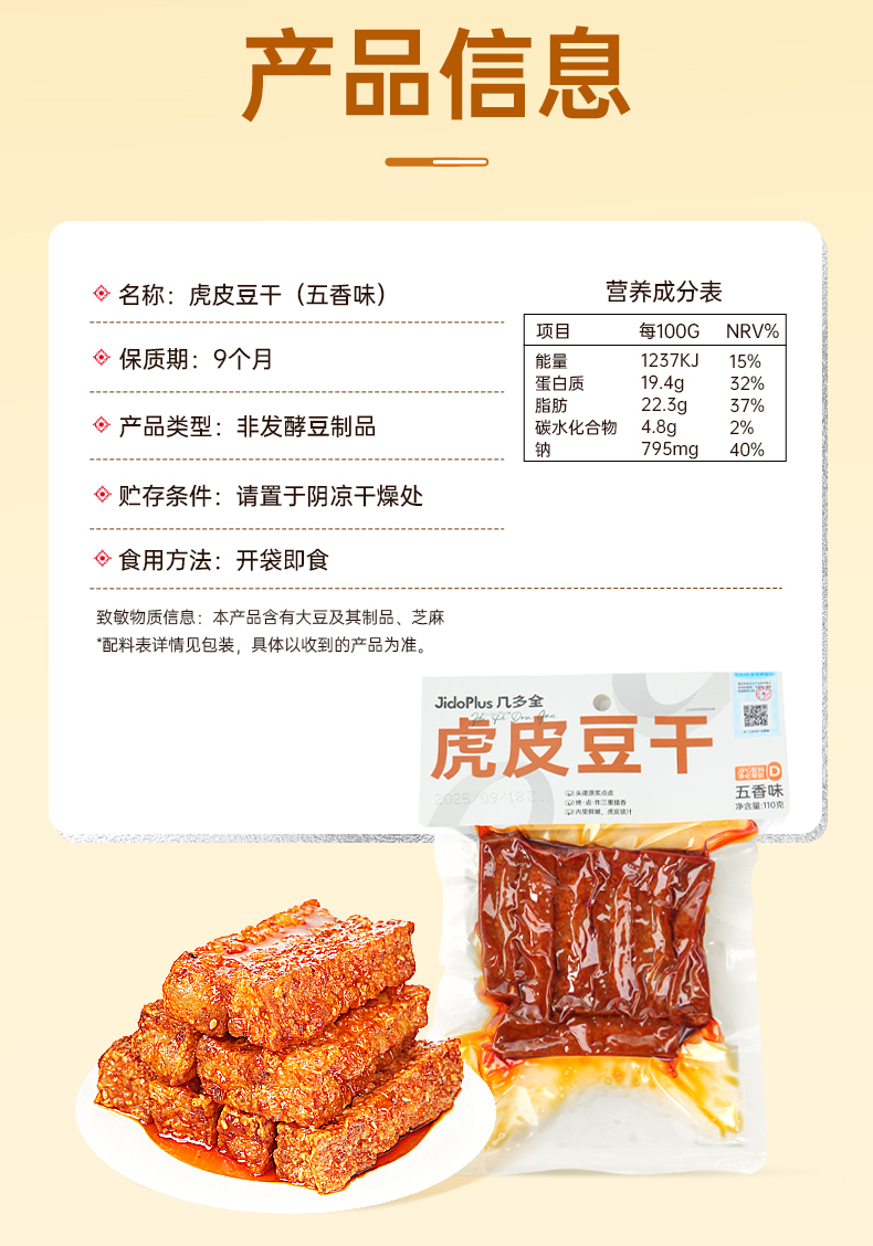 【鲜食】几多全虎皮豆干(五香味) 110g/袋
