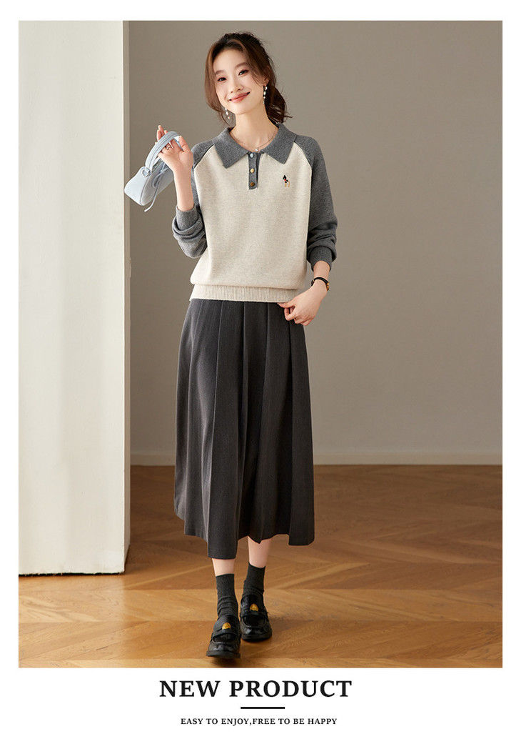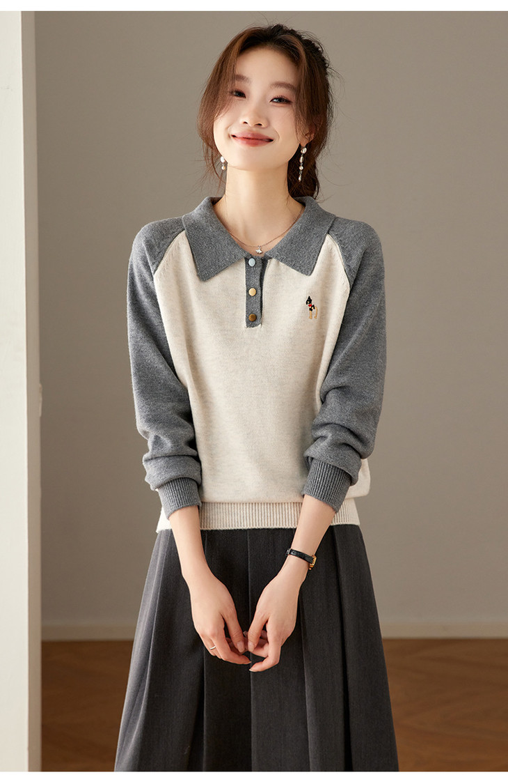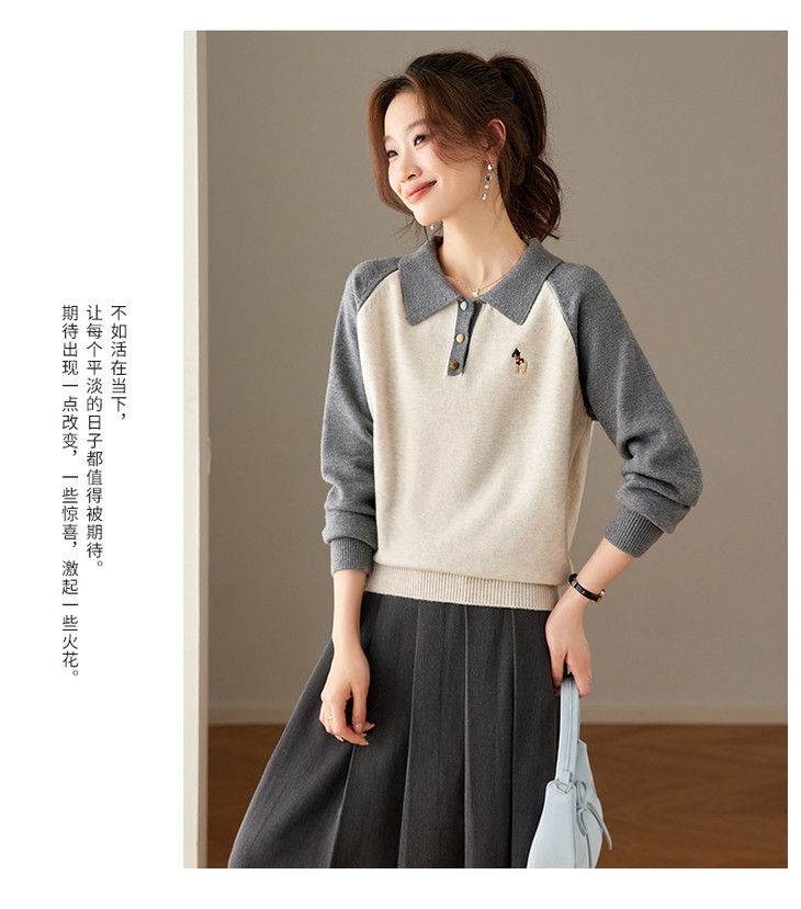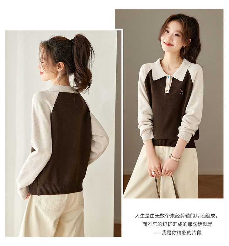 法式撞色POLO领内搭软糯毛衣,气质翻领针织衫上衣CC-27-25261