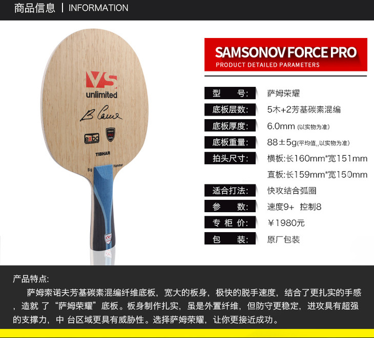 商品名称:挺拔Tibhar 2016新款专业底板 萨姆荣耀 老萨的荣耀等你一起