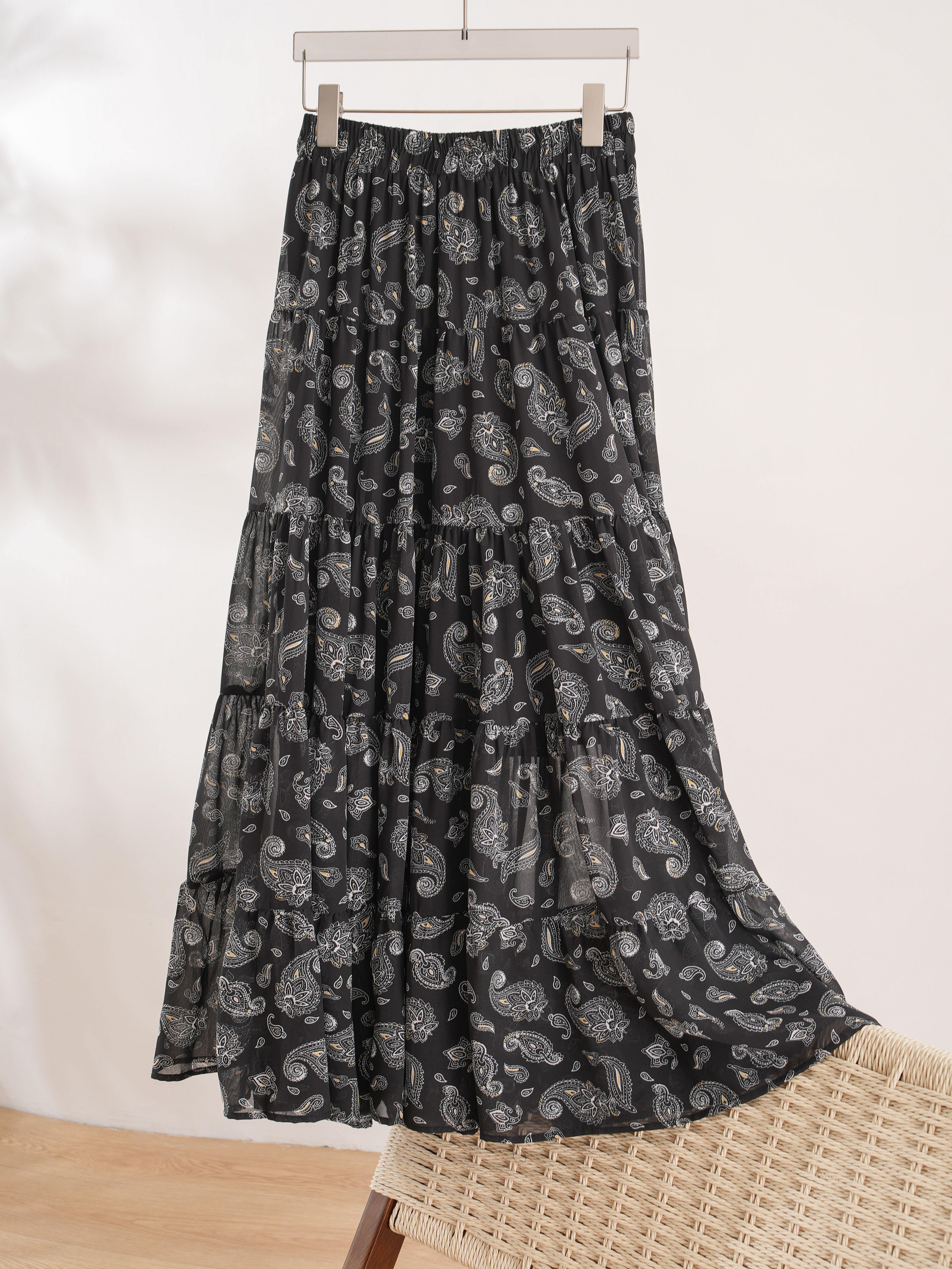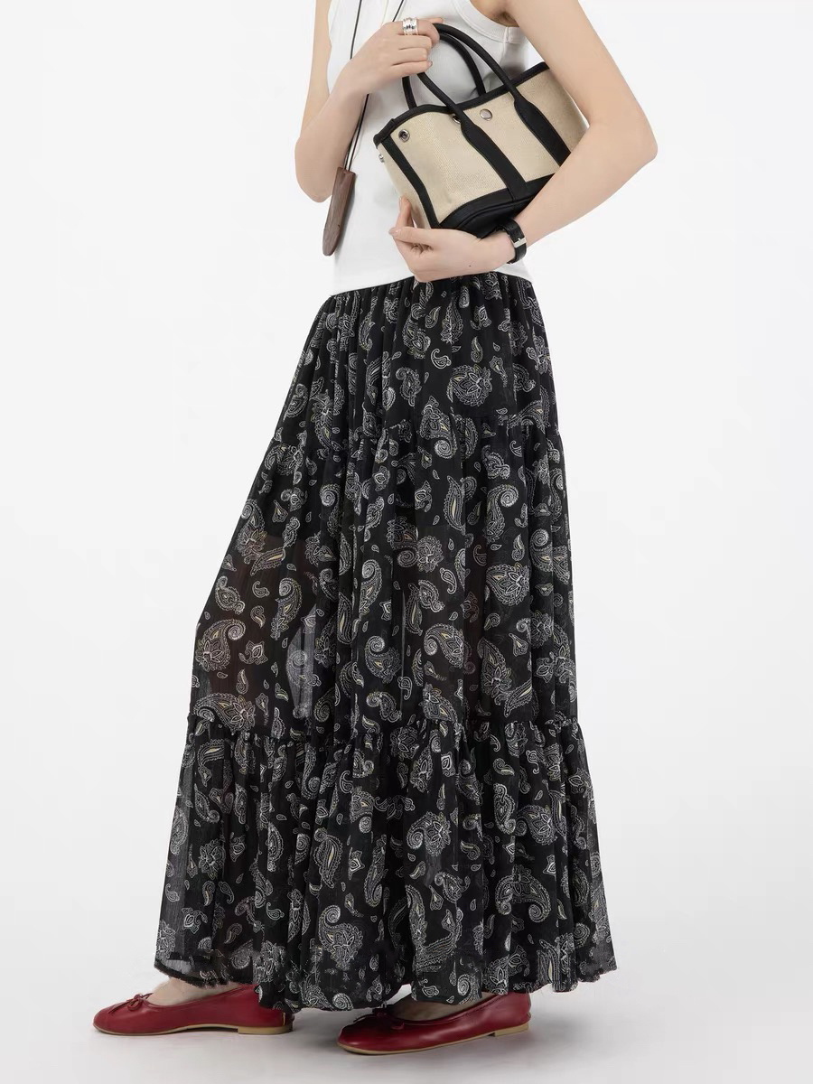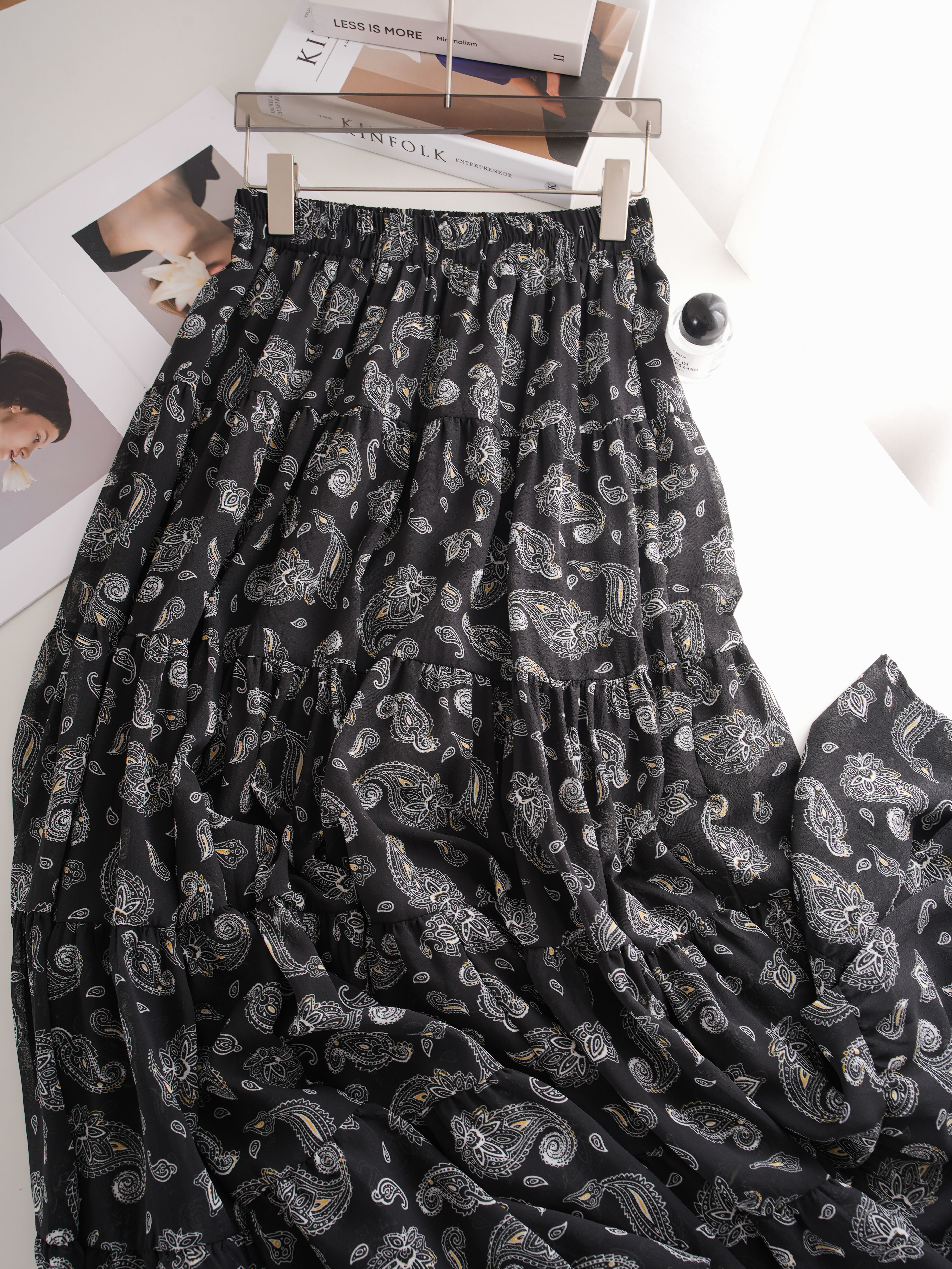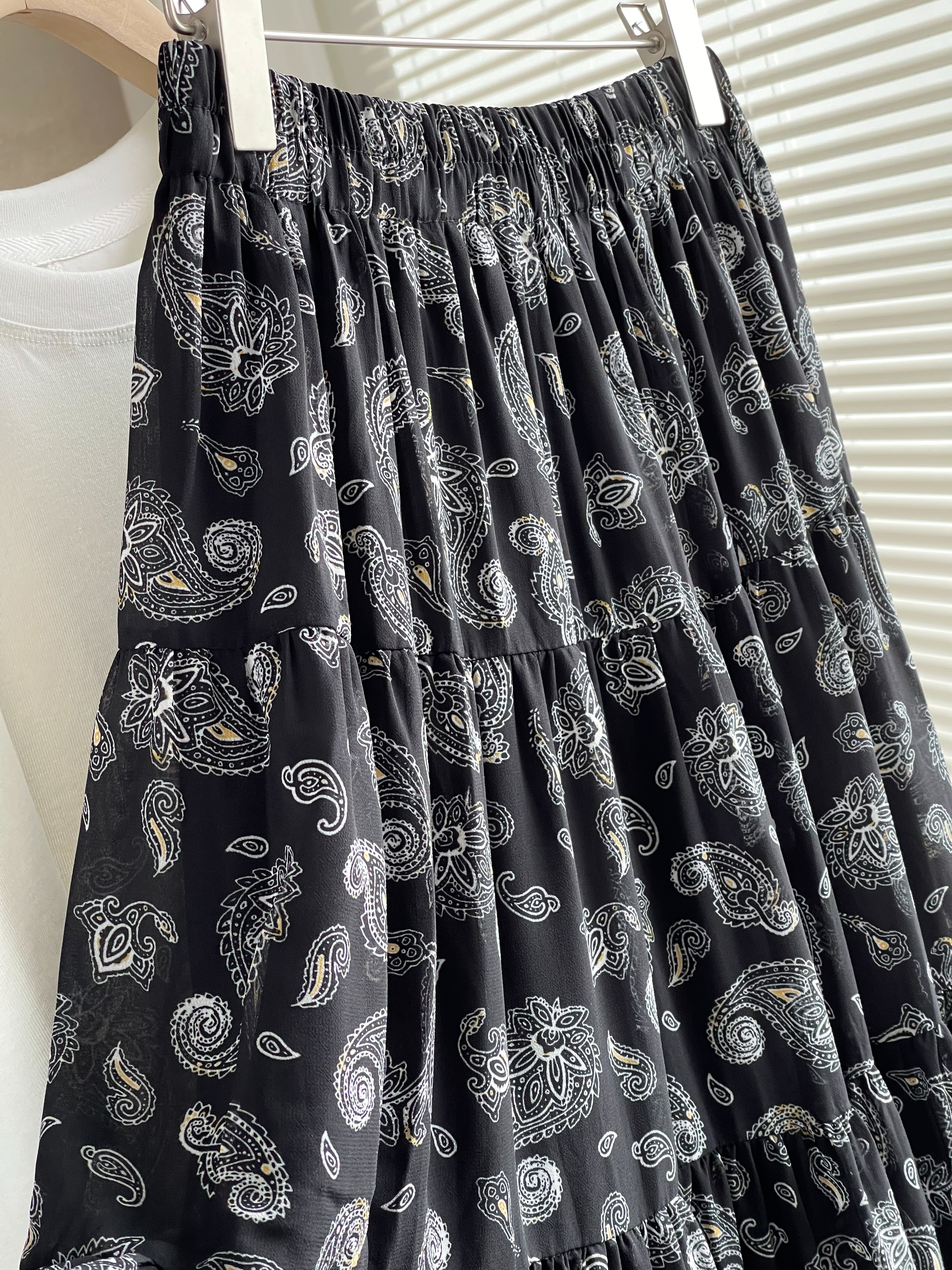 【樱西玛ENXIMANE 腰果花度假风雪纺裙】法式印花半裙 四层拼接 显瘦窄胯