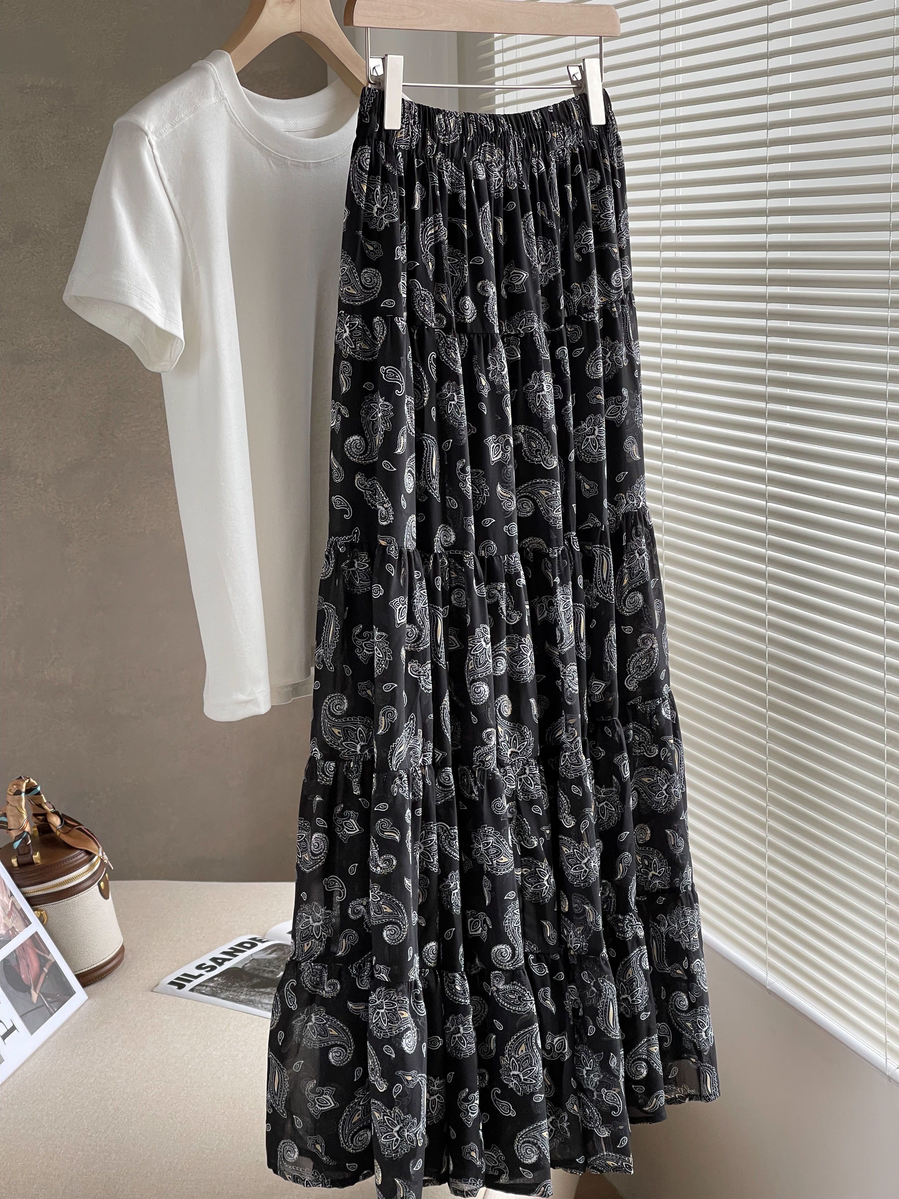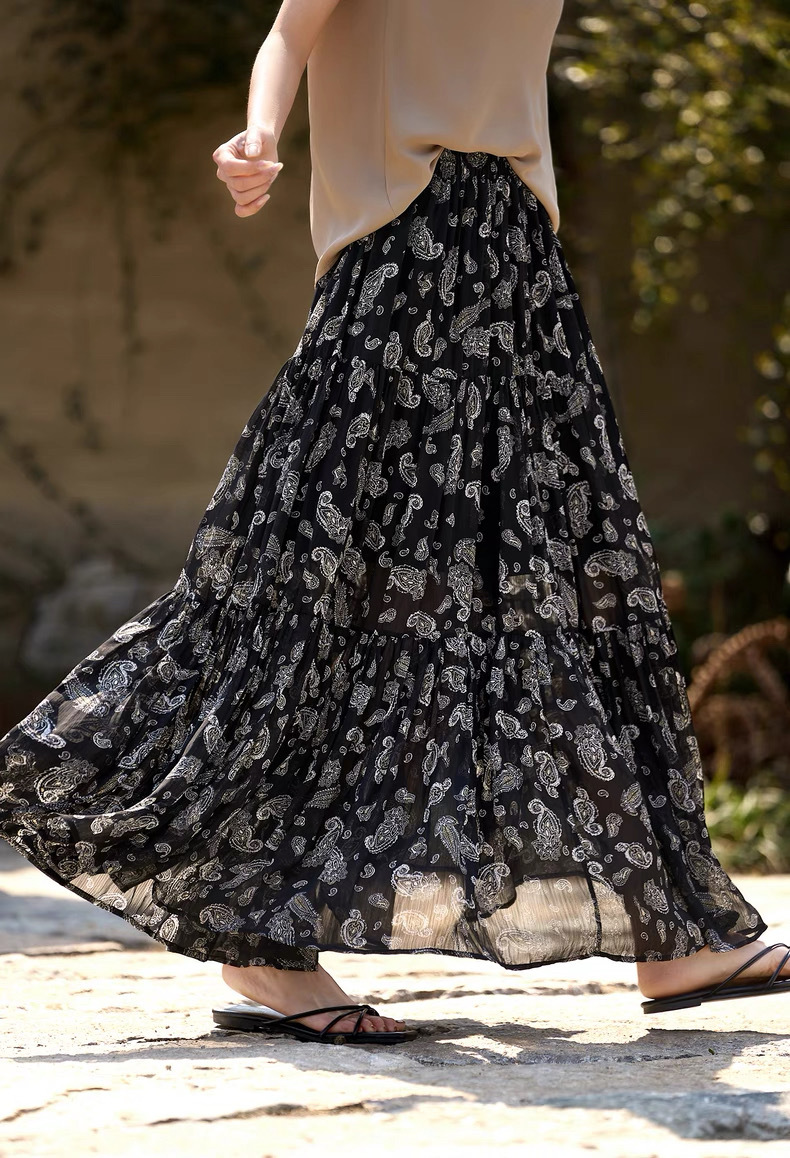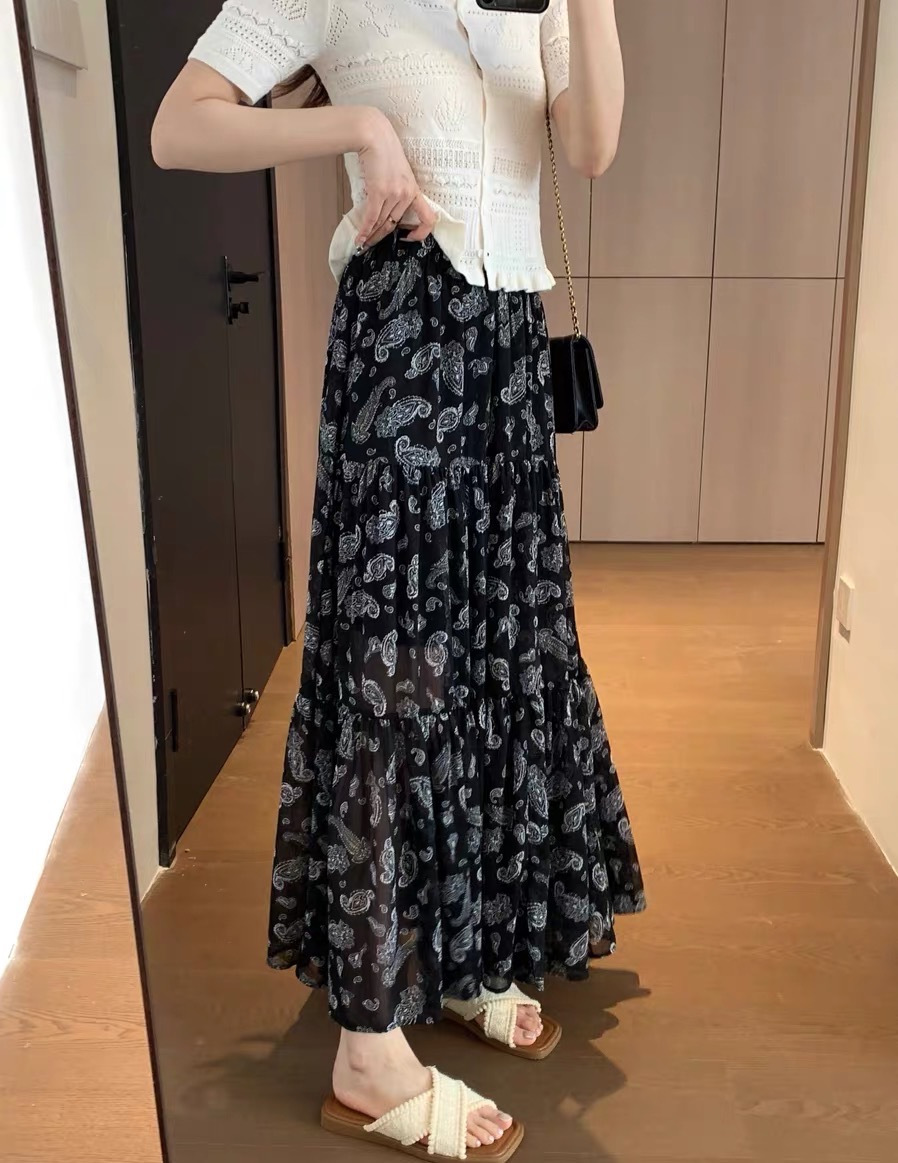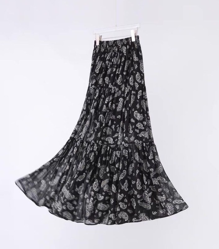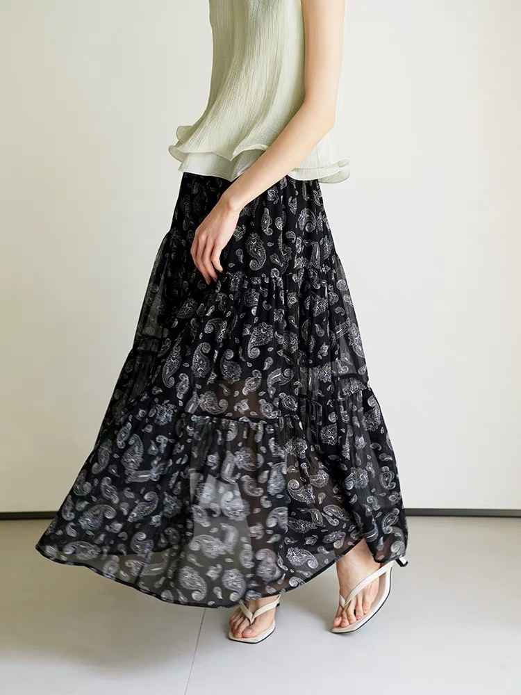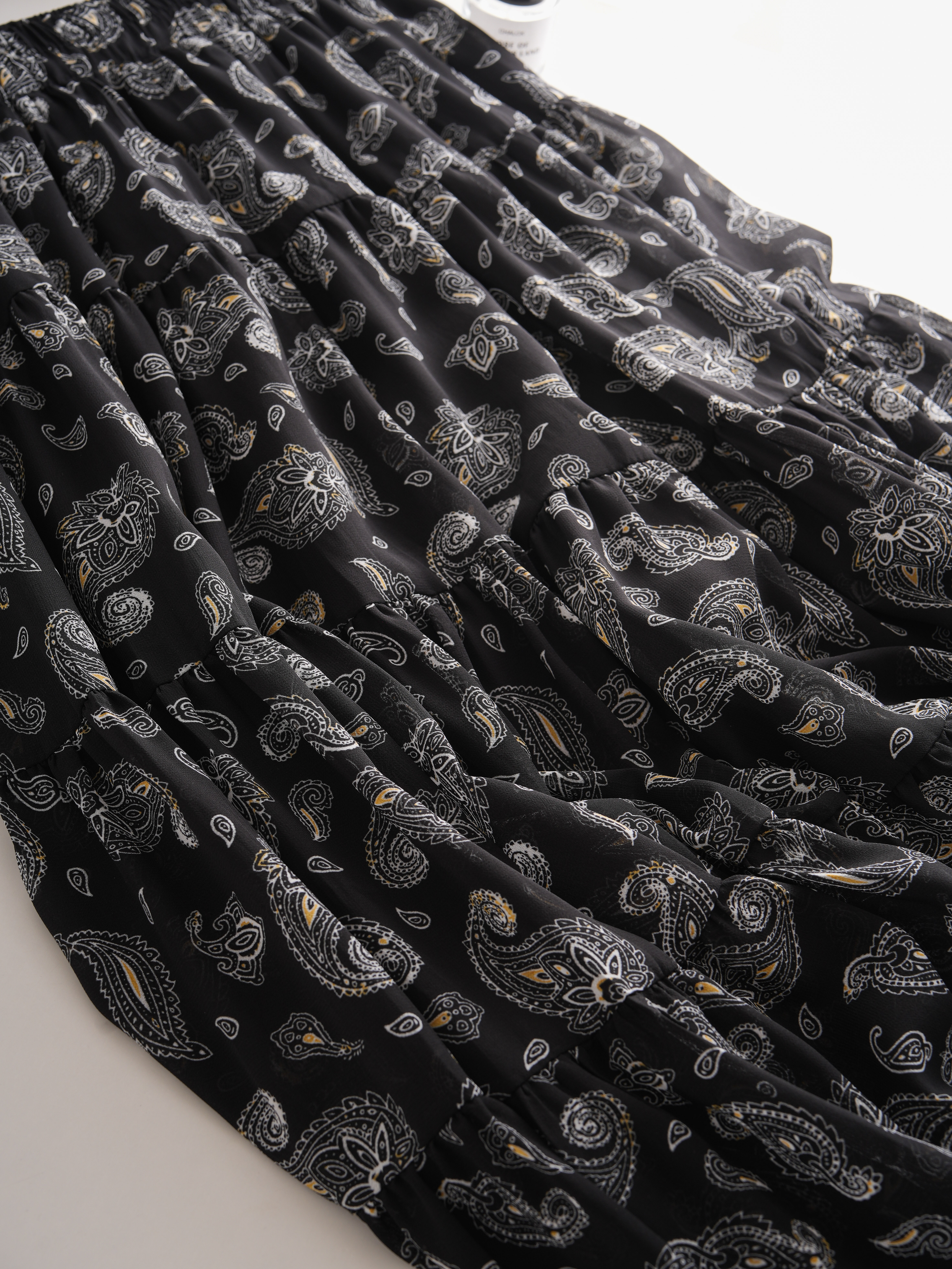 【樱西玛ENXIMANE 腰果花度假风雪纺裙】法式印花半裙 四层拼接 显瘦窄胯