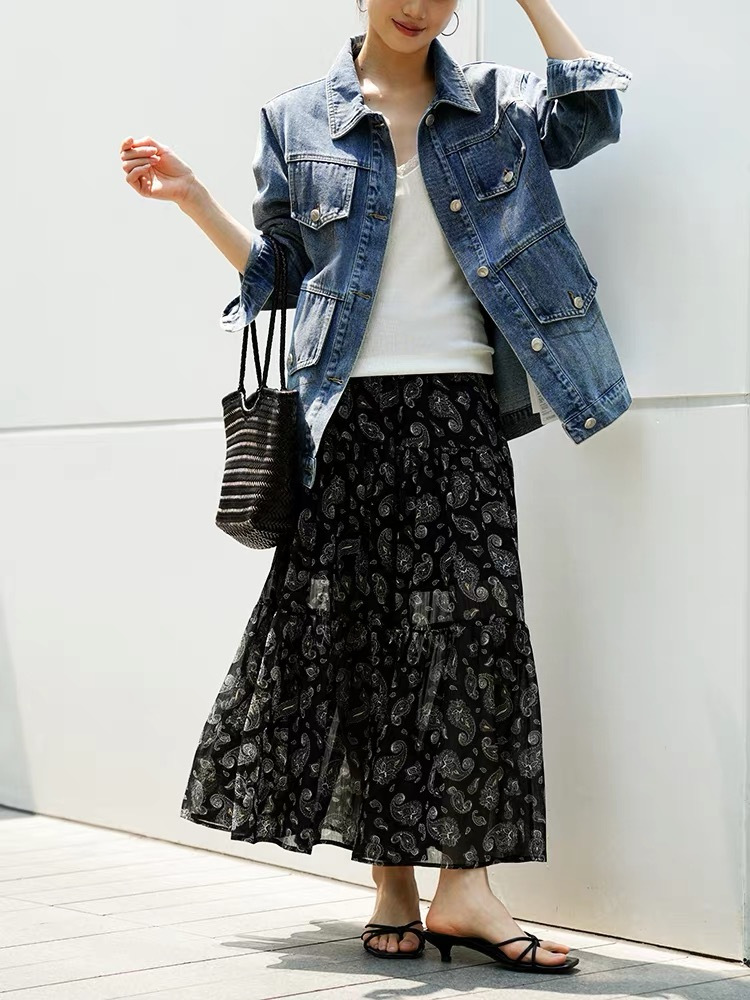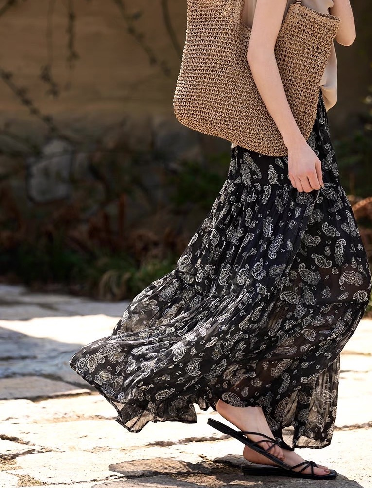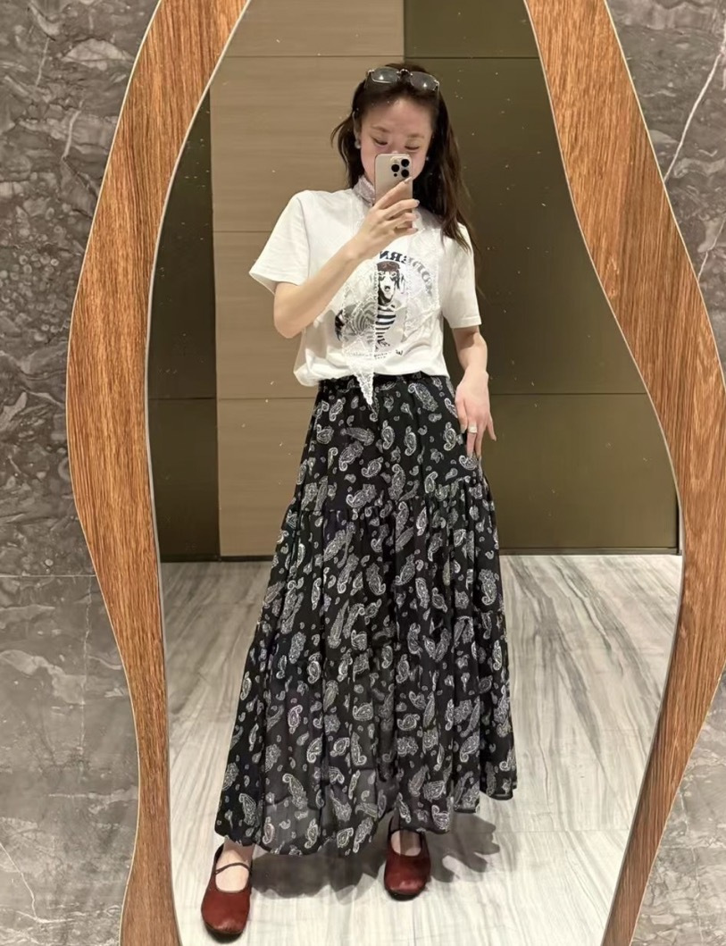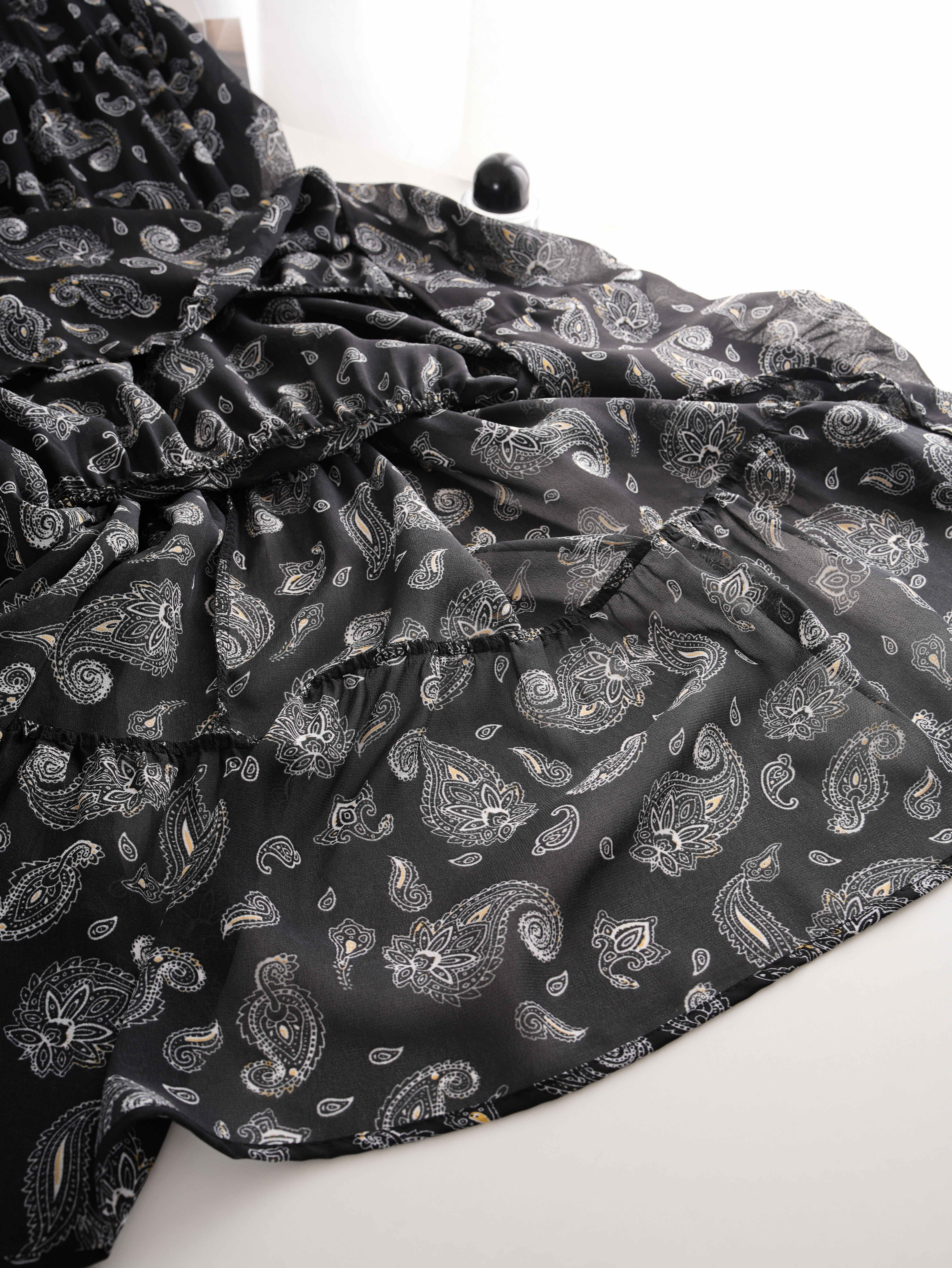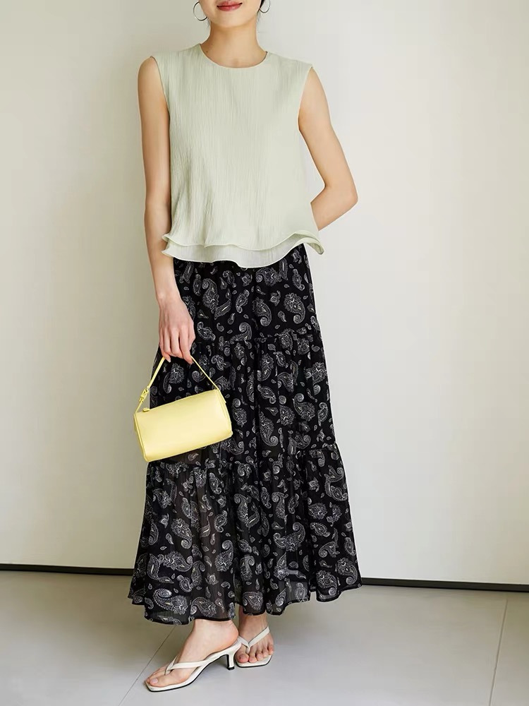 【樱西玛ENXIMANE 腰果花度假风雪纺裙】法式印花半裙 四层拼接 显瘦窄胯