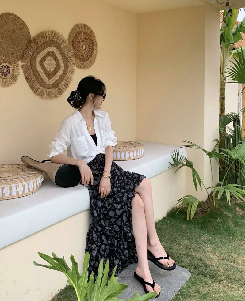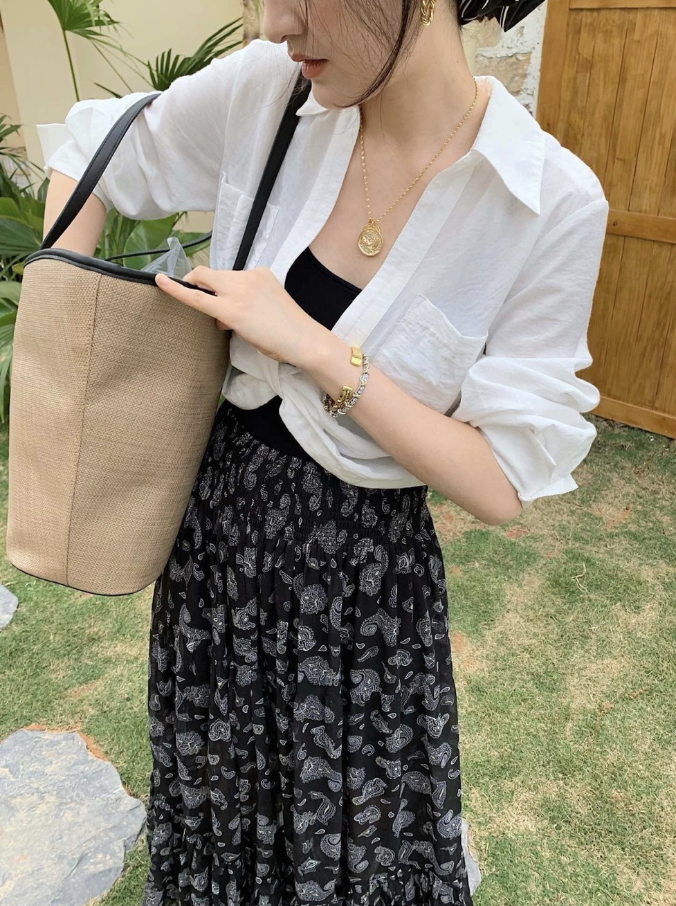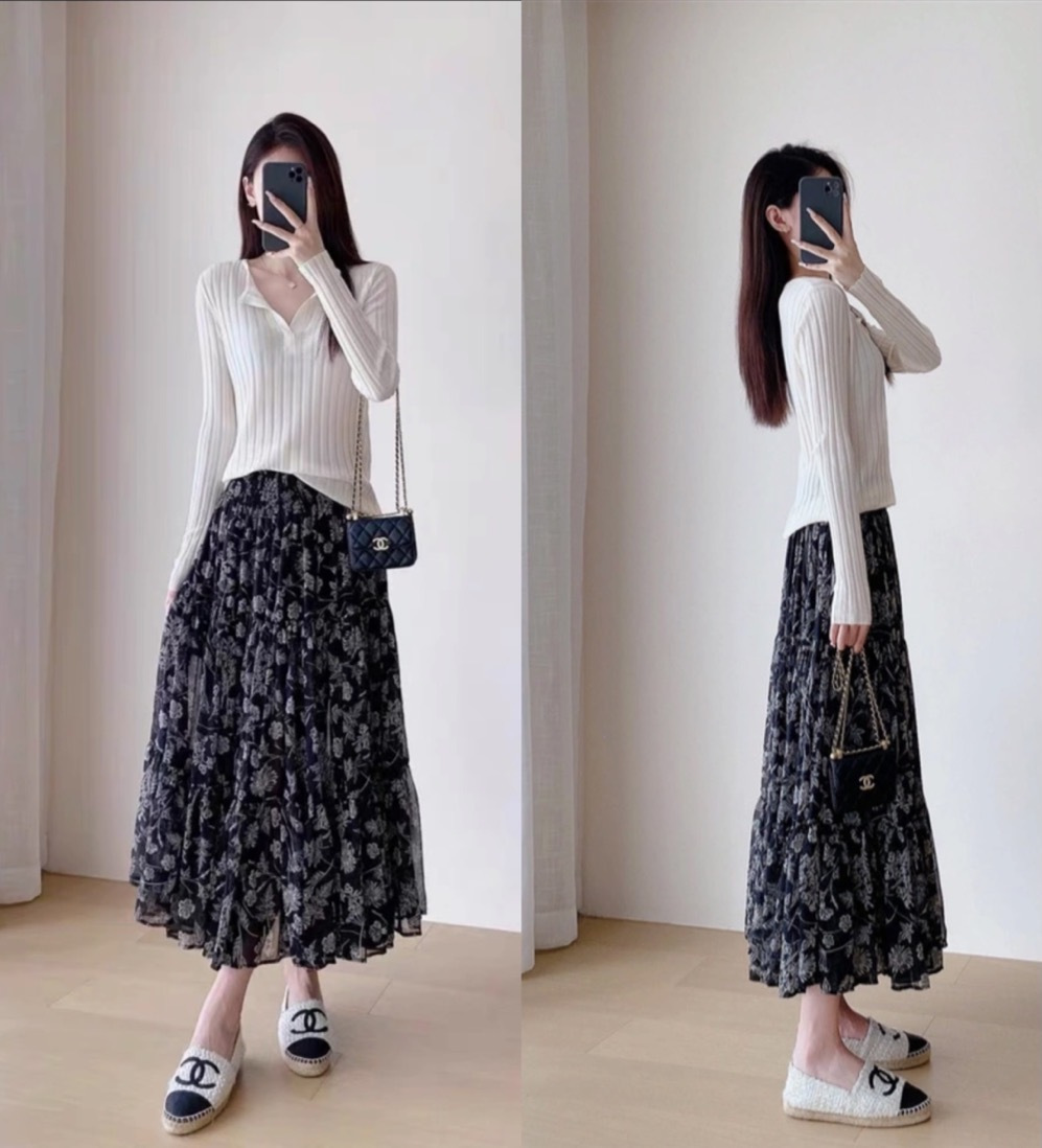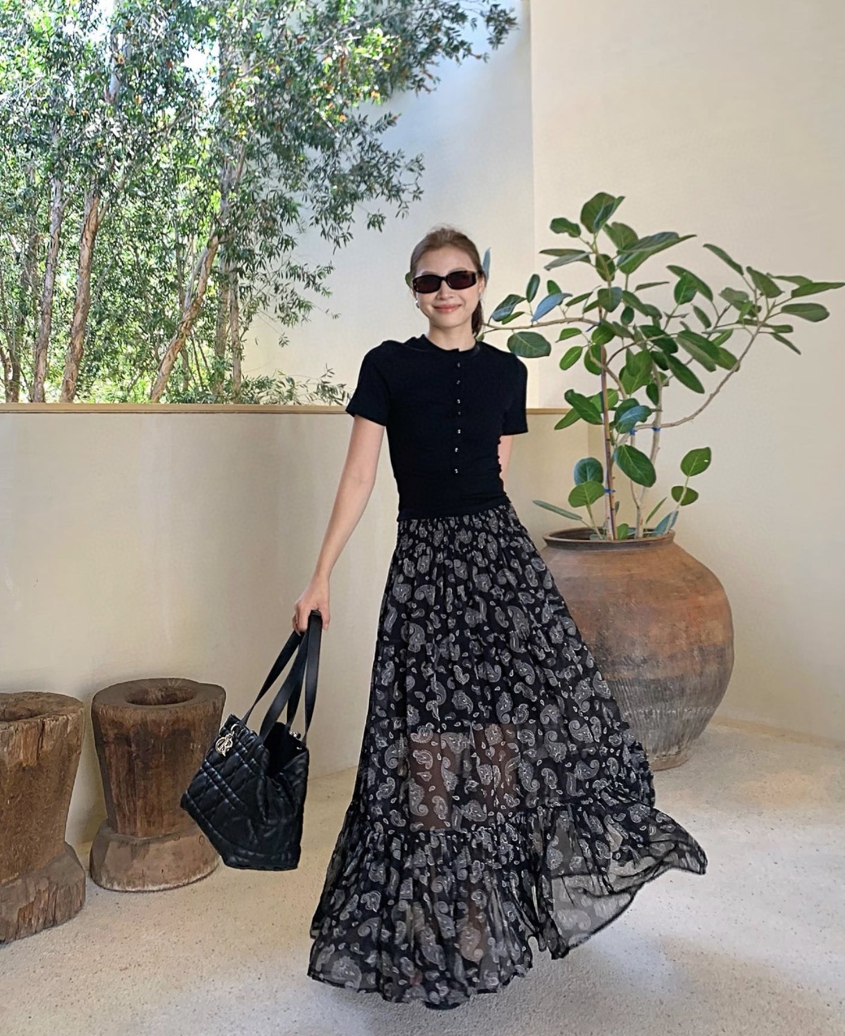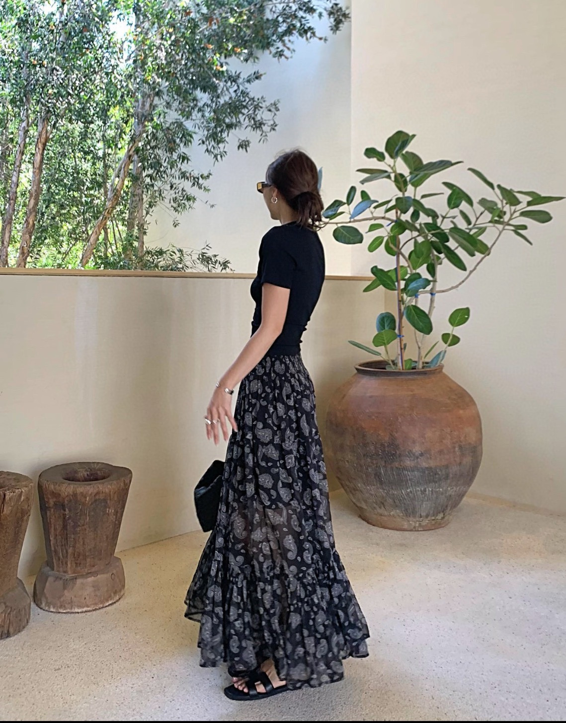【樱西玛ENXIMANE 腰果花度假风雪纺裙】法式印花半裙 四层拼接 显瘦窄胯