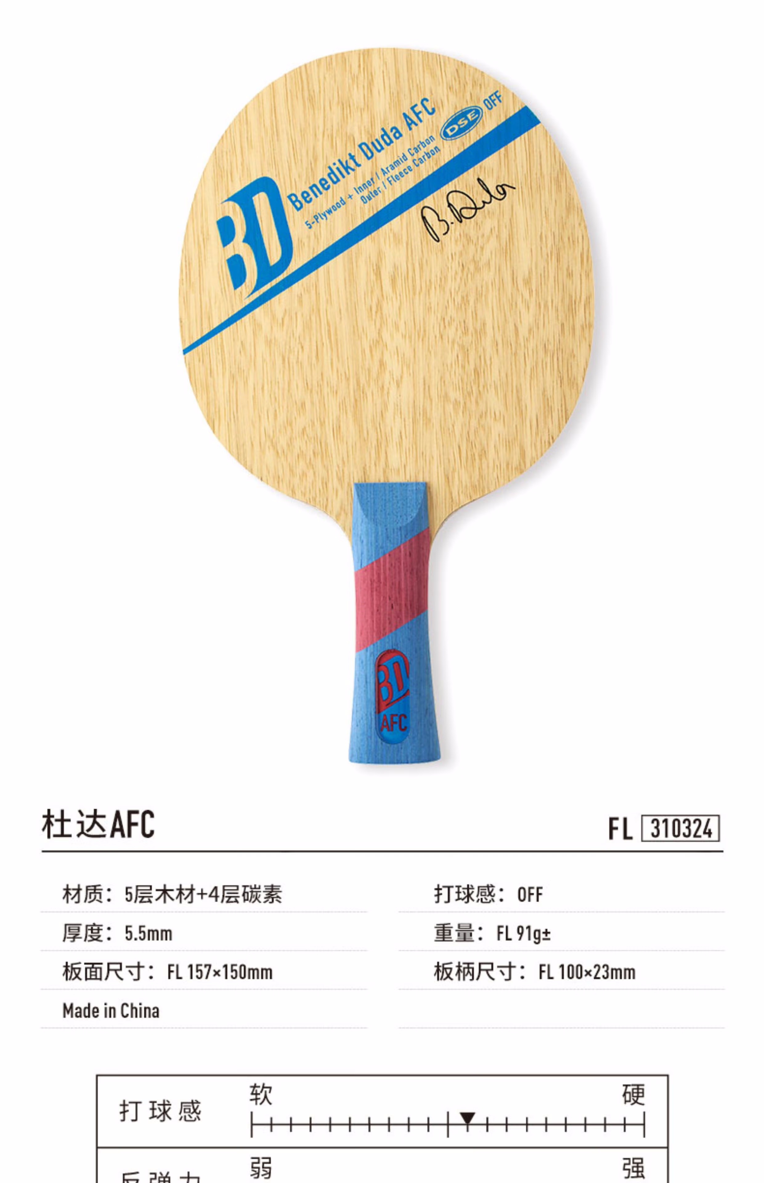Victas维克塔斯杜达AFC专业乒乓球拍底板310324杜达同款5+4碳素进攻型底板