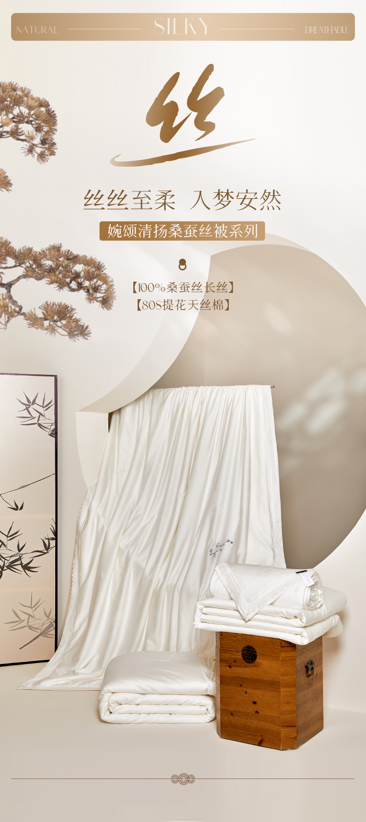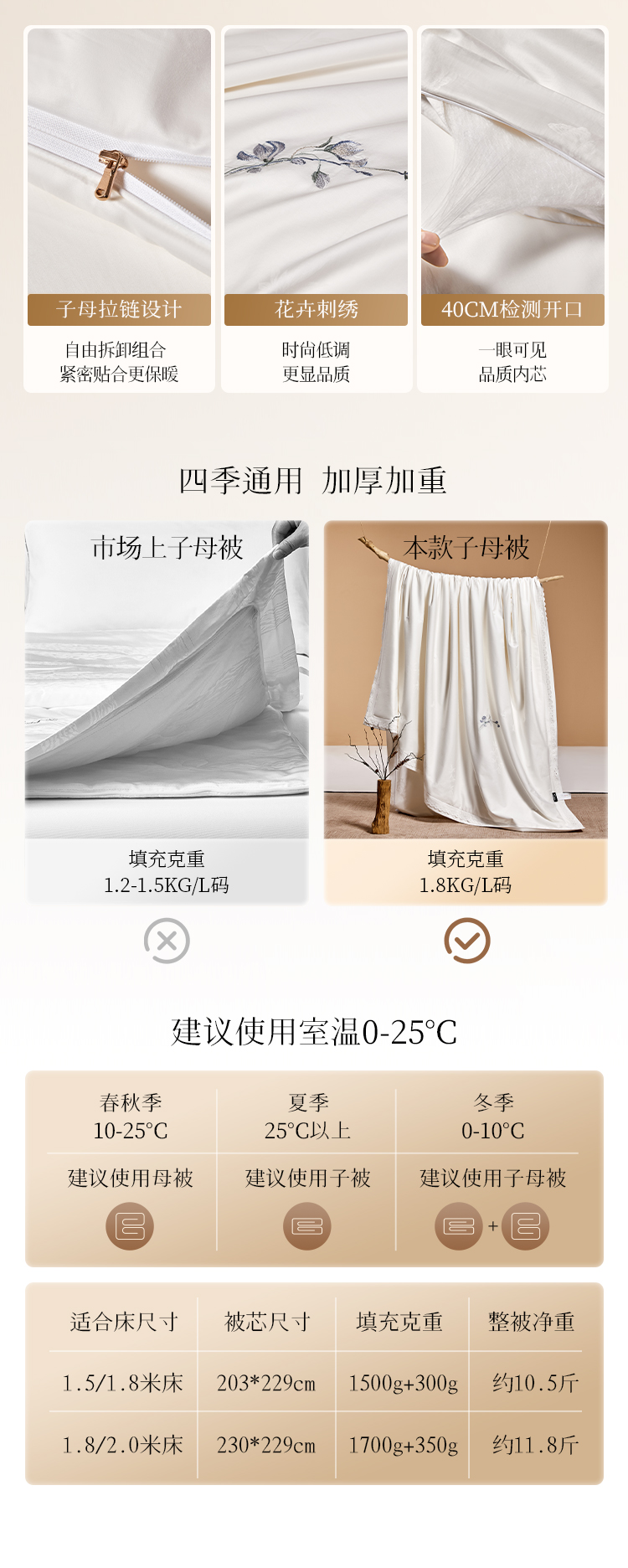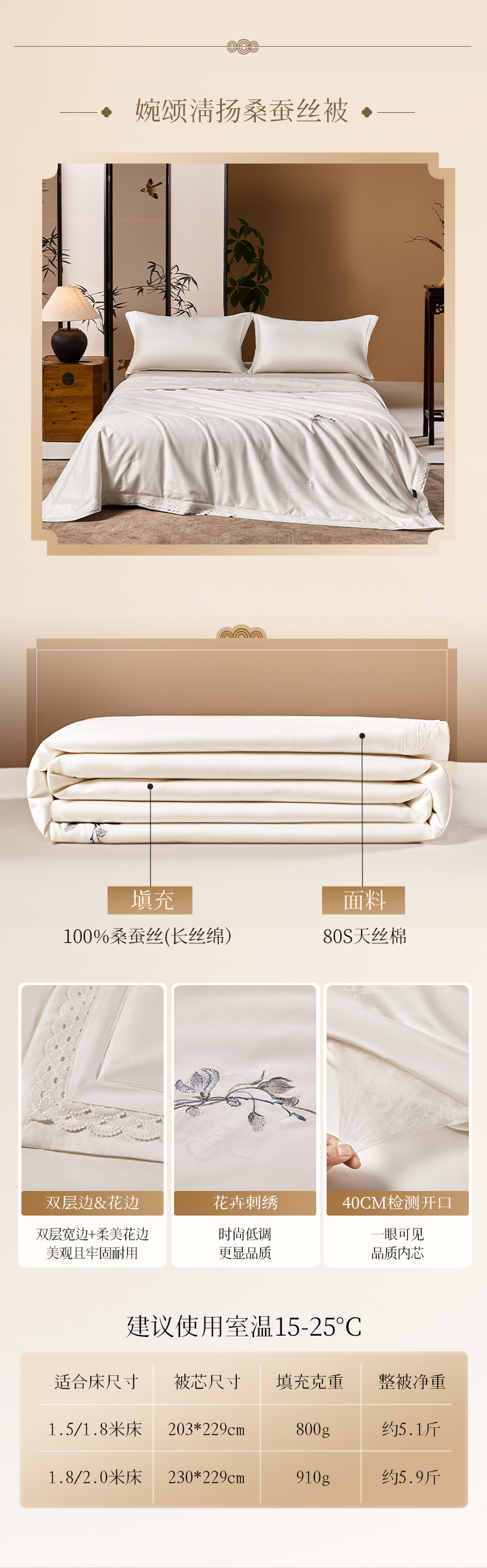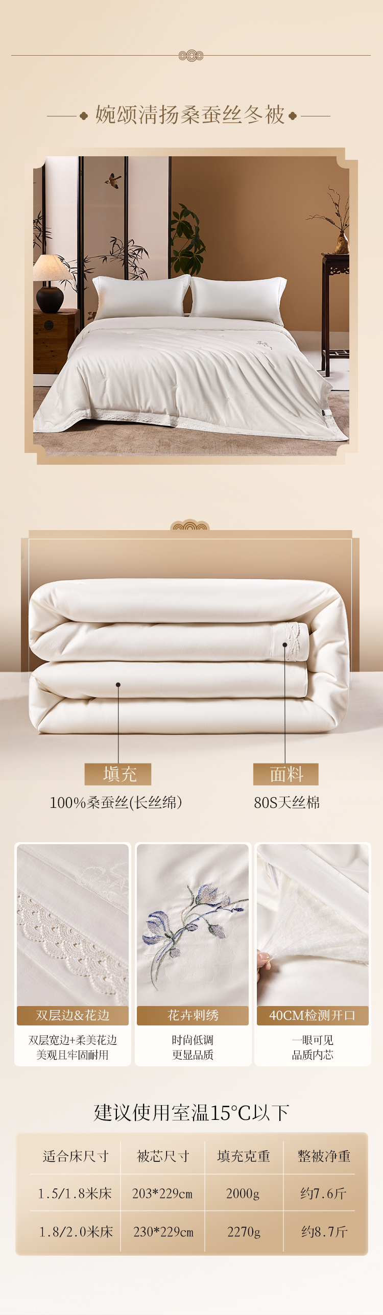 多喜爱 婉颂清扬桑蚕丝被/冬被/子母被【100%桑蚕丝长丝】【80S提花天丝棉】【内外双A品质】【缎纹大提花工艺】【双层边&花边】【40CM检测开口】【皮箱包装】巴马桑蚕长丝 双宫茧丝 千米长丝