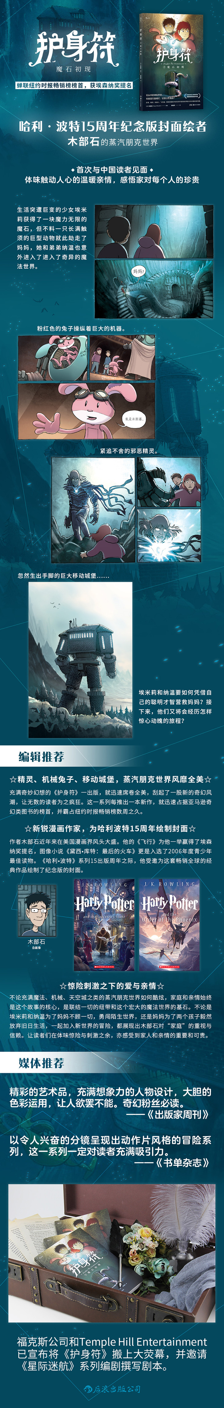 《护身符》中,木部石为青少年读者们打造了一个绮丽美妙的异想世界,这个世界中魔法与机械巧妙结合,让人感受到别样的美和震撼。而故事中,埃米莉和弟弟为了营救妈妈不惜突破艰难险阻,鼓起勇气一往直前,更让读者体味到家和家人对于每个人的珍贵之处,感受到家庭给人带来的力量和支持。