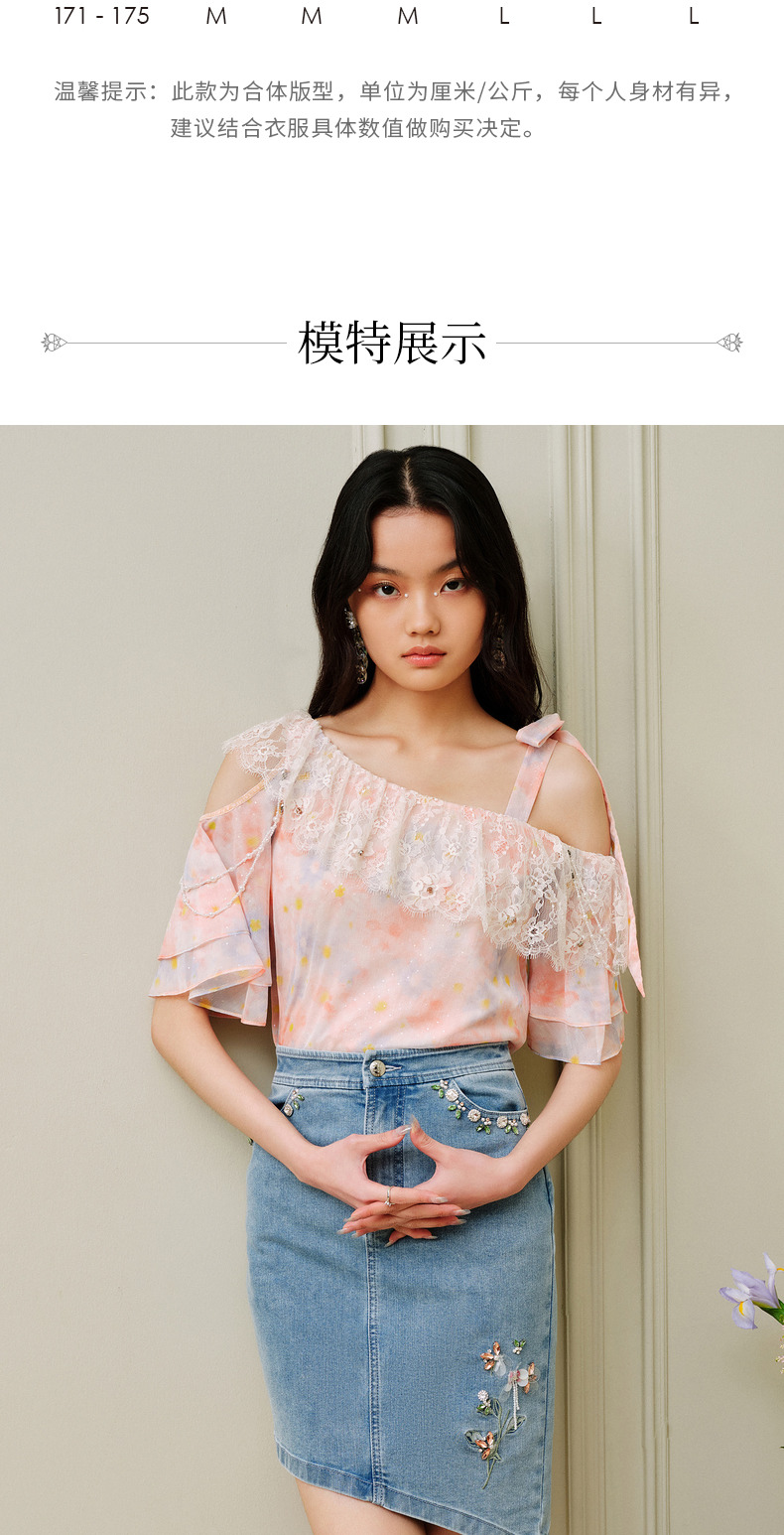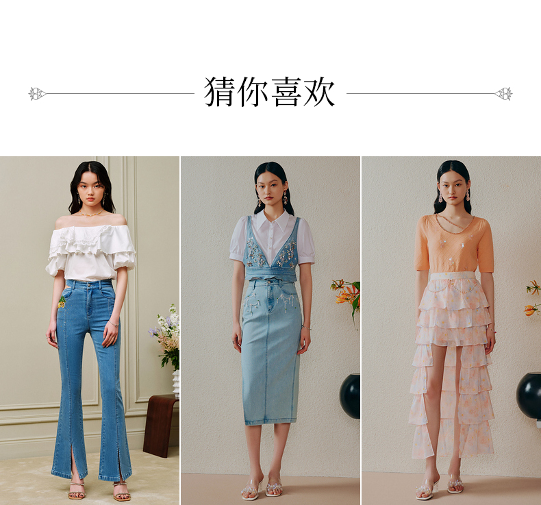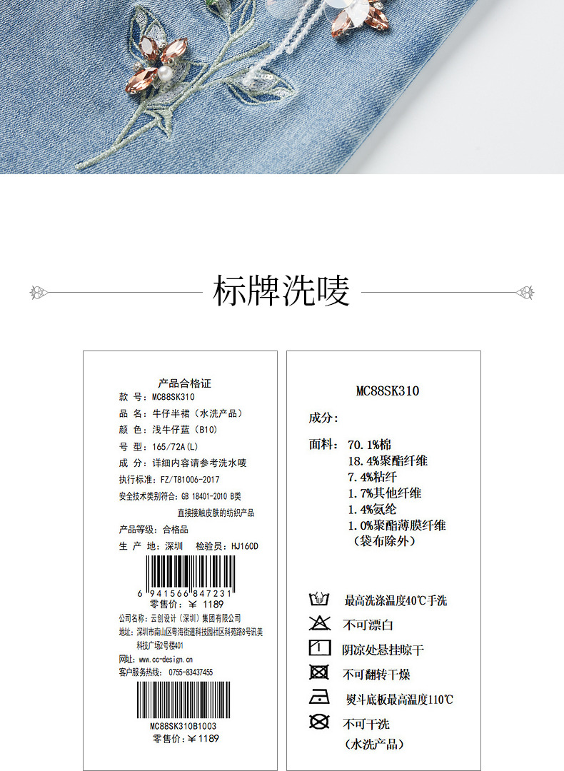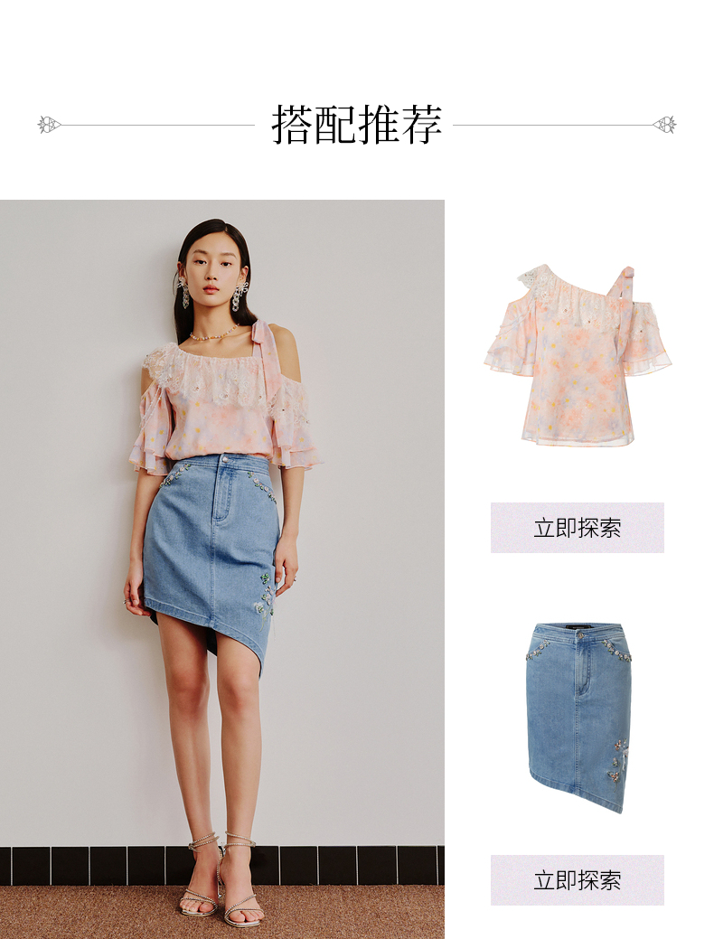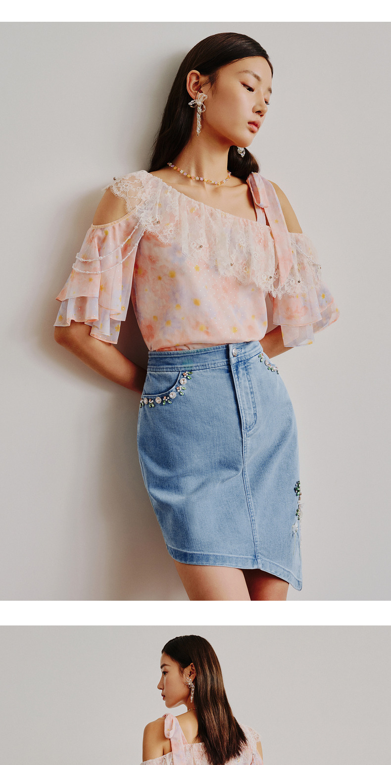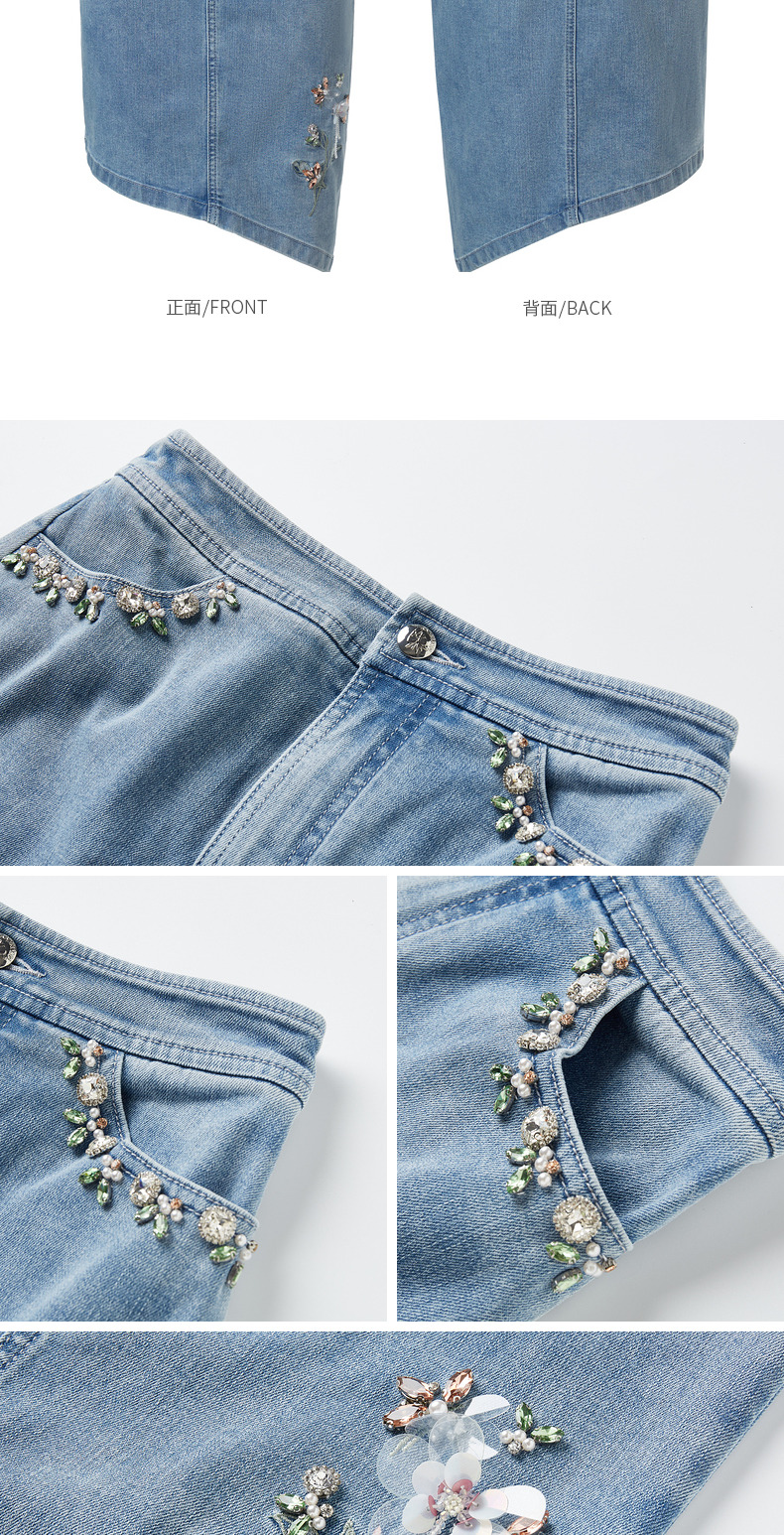 MAXRIENY不规则下摆牛仔短裙高腰廓形钉钻半身裙(货号:MC88SK310)