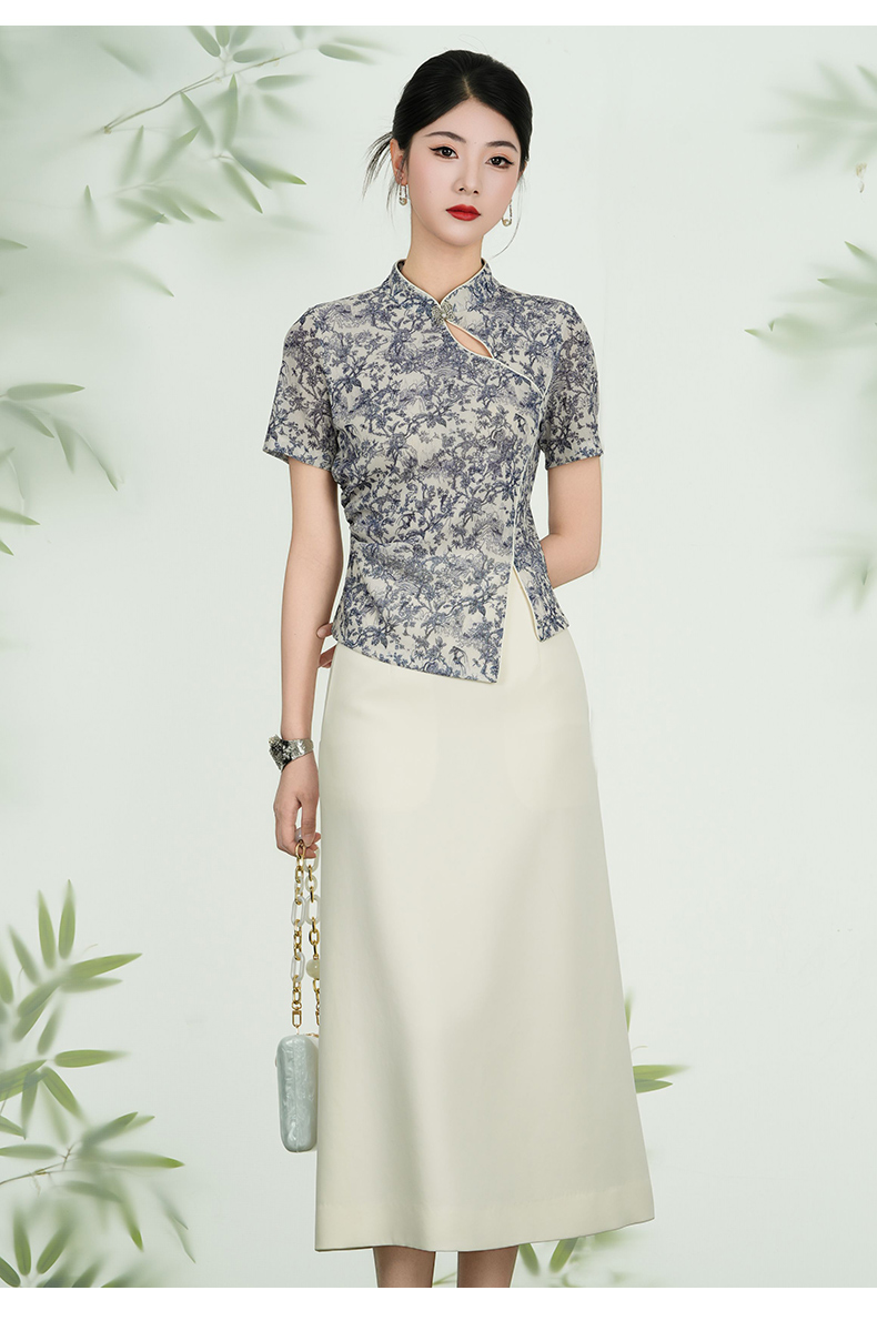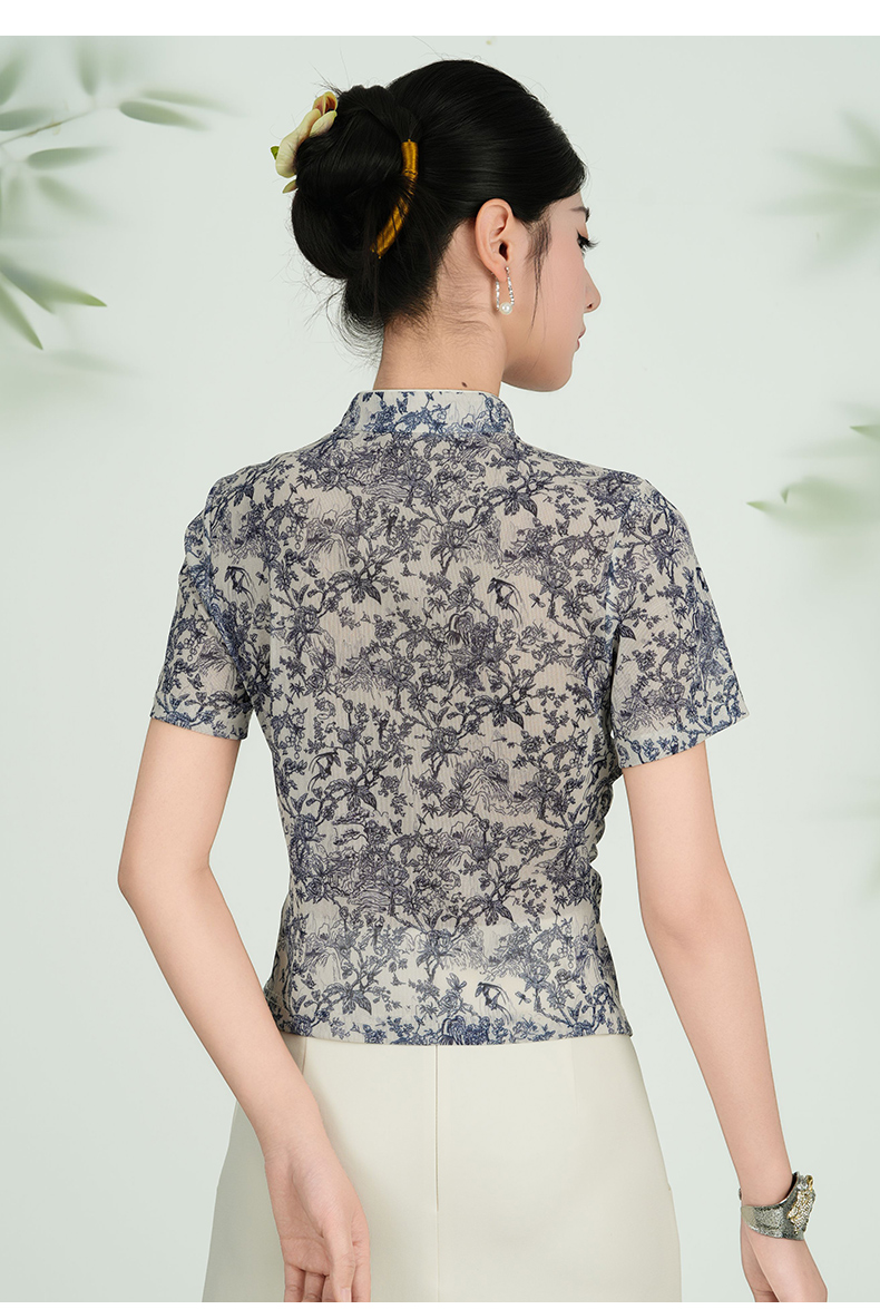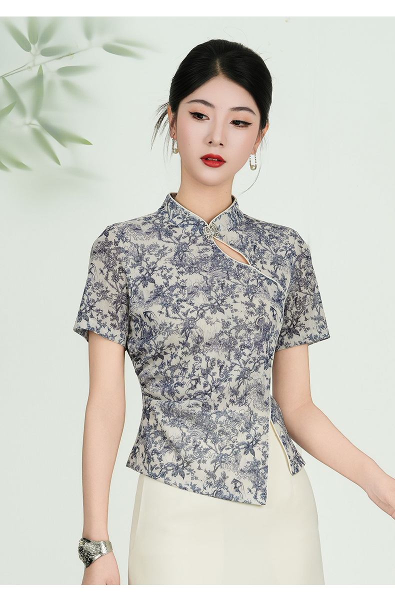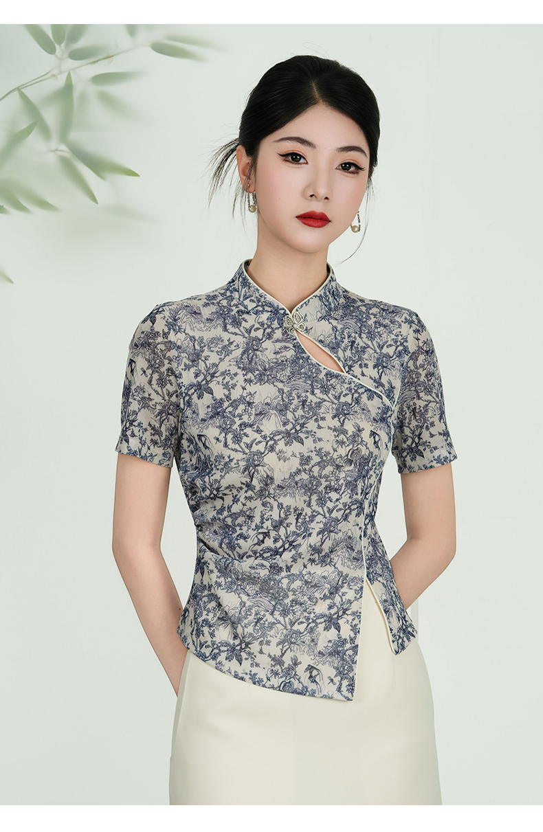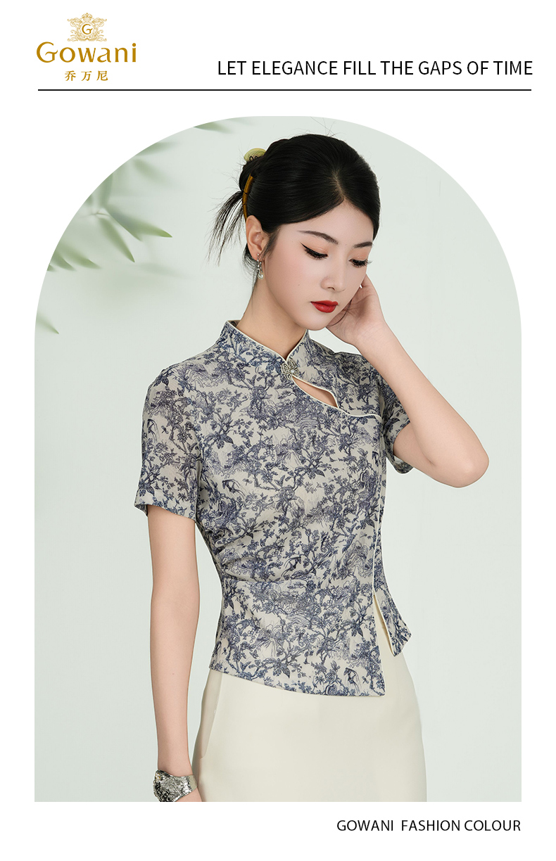 乔万尼新品2025水墨风旗袍领不规则设计新中式上衣ED2C558