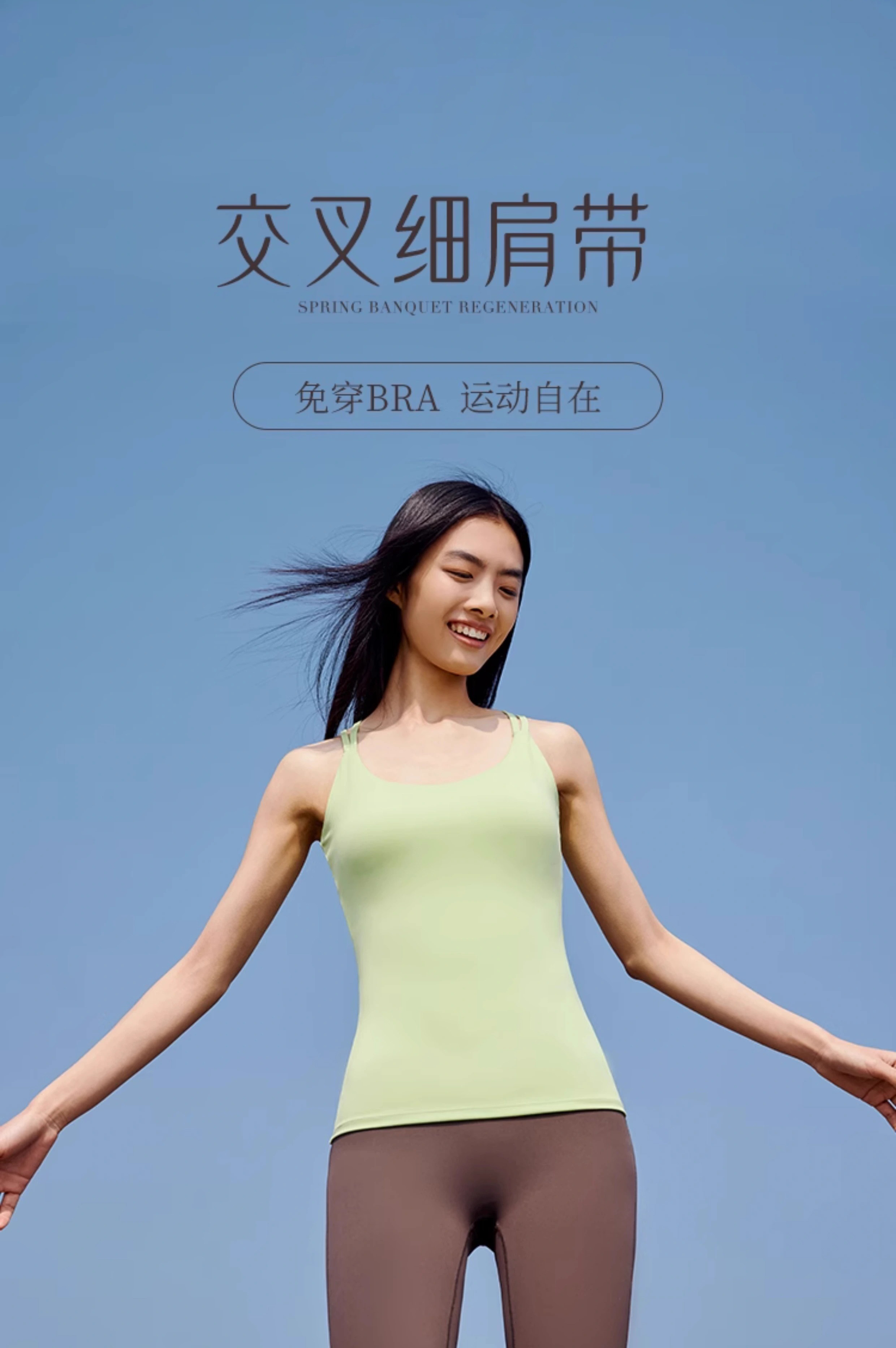 跃牌【欲动春风】系列 瑜伽服背心女长款带胸垫防震跑步健身背心32150