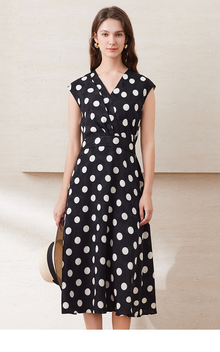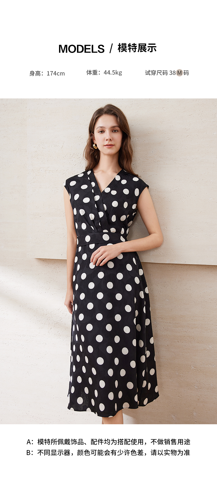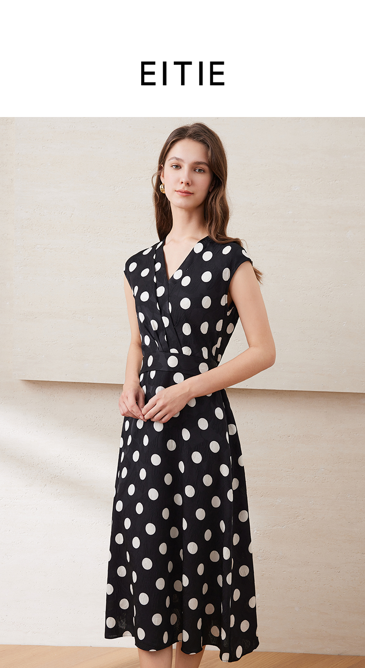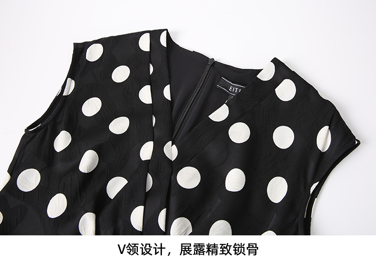 EITIE爱特爱时尚复古撞色波点V领收腰显瘦无袖连衣裙2025夏季新款B2507624