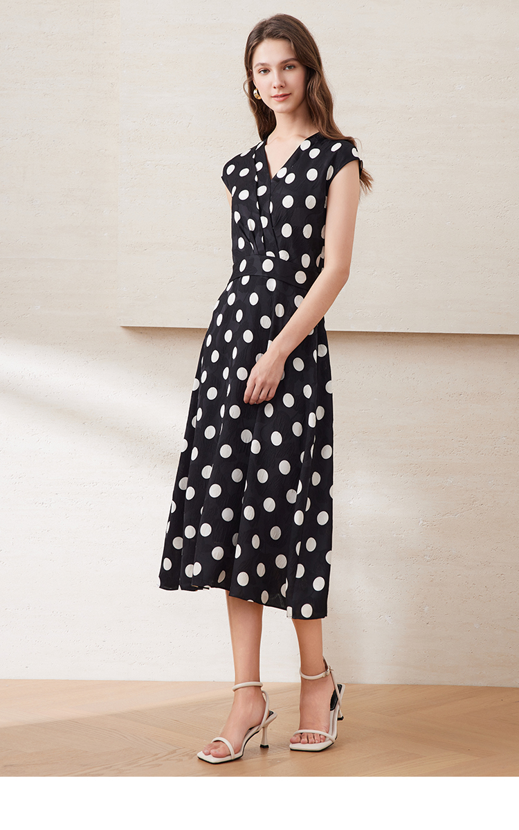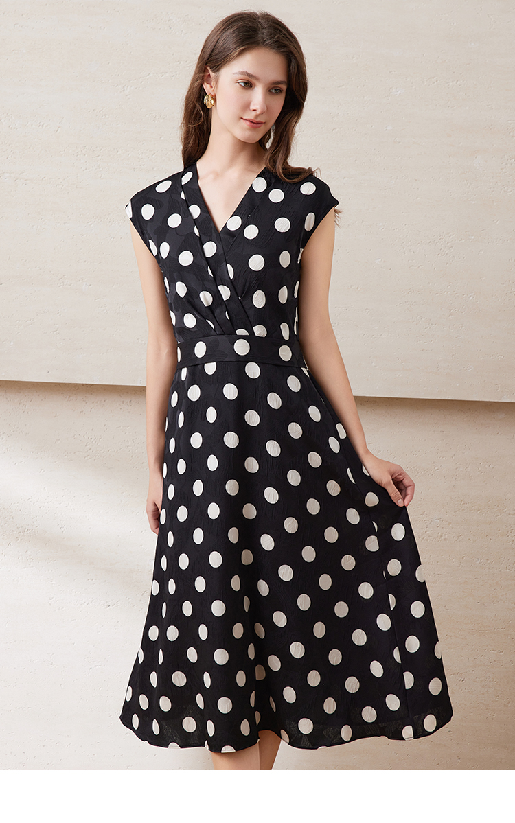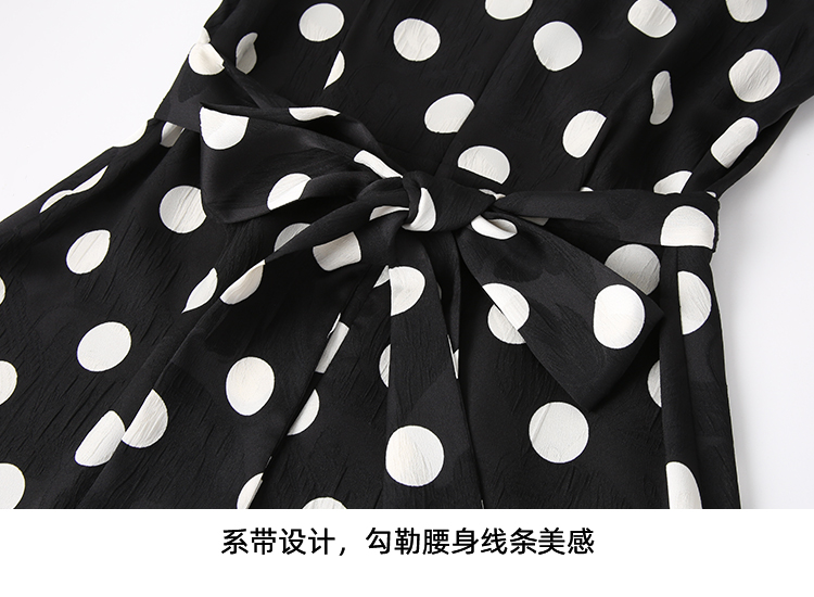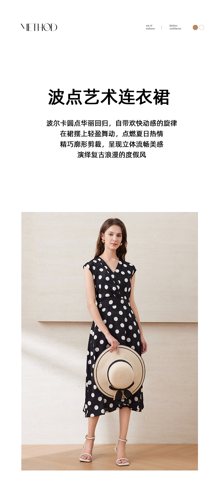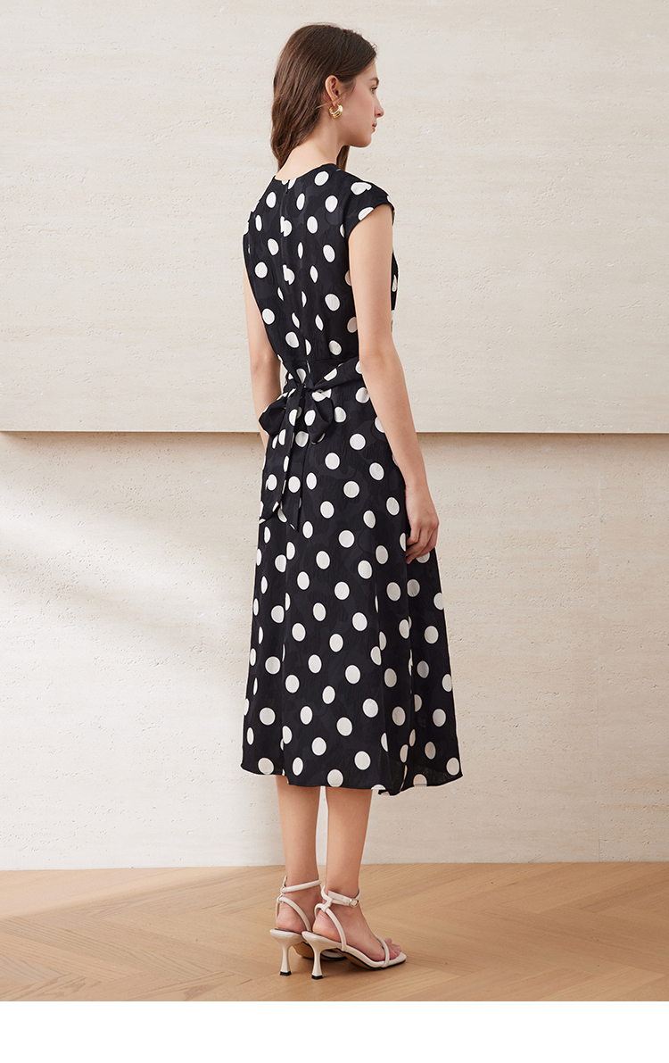 EITIE爱特爱时尚复古撞色波点V领收腰显瘦无袖连衣裙2025夏季新款B2507624