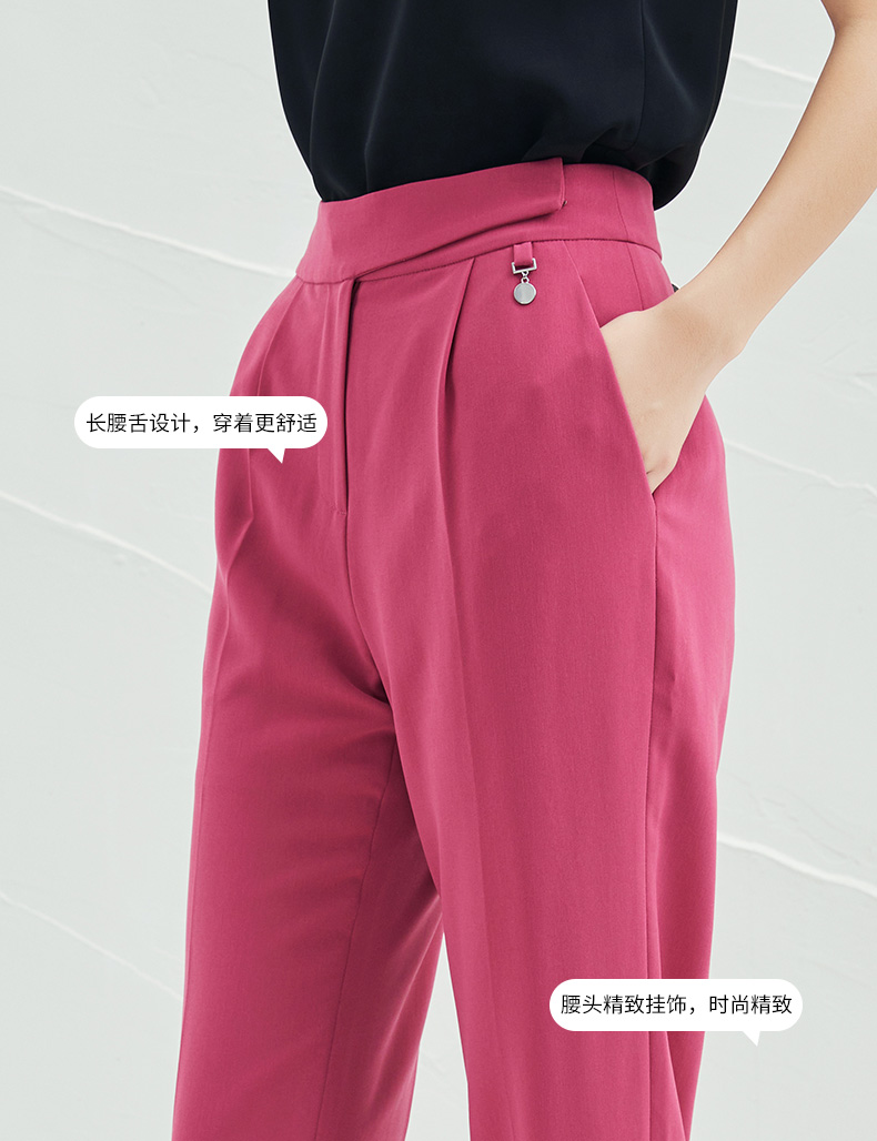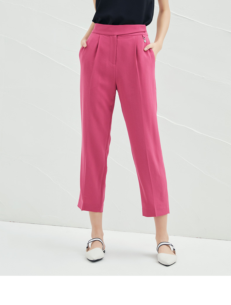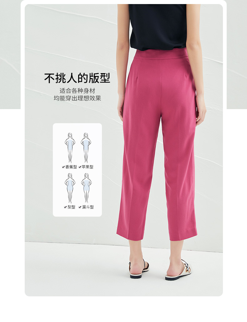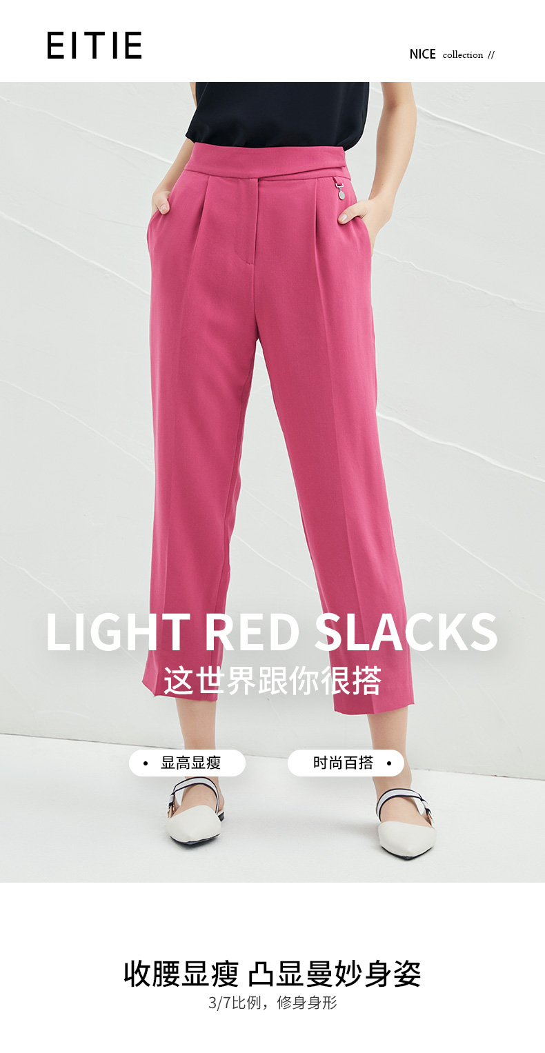 EITIE爱特爱春夏新款女装修身高腰直筒裤子小脚裤休闲6505210