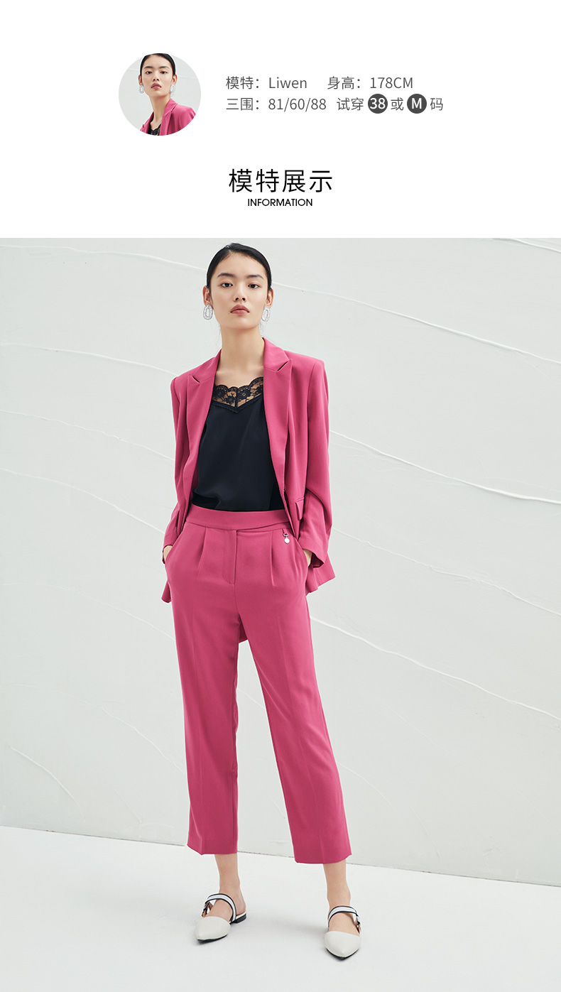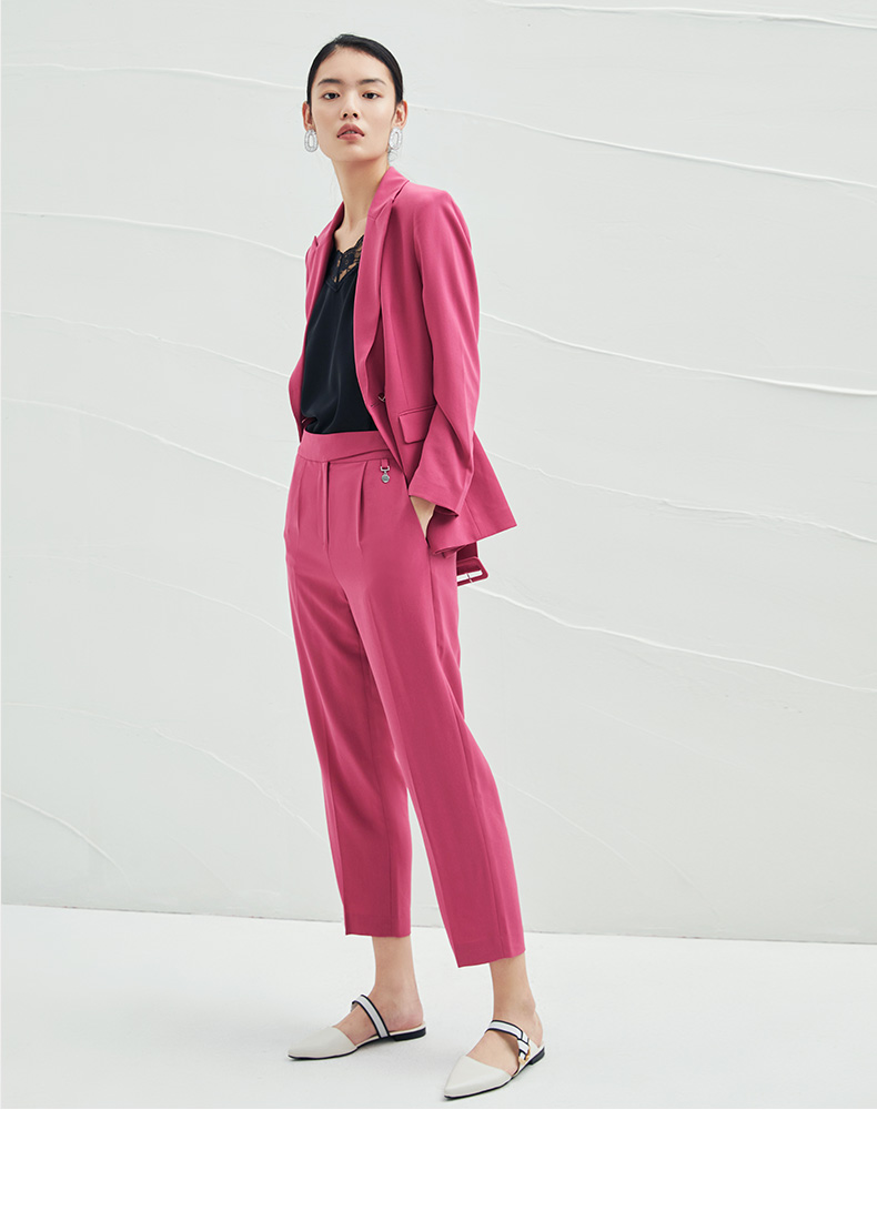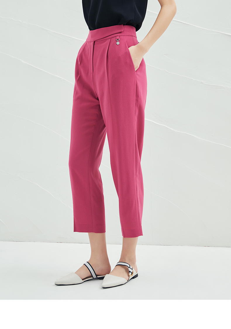 EITIE爱特爱春夏新款女装修身高腰直筒裤子小脚裤休闲6505210