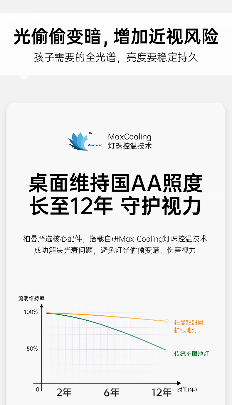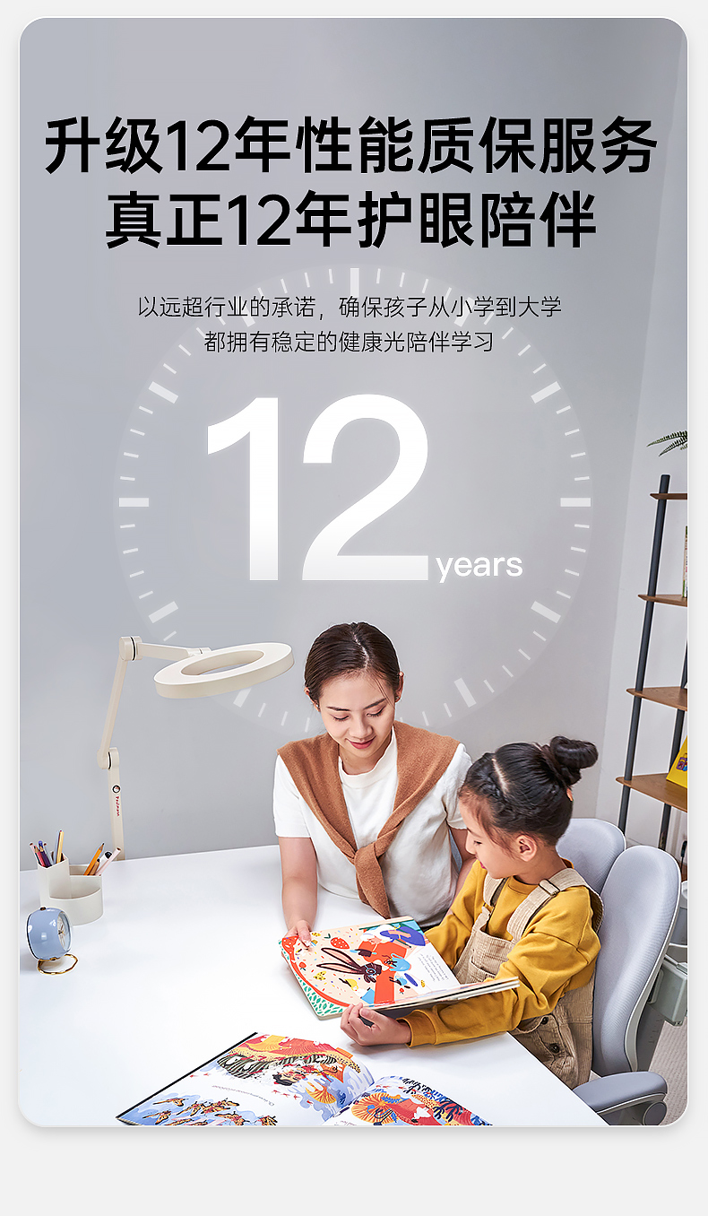 12年性能质保,1 年内性能问题包换。(充电产品2年,灯泡5年,护眼台地灯12年)