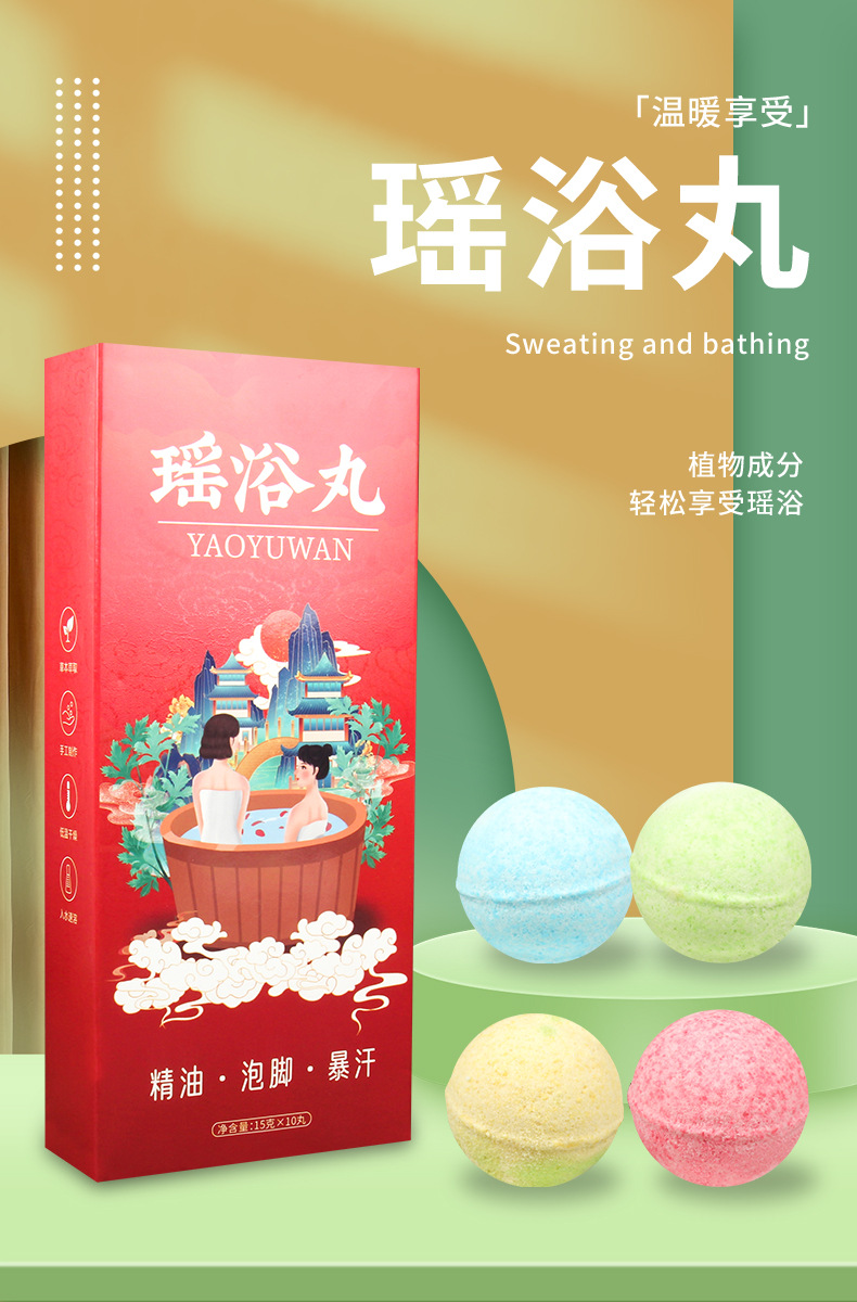 【超值三盒!温暖享受】暴汗足浴丸 速溶瑶浴丸 彩色速溶泡泡球 泡澡泡脚丸 15g*10粒/盒