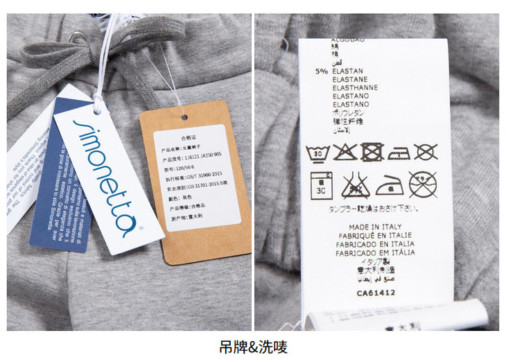 SIMONETTA 西莫内塔 女童灰色抽绳混纺休闲长裤 4-12岁