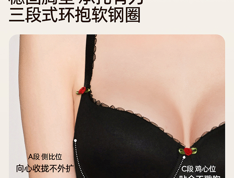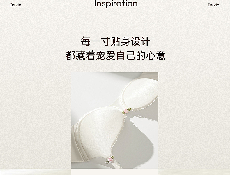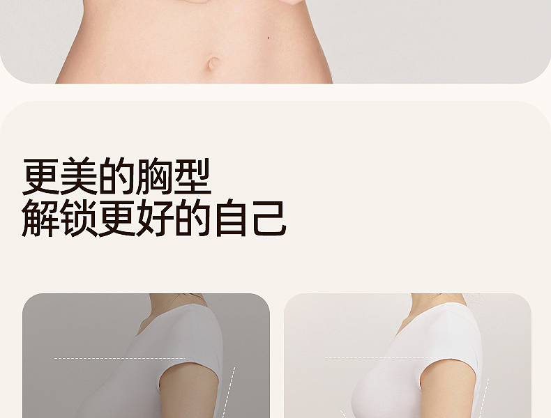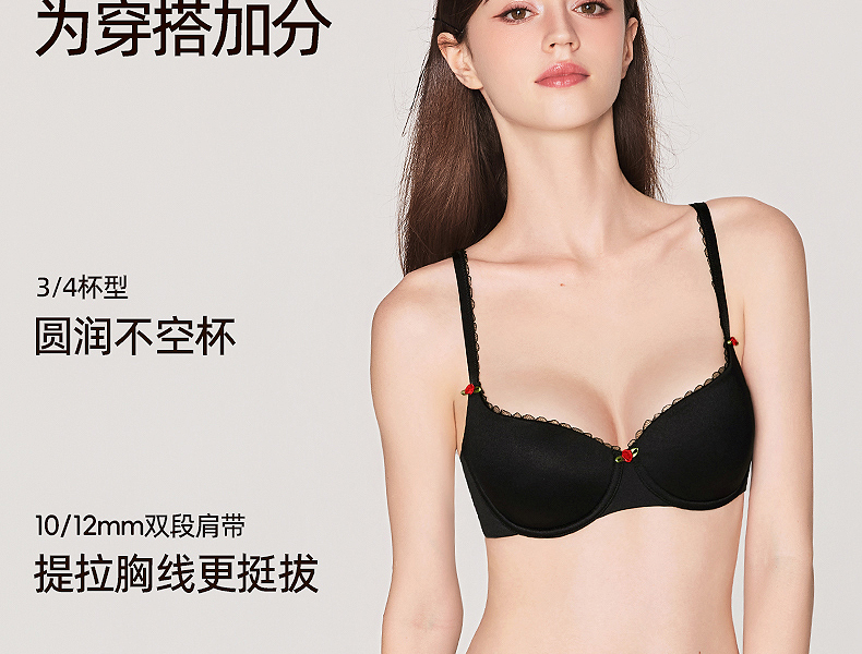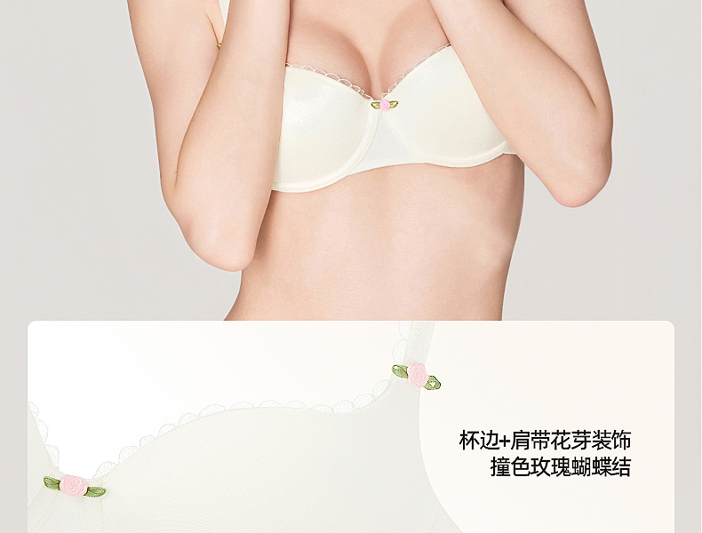 好奇蜜斯无痕内衣女大胸显小胸不空杯超薄防下垂舒适文胸罩套装白 奈可