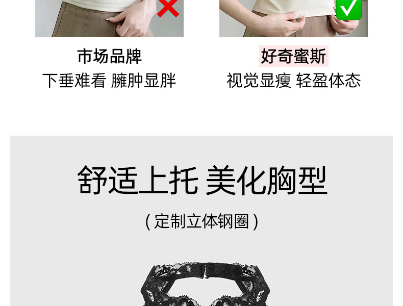 好奇蜜斯性感内衣女小胸纯欲蕾丝文胸罩套装大胸显小可外穿防下垂 莫拉