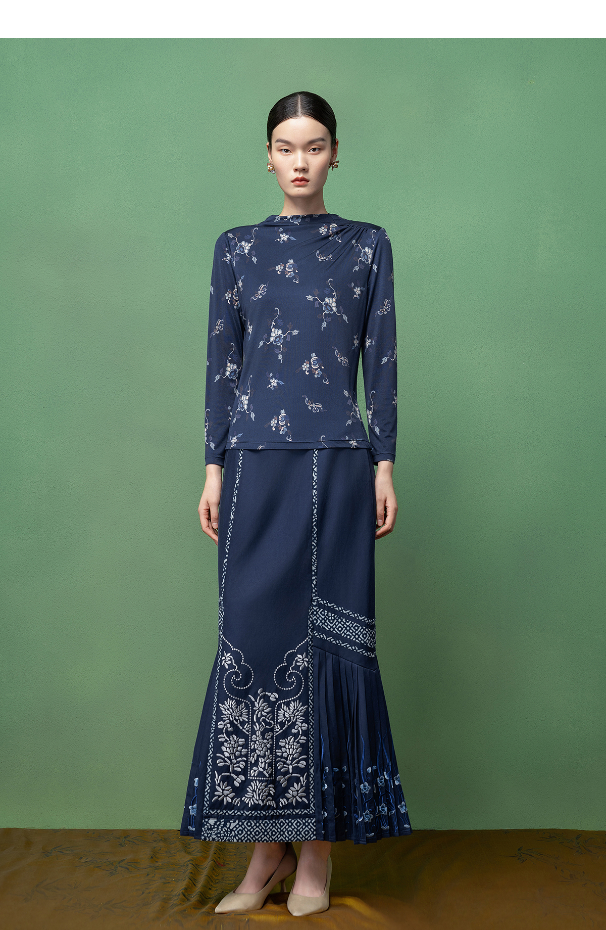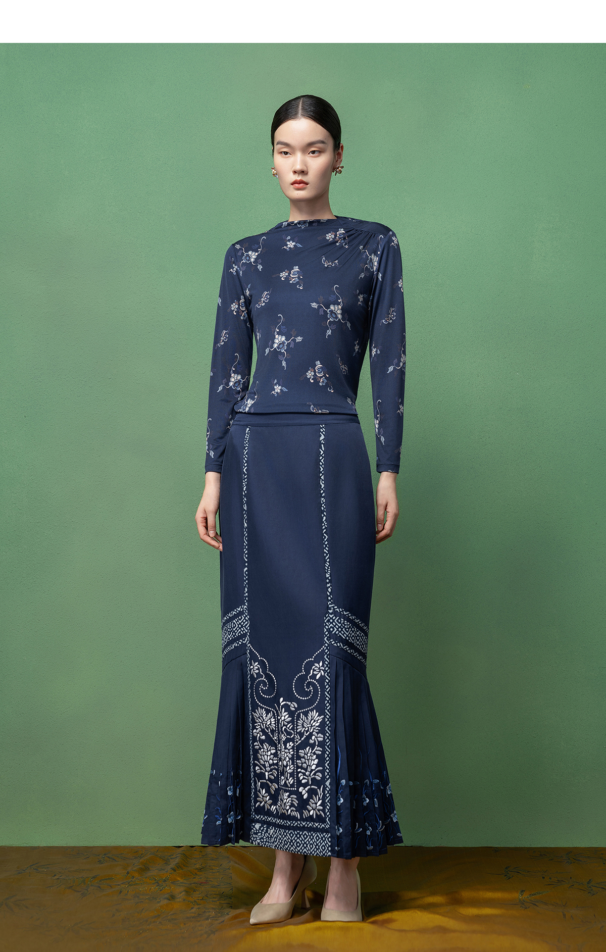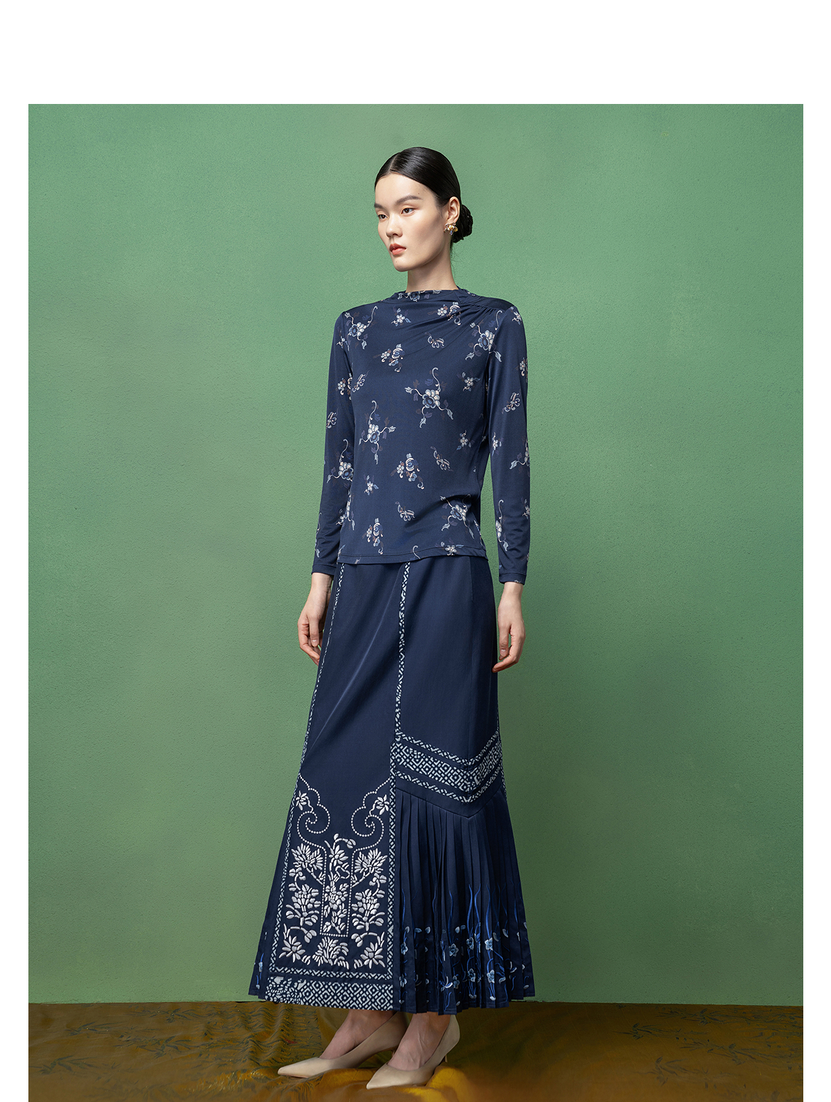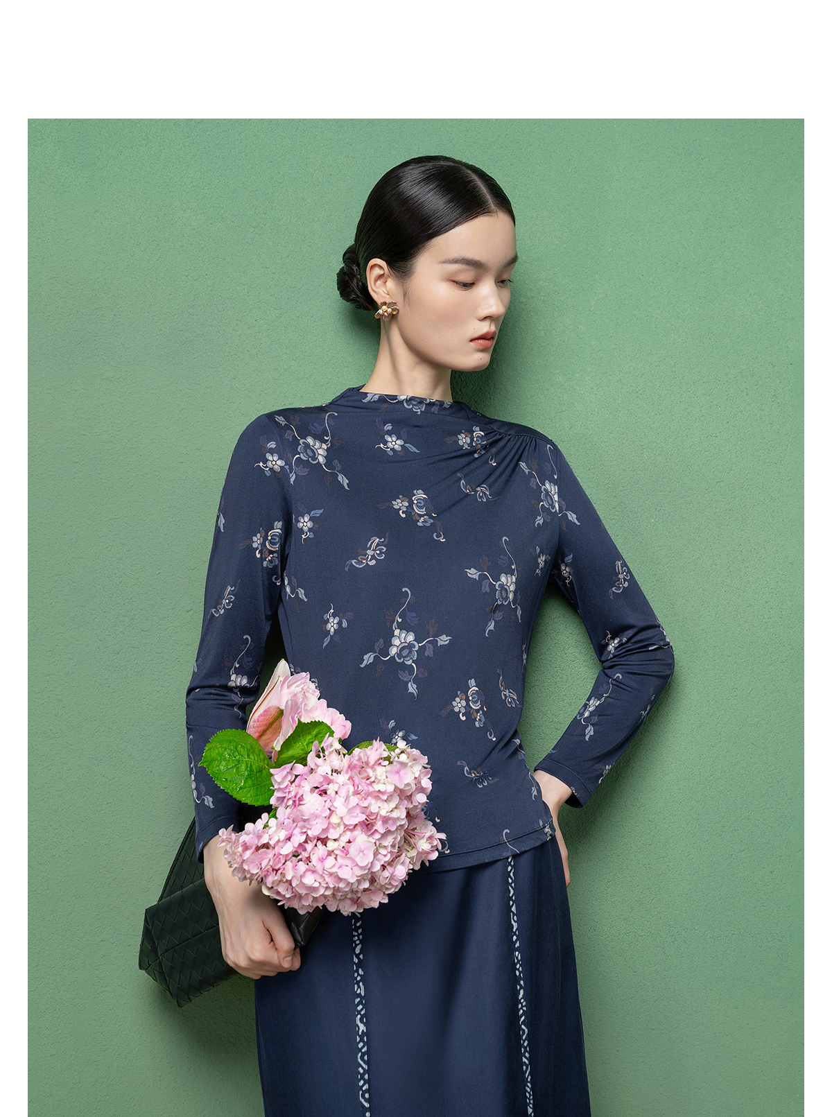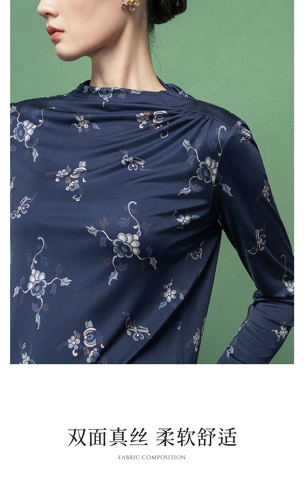 【林栖设计小店】桑蚕丝T恤传统印花2026早春新款修身上衣女1961165