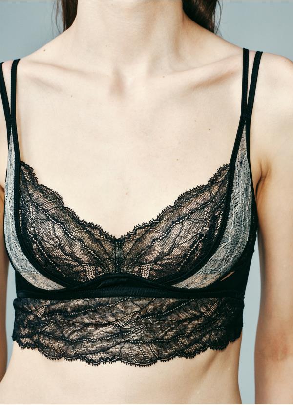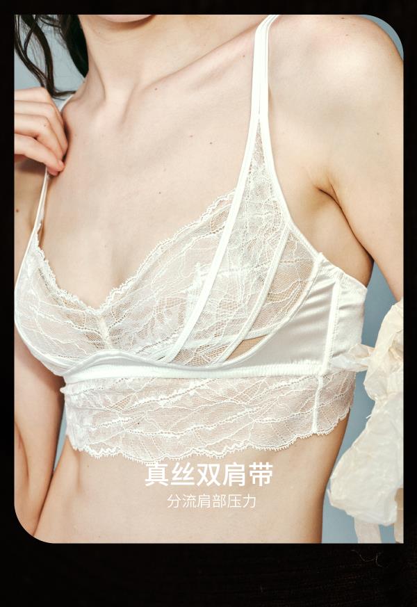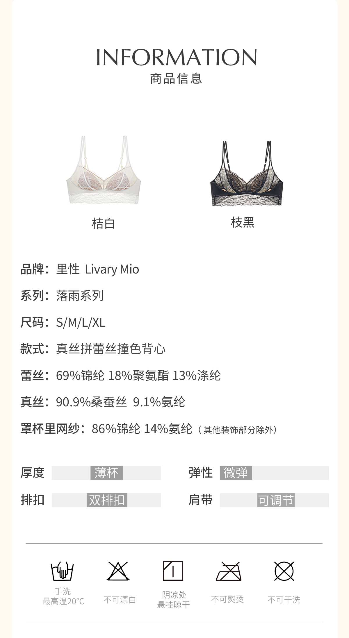 里性 LIVARY MIO 落雨-Raining 真丝文胸拼蕾丝撞色无钢圈内衣背心