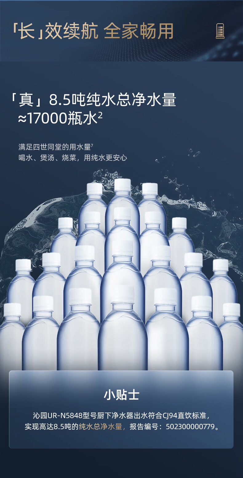 沁园(TRULIVA)UR-N5848月泽系列 800G无罐大通量 5年长效RO膜精滤 WIFI智联厨下净水器ZMD