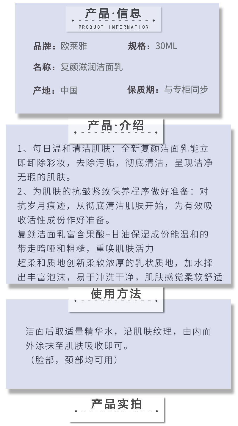 【爆款超低价预售 急单慎拍】欧莱雅复颜滋润洁面乳30ml 温和氨基酸洁净无暇泡沫洗面奶小样