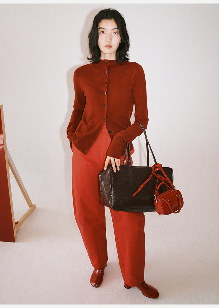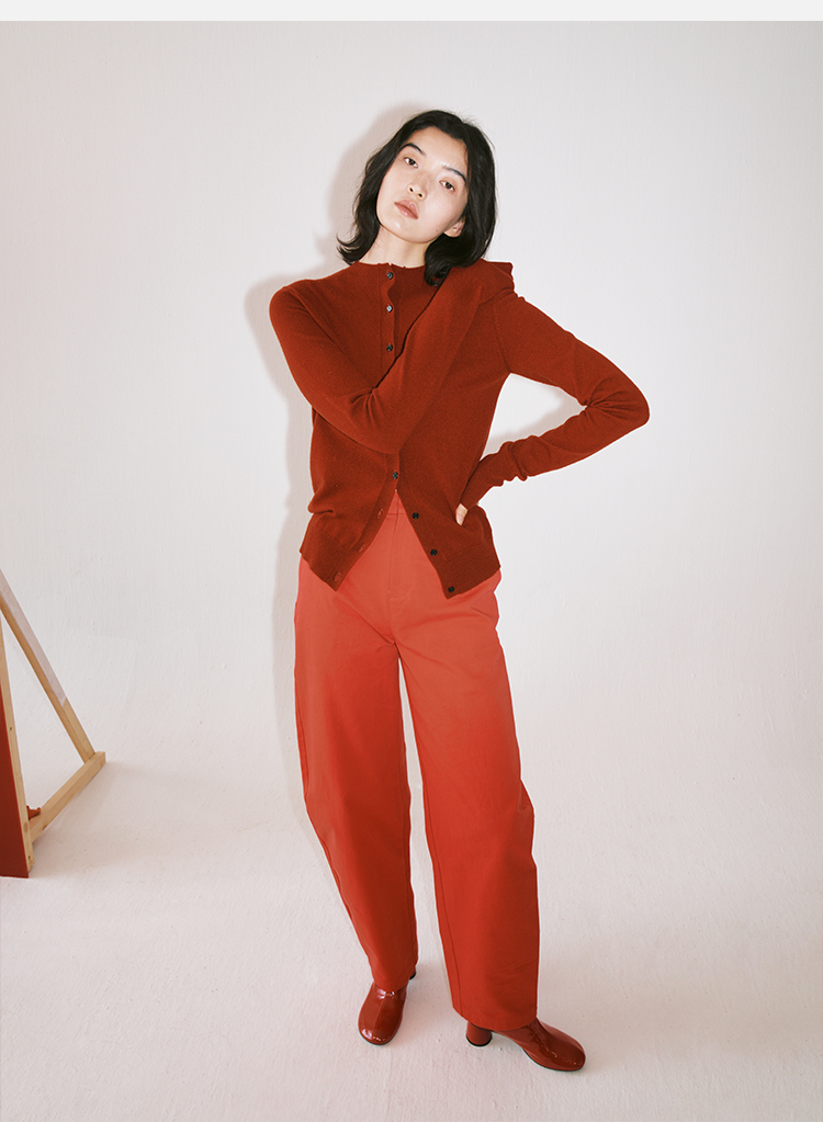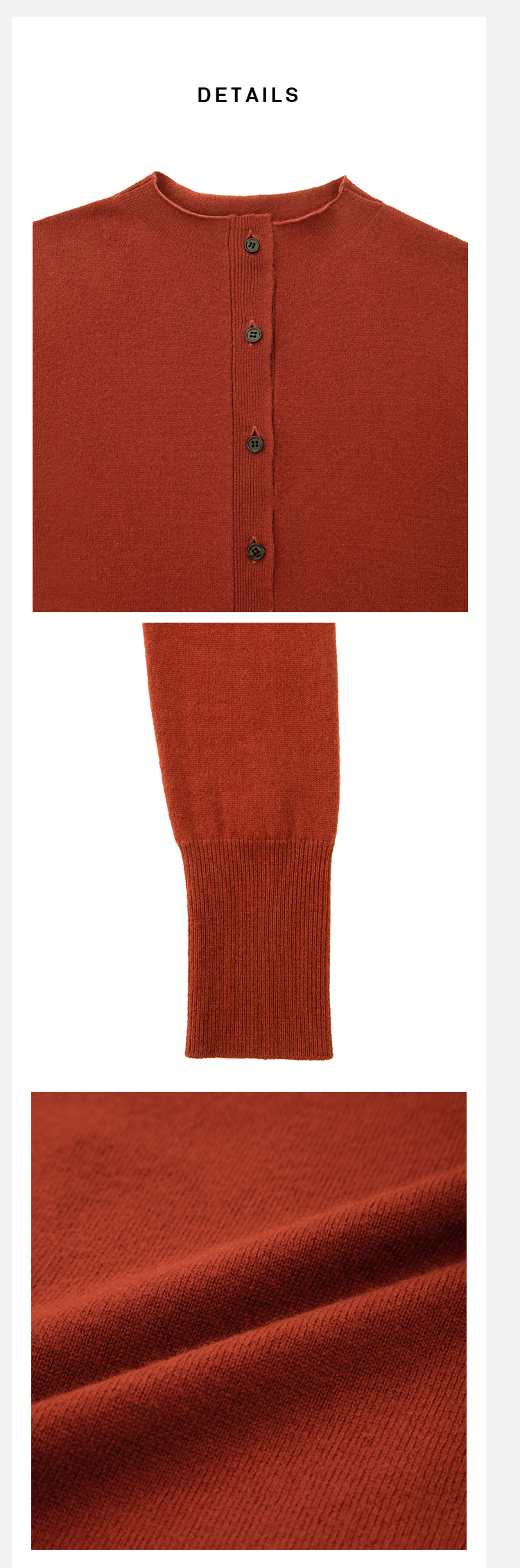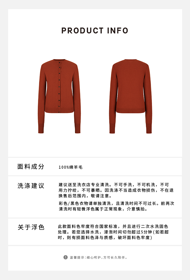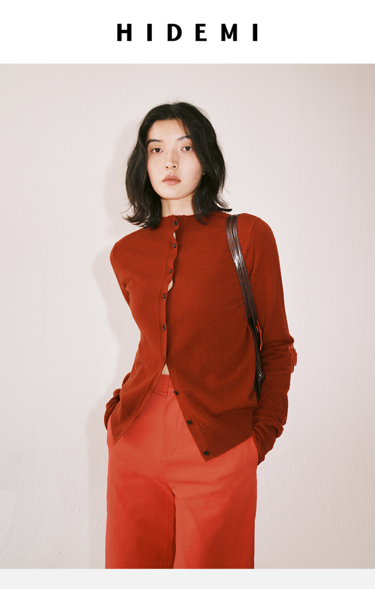 HIDEMI 节日系列车厘子红美利奴羊毛纽扣小立领针织开衫毛衣