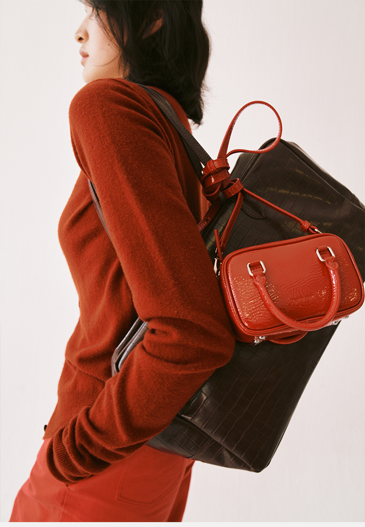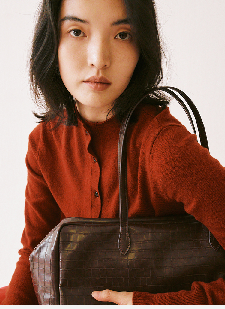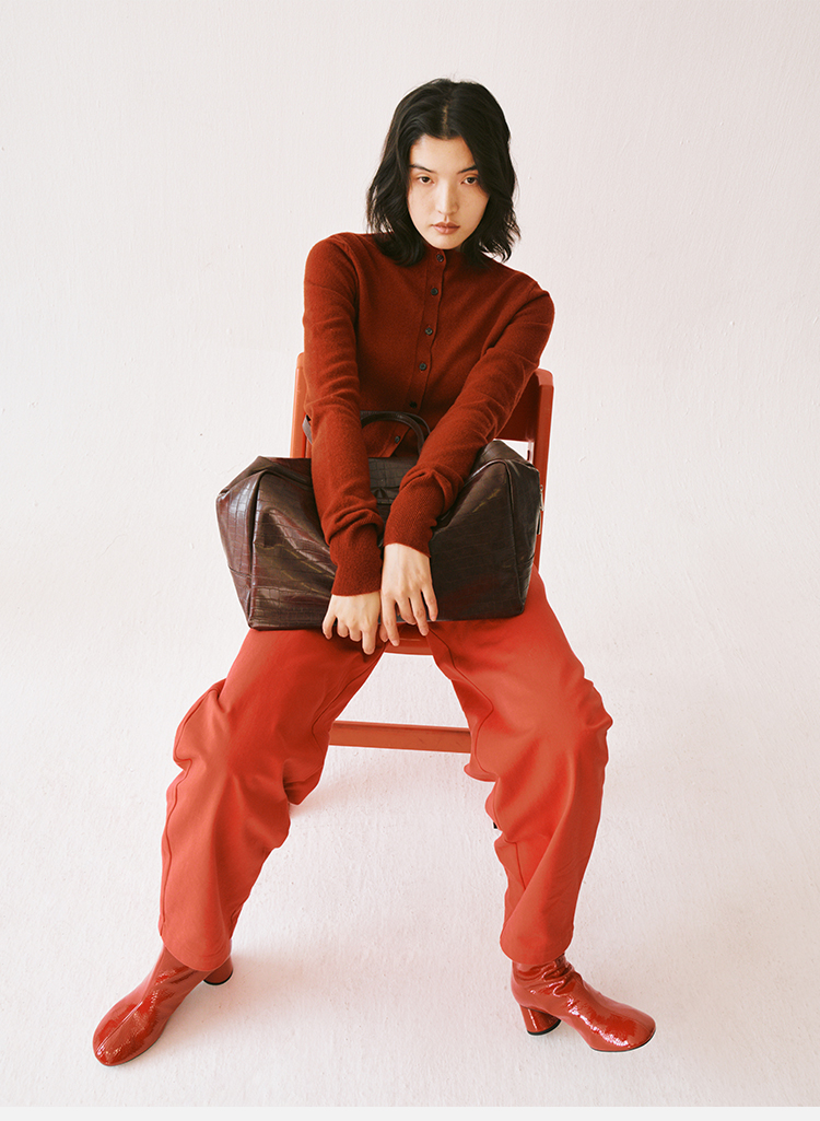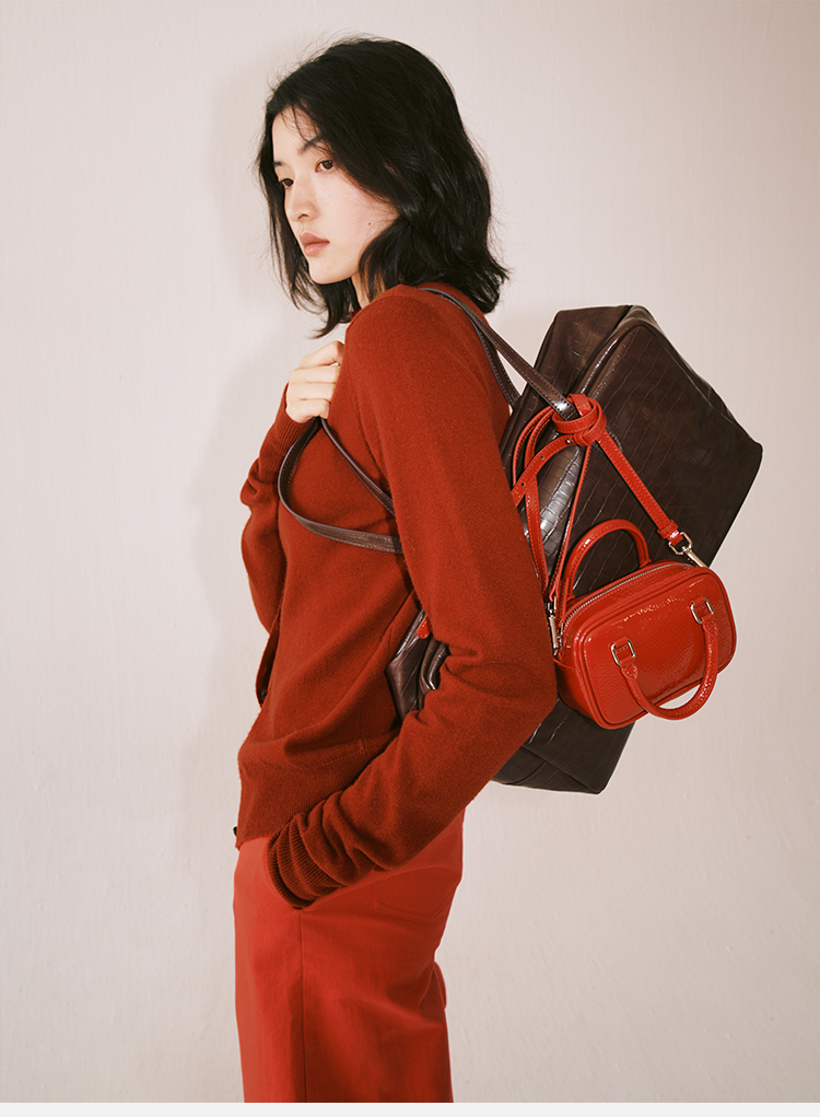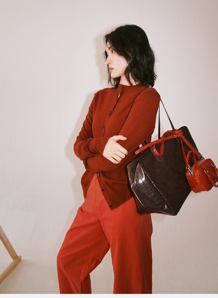 HIDEMI 节日系列车厘子红美利奴羊毛纽扣小立领针织开衫毛衣