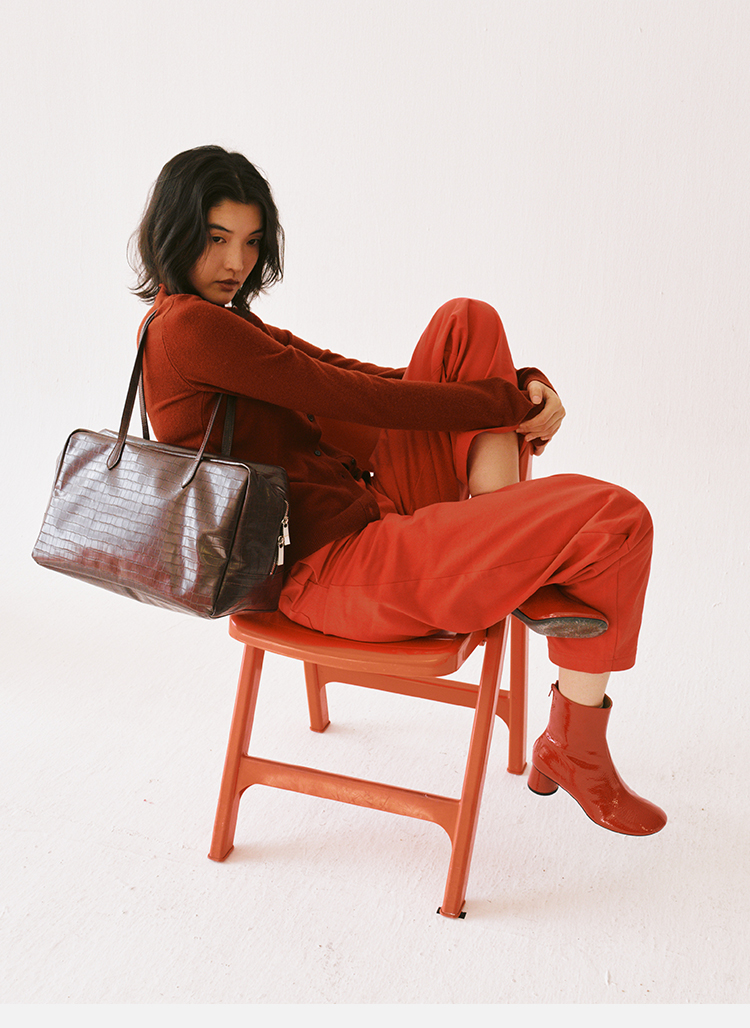 HIDEMI 纸片人超显瘦针织套装 高领背心/喇叭裤
