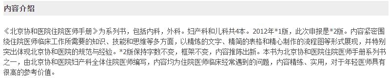 书名:北京协和医院妇产科住院医师手册 第2版