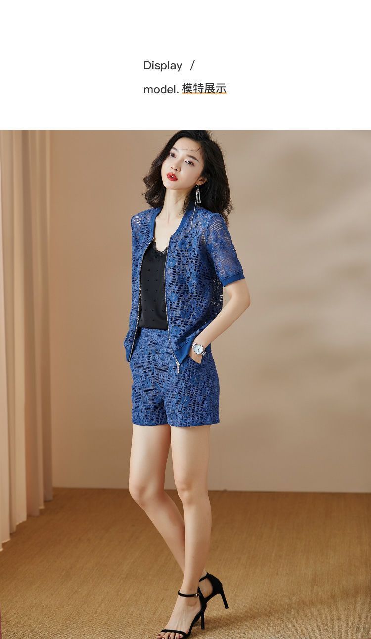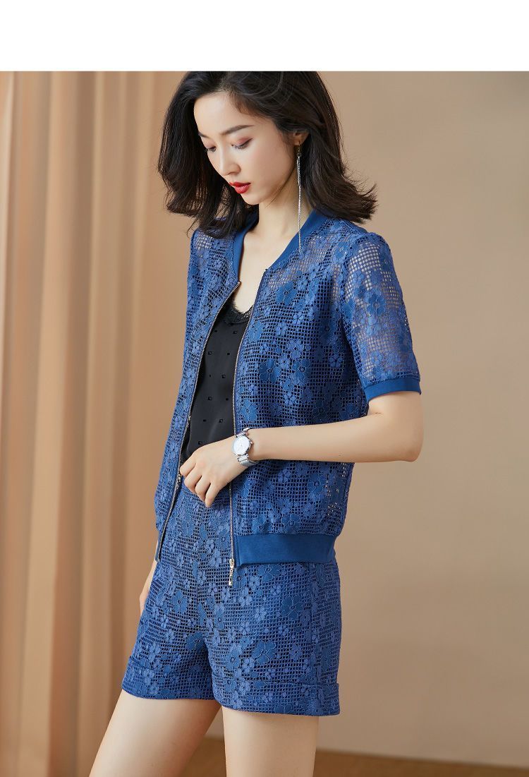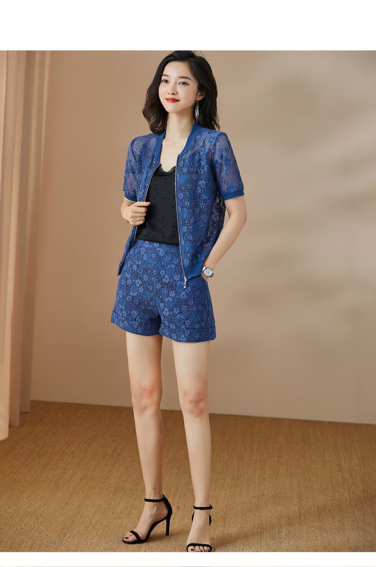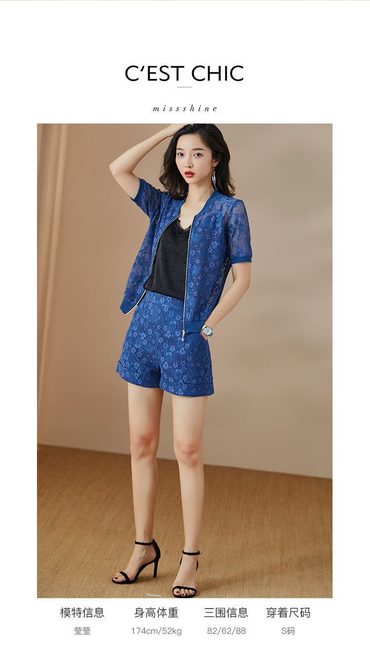 米思阳夏季休闲款优雅时尚修身显瘦蕾丝阔腿短裤女1356