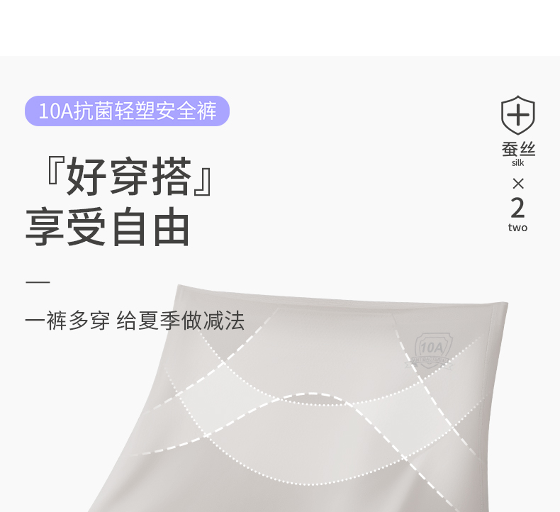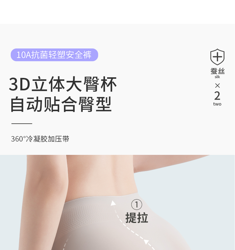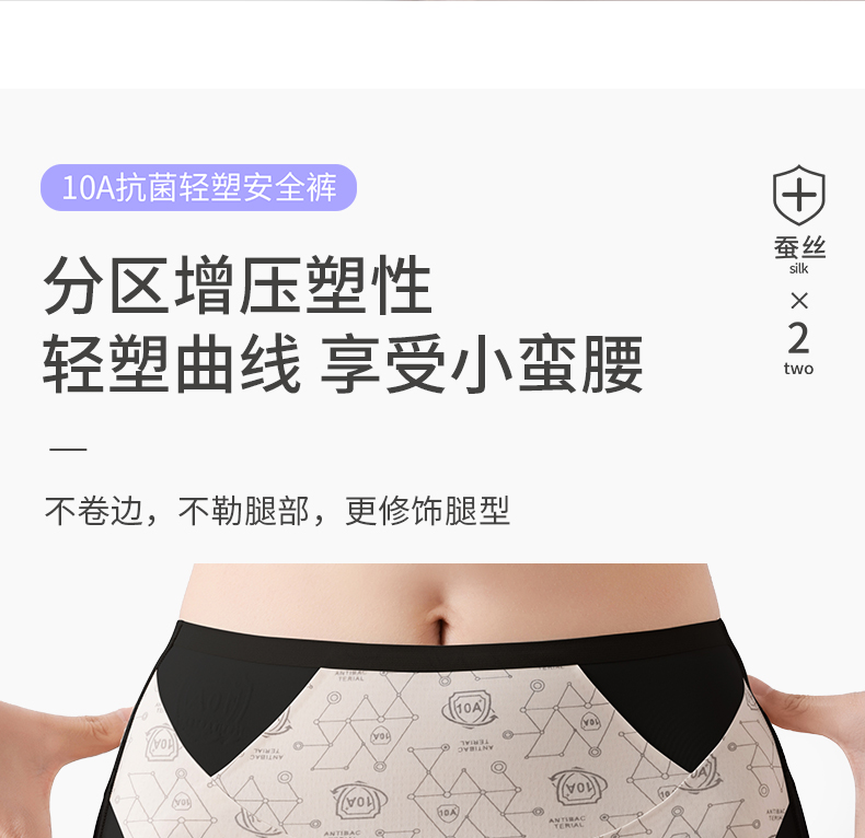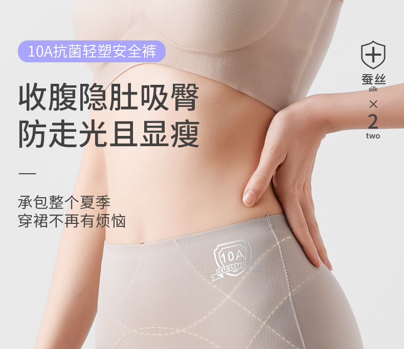 【樱姿娜六维收腹安全裤9503】桑蚕丝底档安全裤,内裤+安全裤二合一,收腹提臀超显瘦
