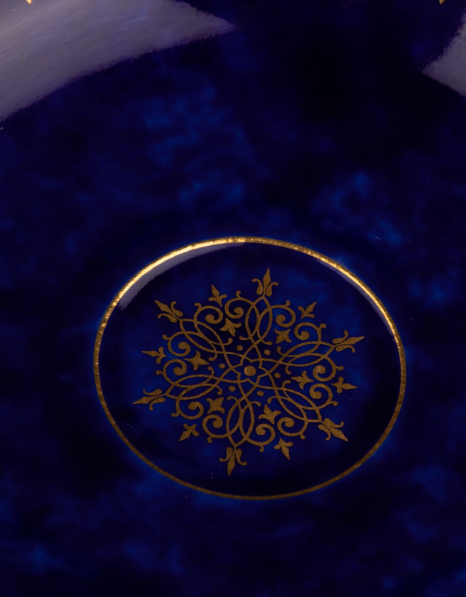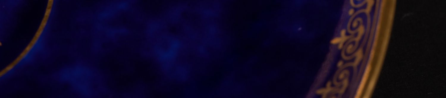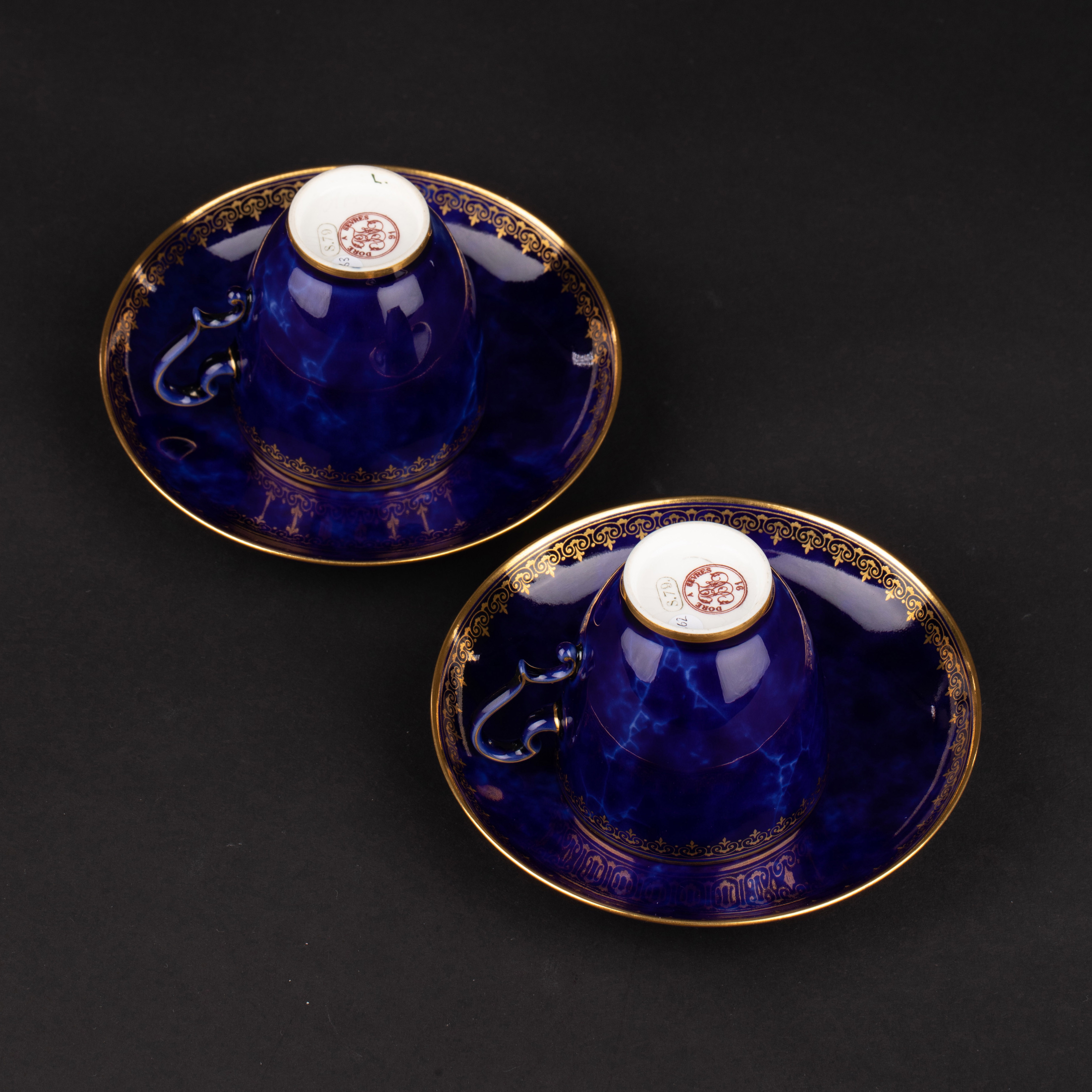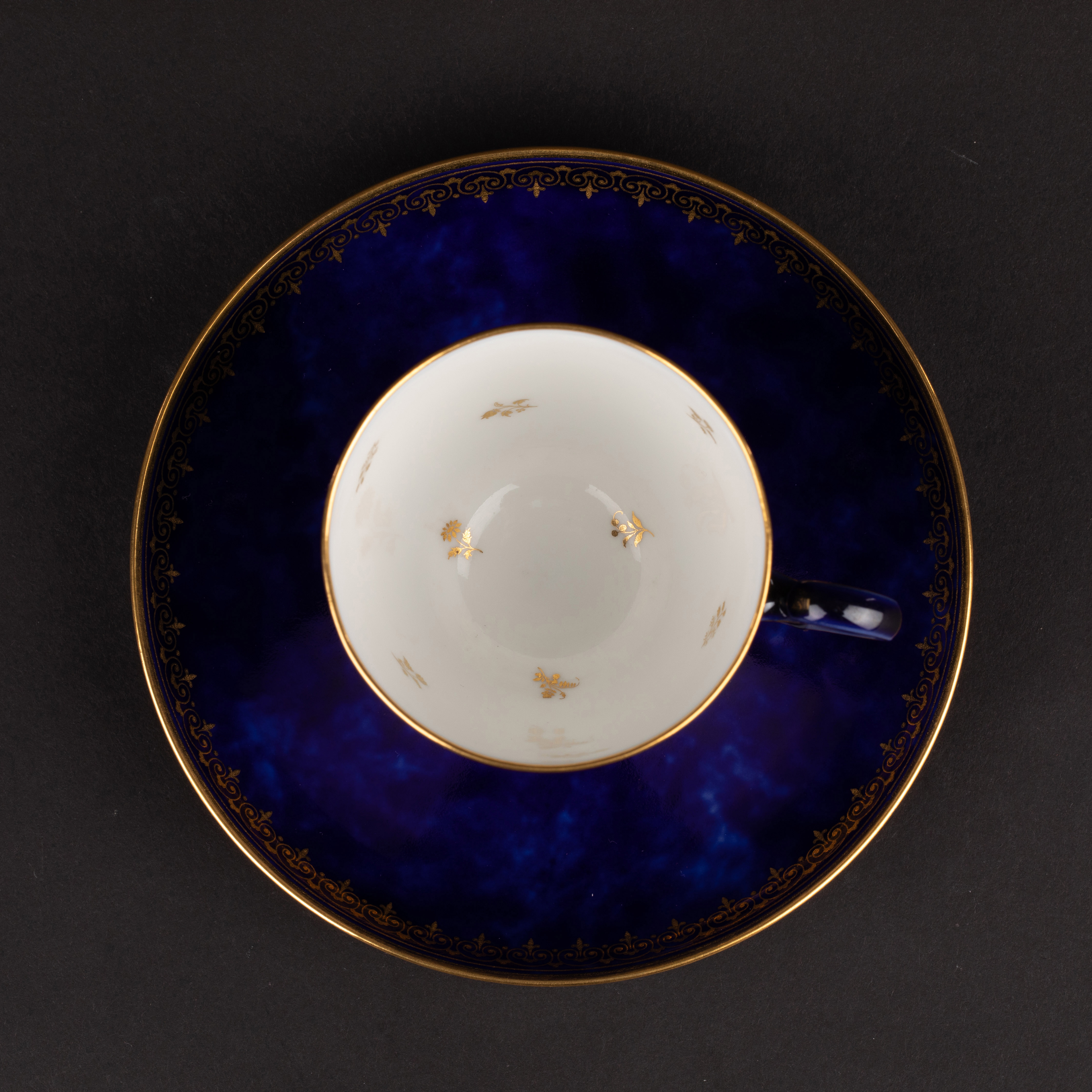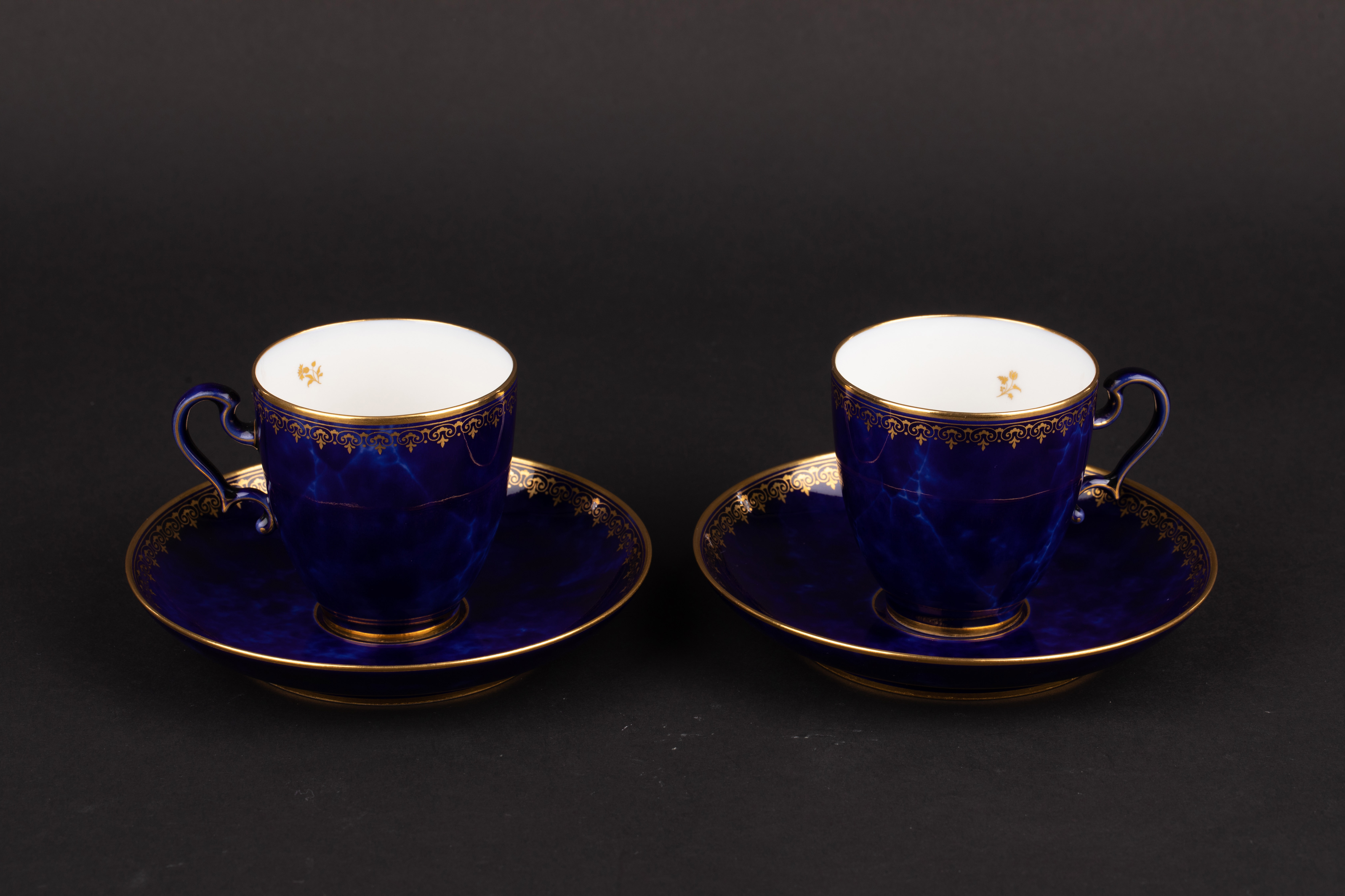 独角鹿西洋古董1891年法国御窑塞弗尔工坊鎏金帝王蓝釉茶具一对