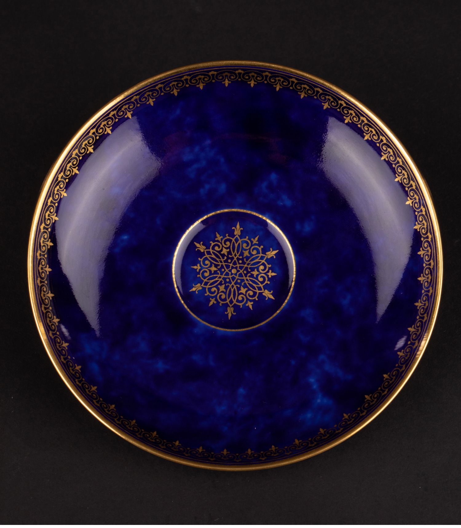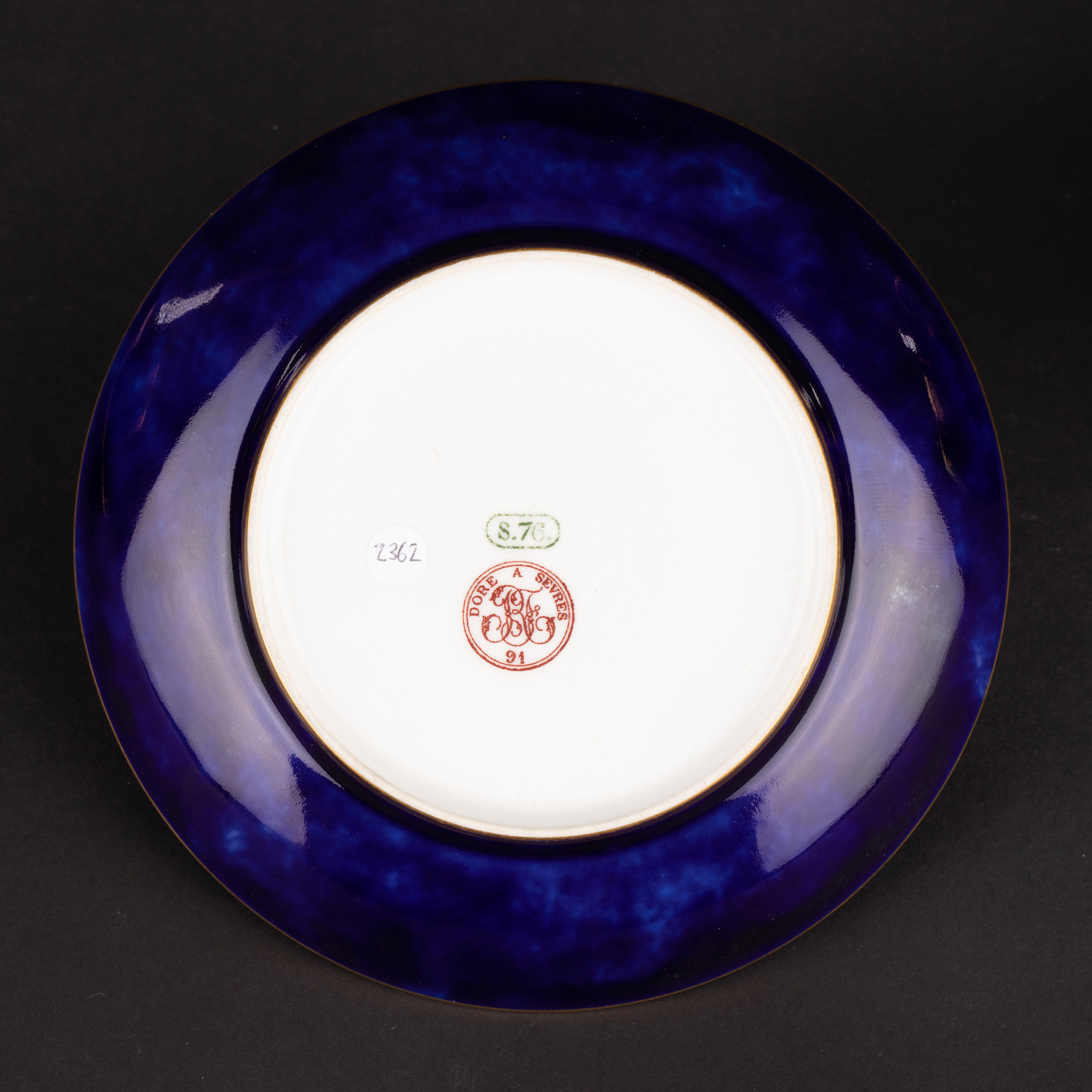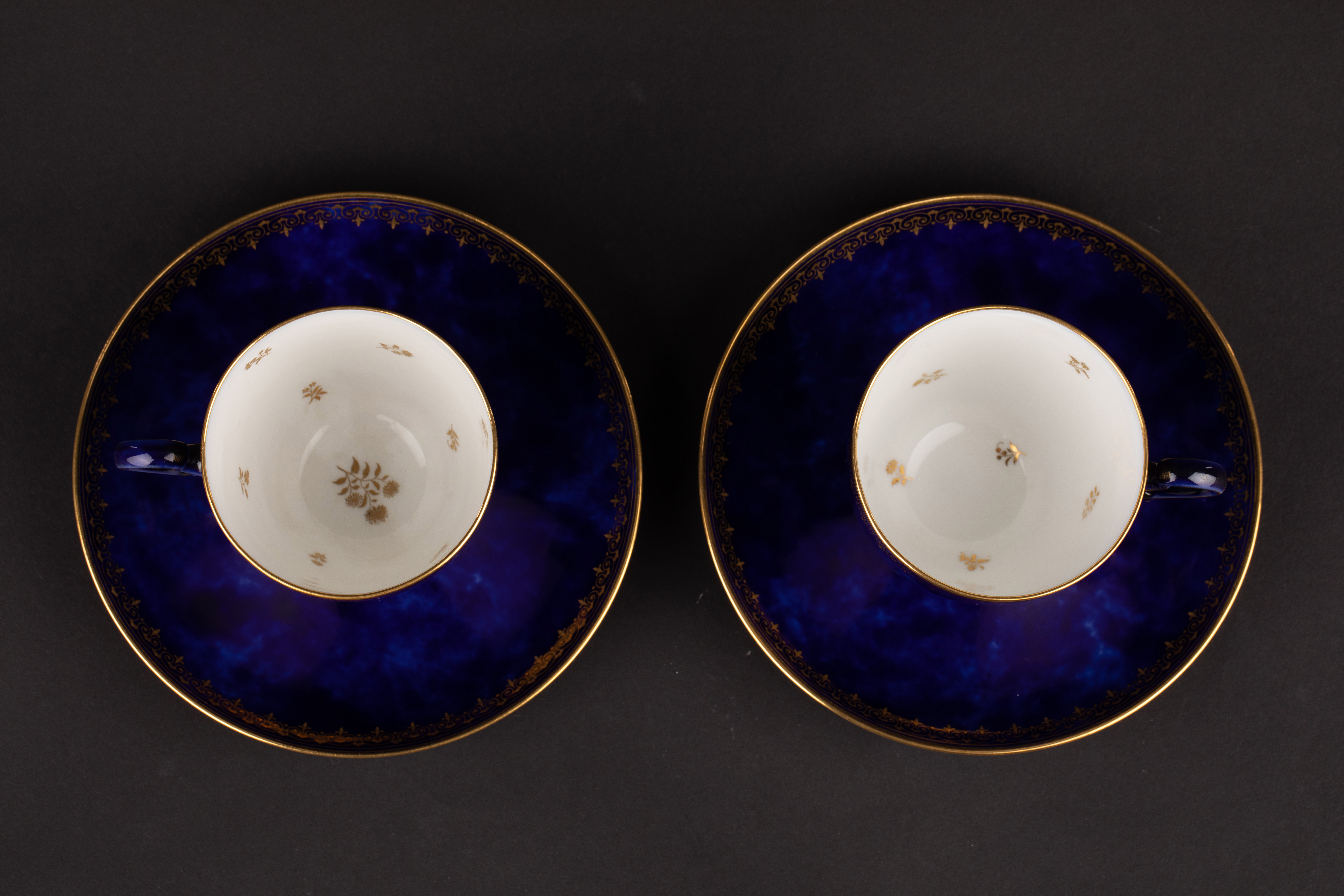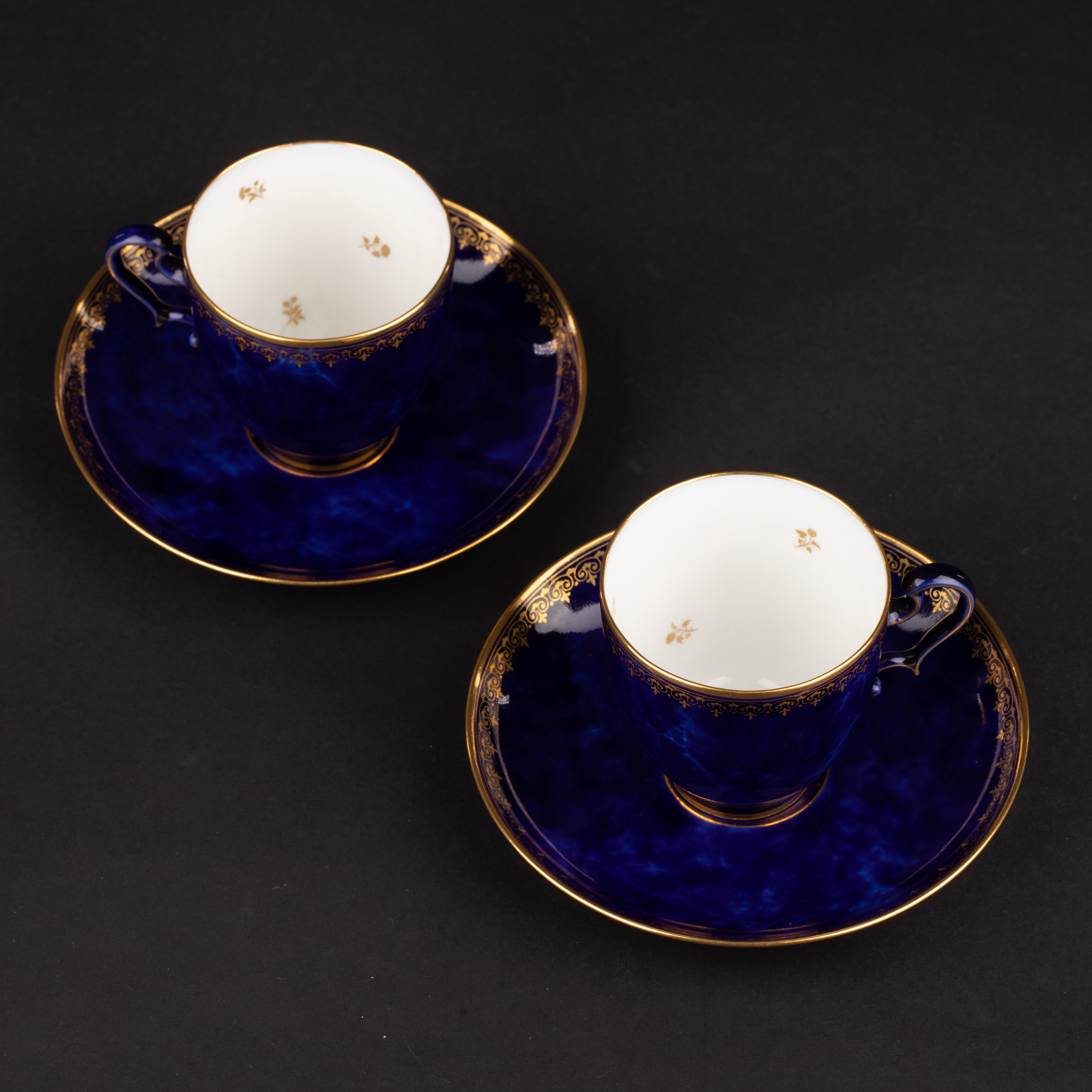 独角鹿西洋古董1891年法国御窑塞弗尔工坊鎏金帝王蓝釉茶具一对