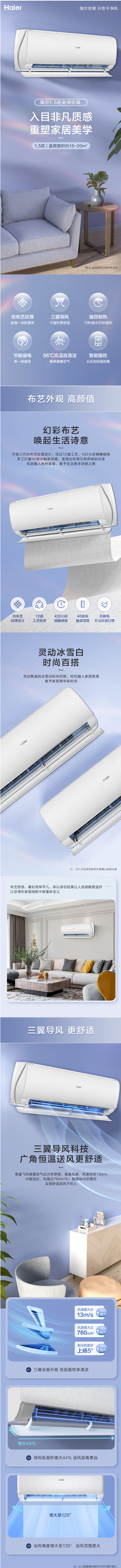 海尔(Haier)(110908)空调壁挂式1.5匹瑞熙新一级能效变频除菌节能家用壁挂机家用空调KFR-35GW/16CAB81U1